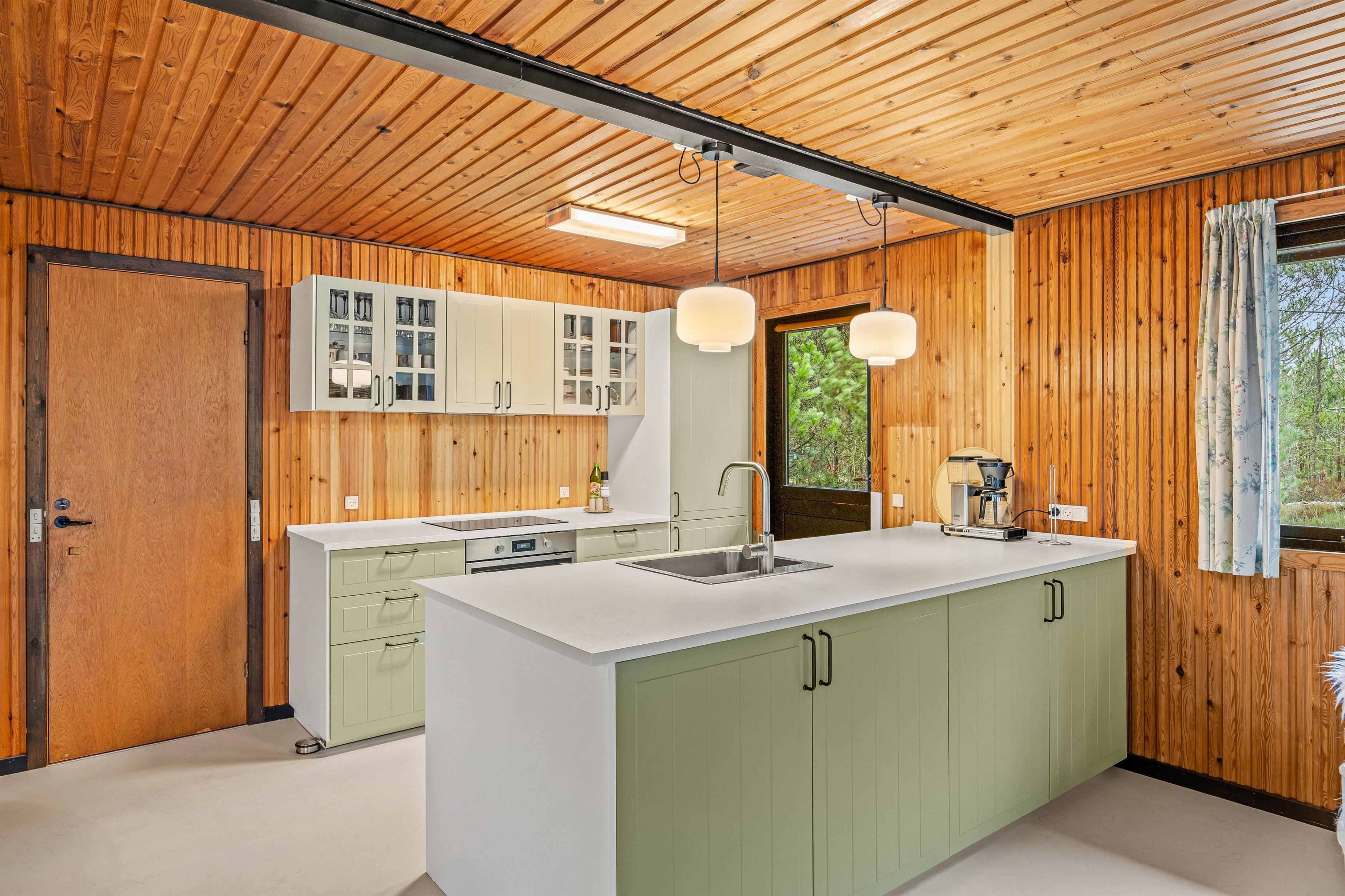 I det indbydende sommerhus i Houstrup smelter charme og modernitet sammen til en skøn ferieoplevelse. Bygget i 1975 og renoveret i 2025 fremstår huset med en perfekt balance mellem klassisk retrostemning og tidens bekvemmeligheder.