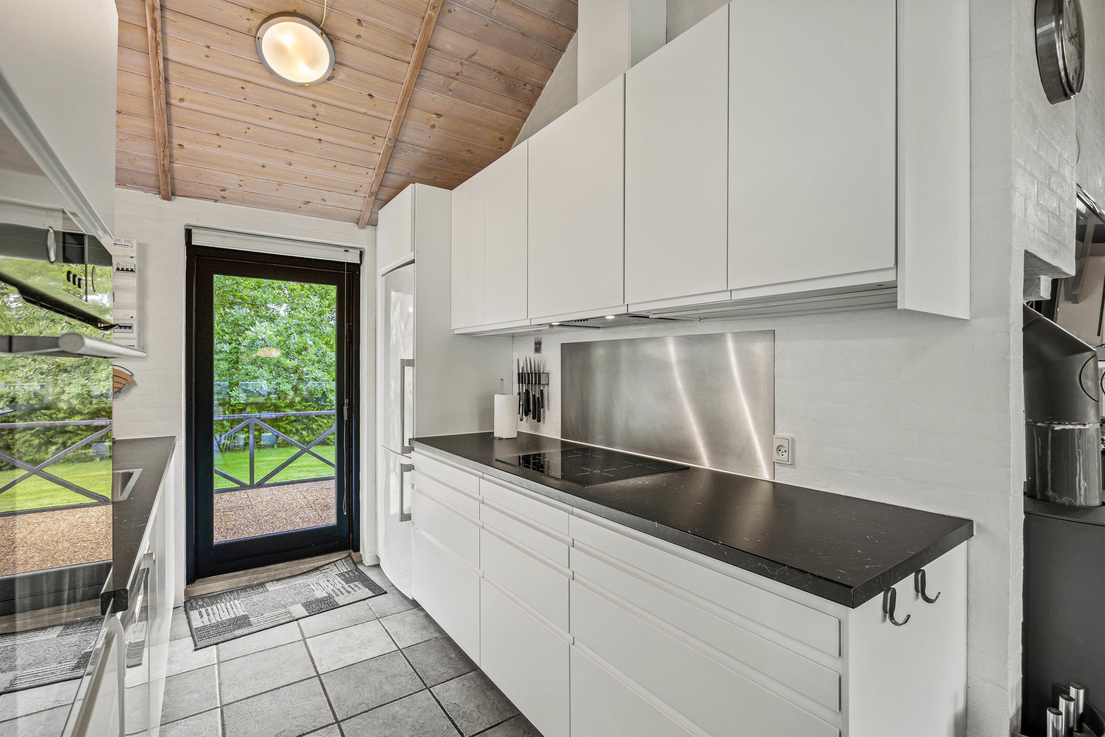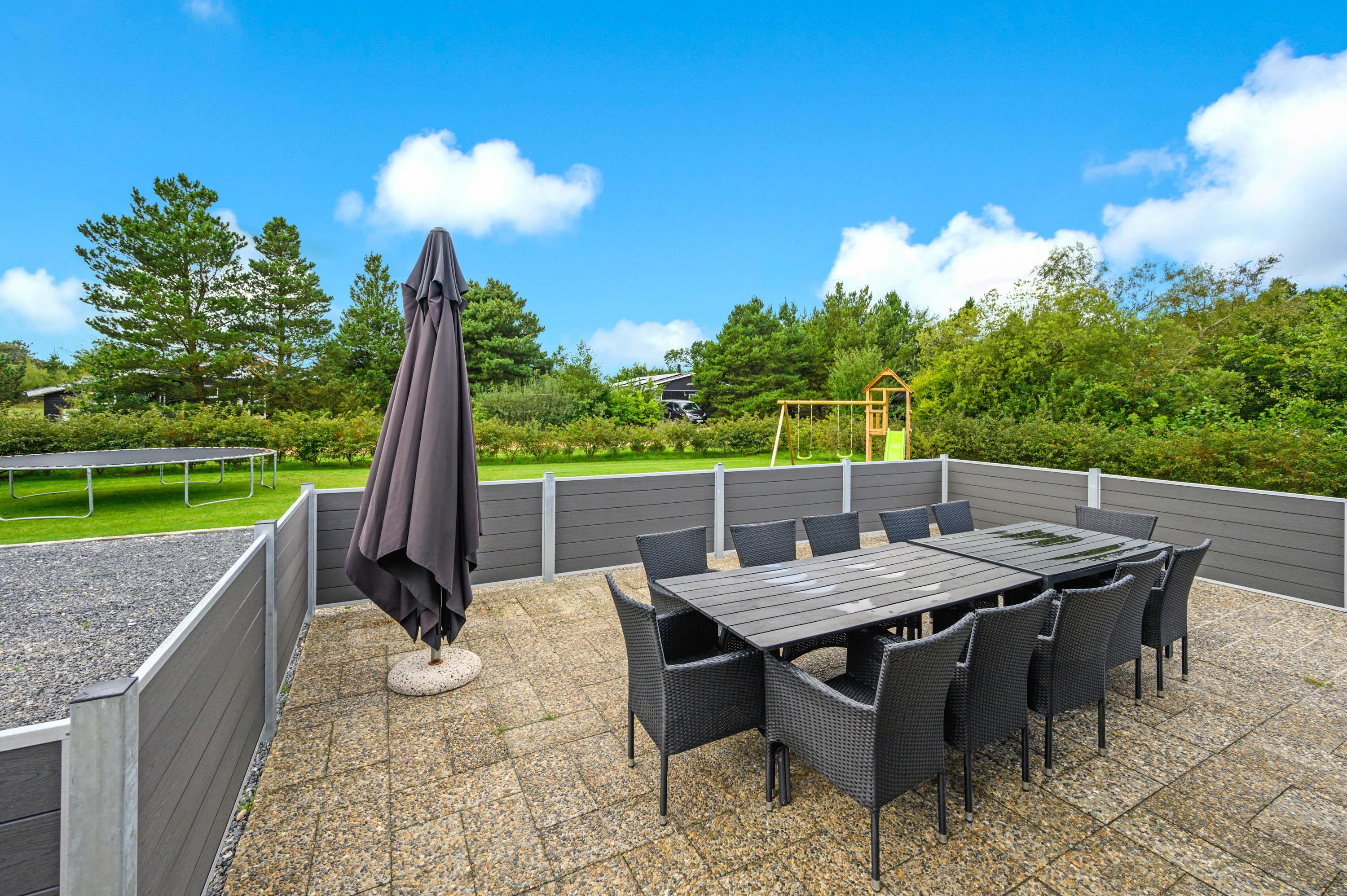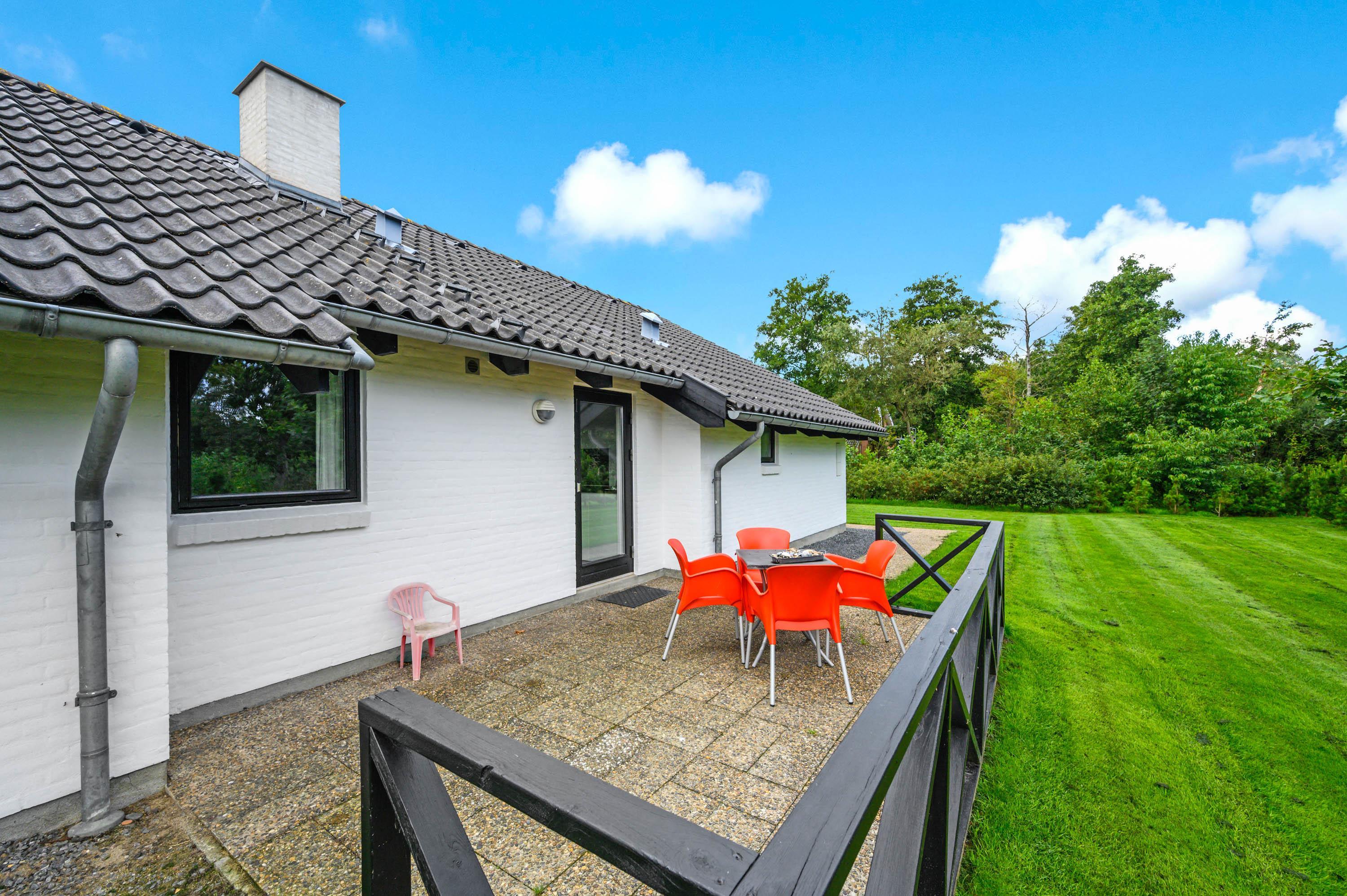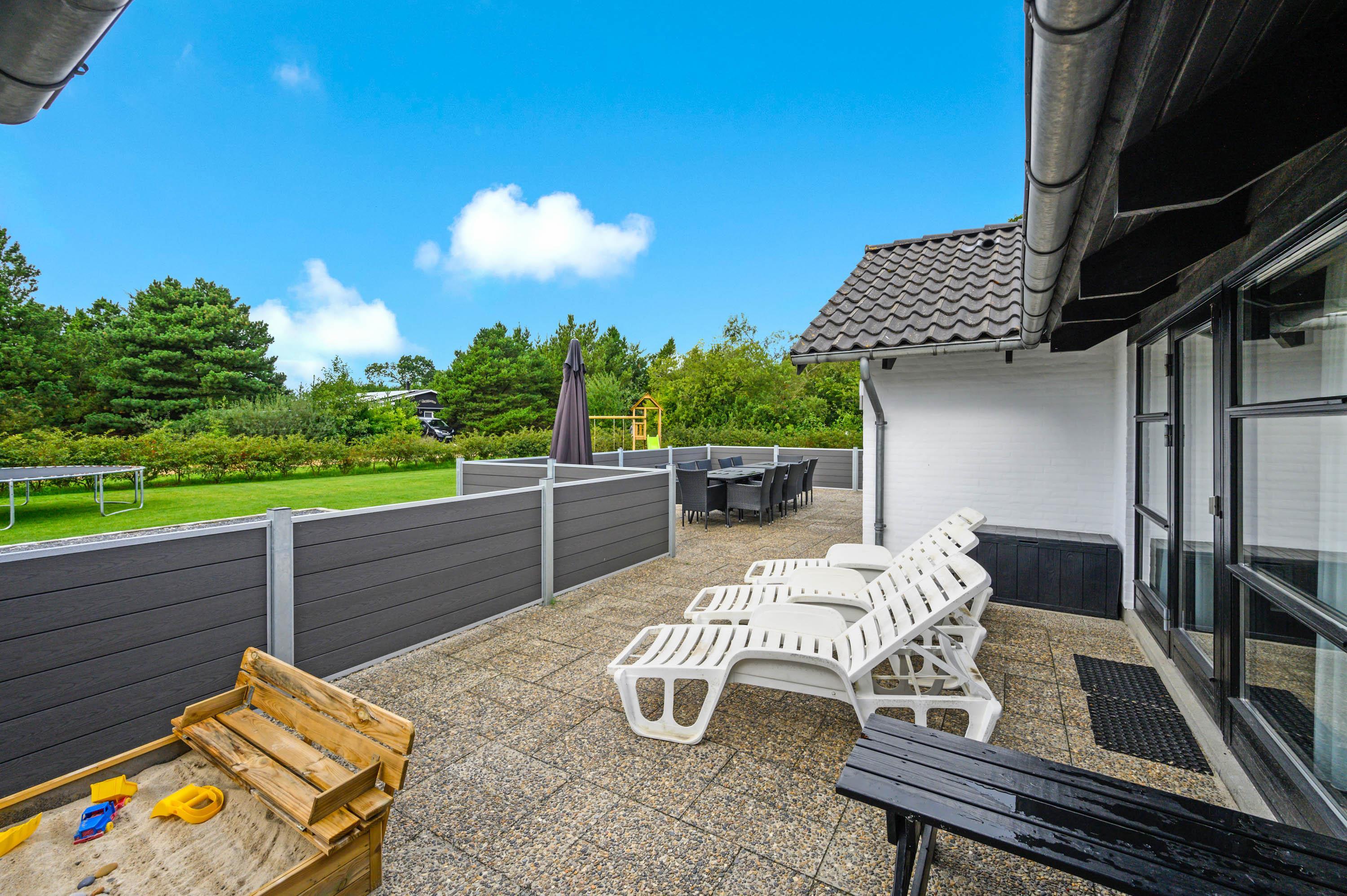 Udenfor finder I en stor indkørsel og en god, åben terrasse. Her står havemøblerne og grillen allerede klar, så I kan holde en hyggelig grillaften i det fine sommervejr. Der er ikke kun plads til afslapning i liggestolene, men også masser af leg på den store, grønne græsplæne, hvor både hundene og børnene kan lege og spille. Her er også både gyngestativ og sandkasse, og legemulighederne er mange.