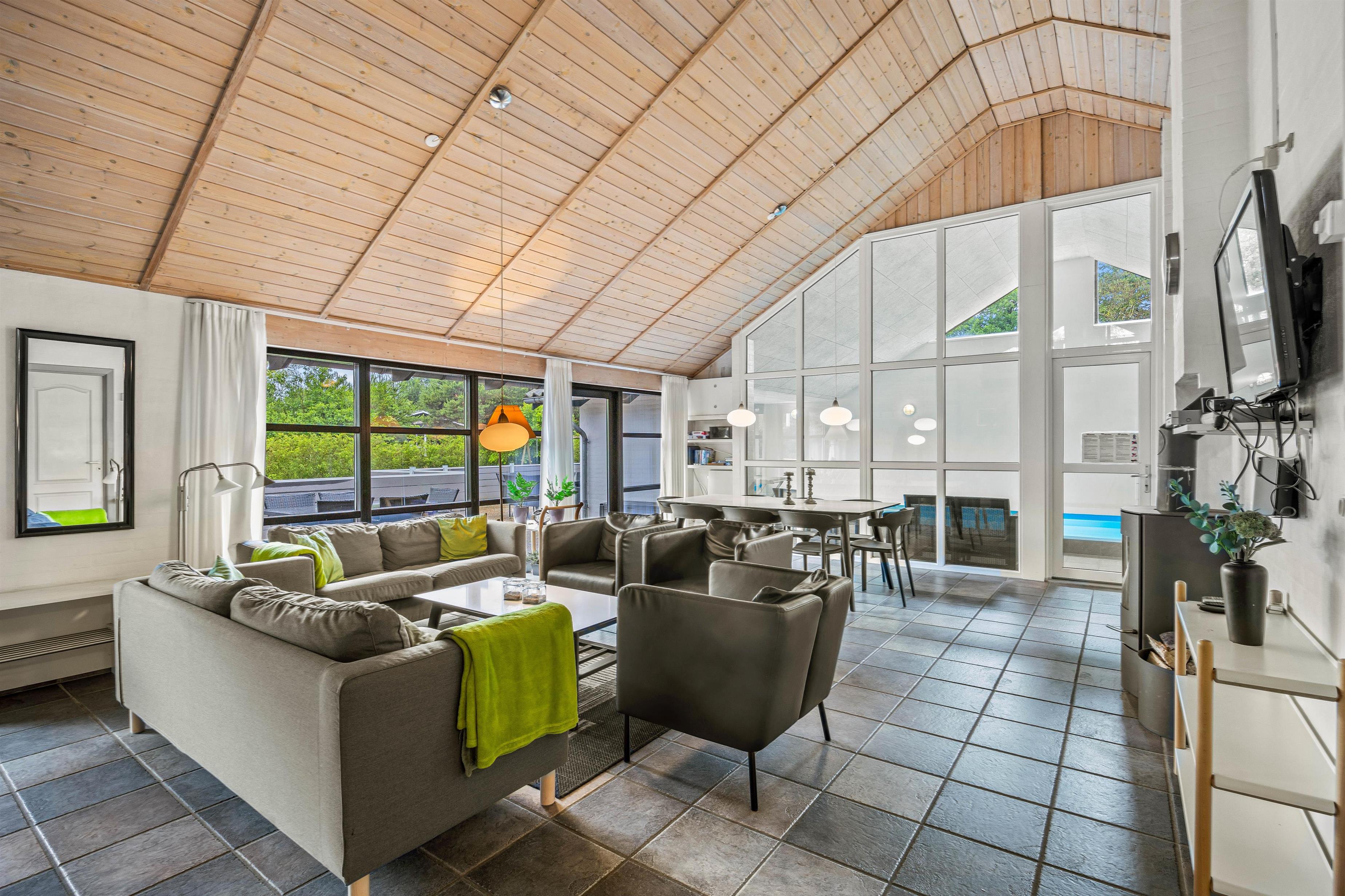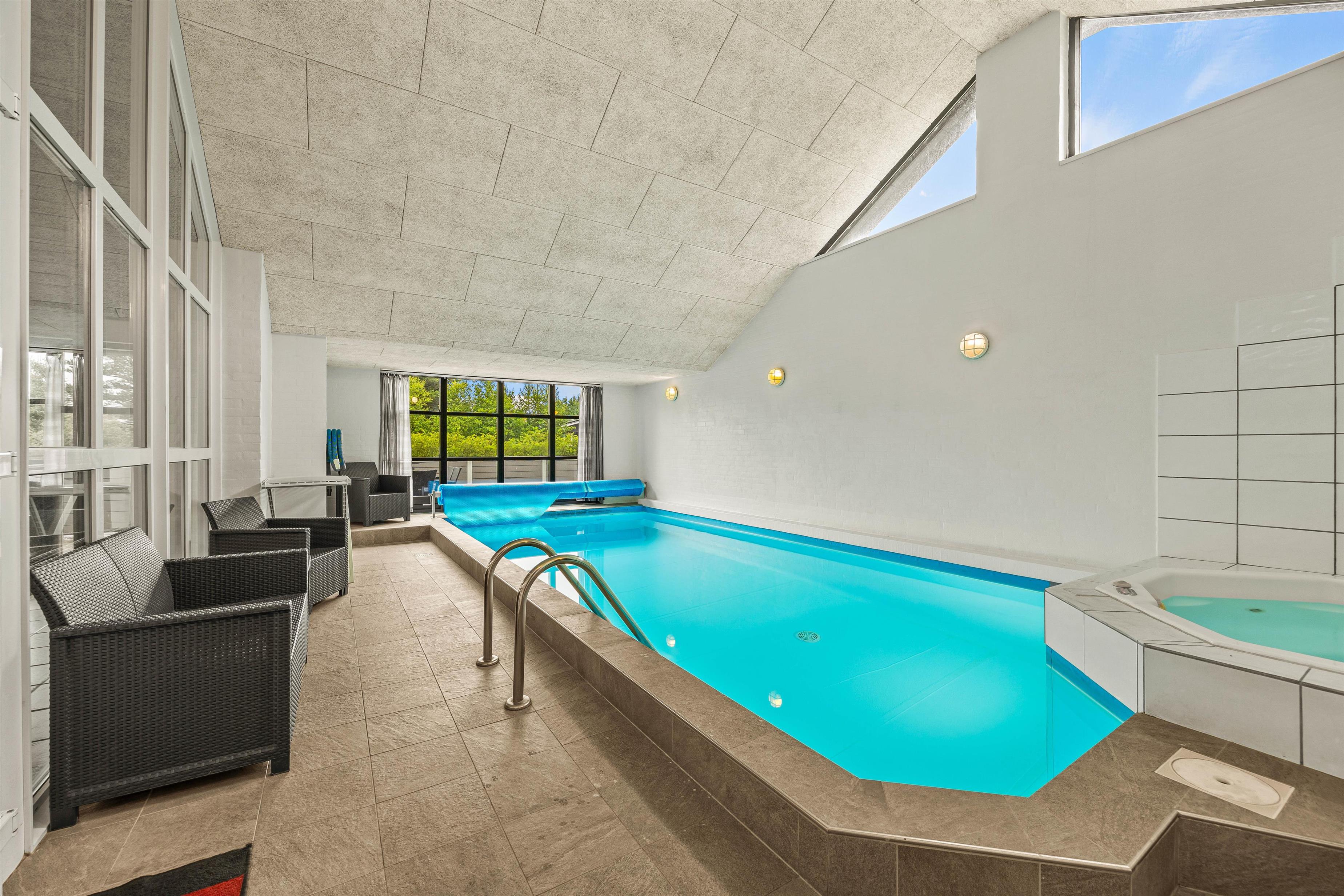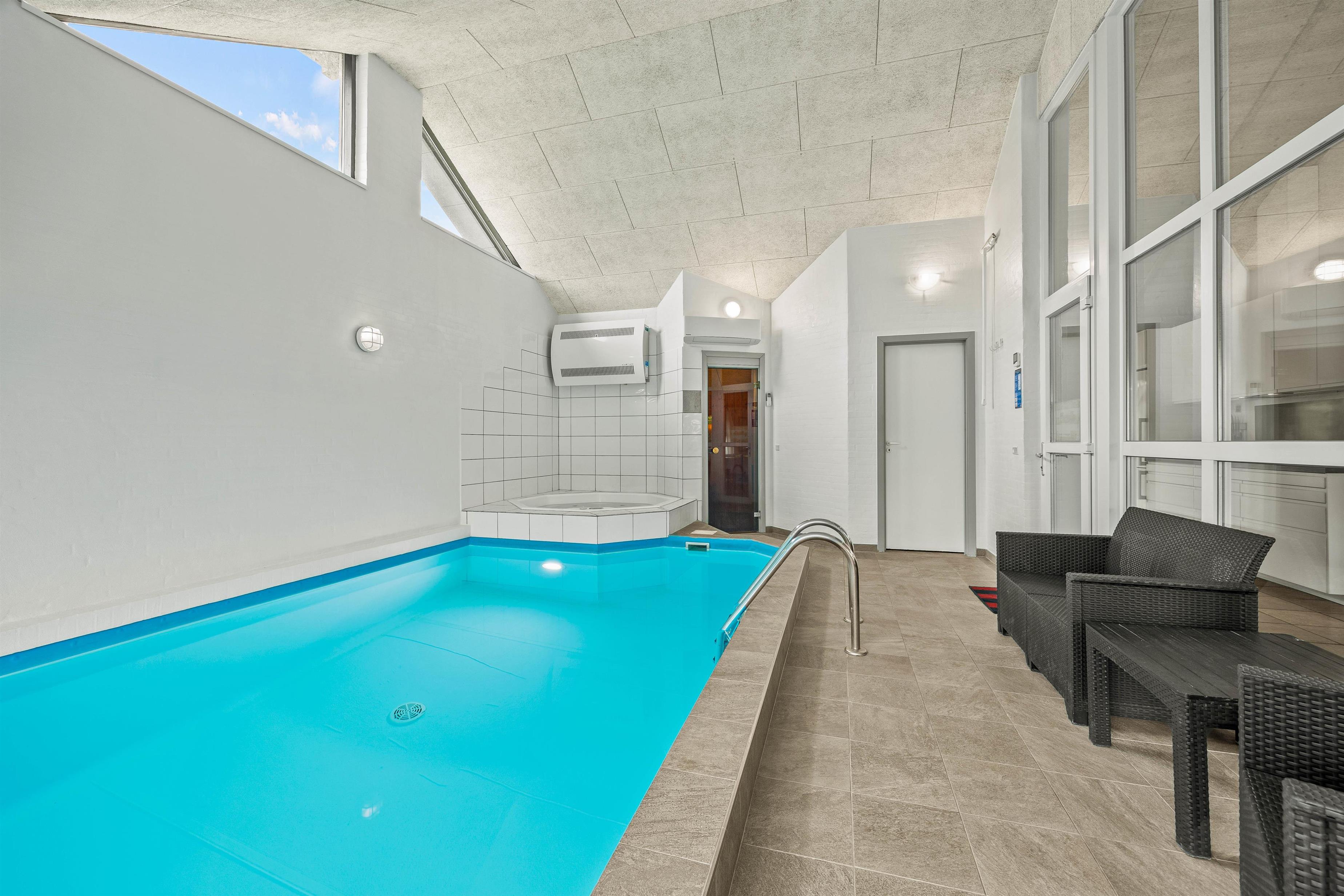 For at gøre ferien ekstra luksuriøs, er der både et stort spabad og en sauna i huset, hvor I rigtig kan få lov til at slappe af. Til gengæld kan børnene blive godt underholdt i den 22 m2 store swimmingpool, som især er fantastisk på de kolde årstider, hvor vejret ikke er optimalt til en dukkert på stranden. Denne opvarmes med en energibesparende luft-vand varmepumpe.