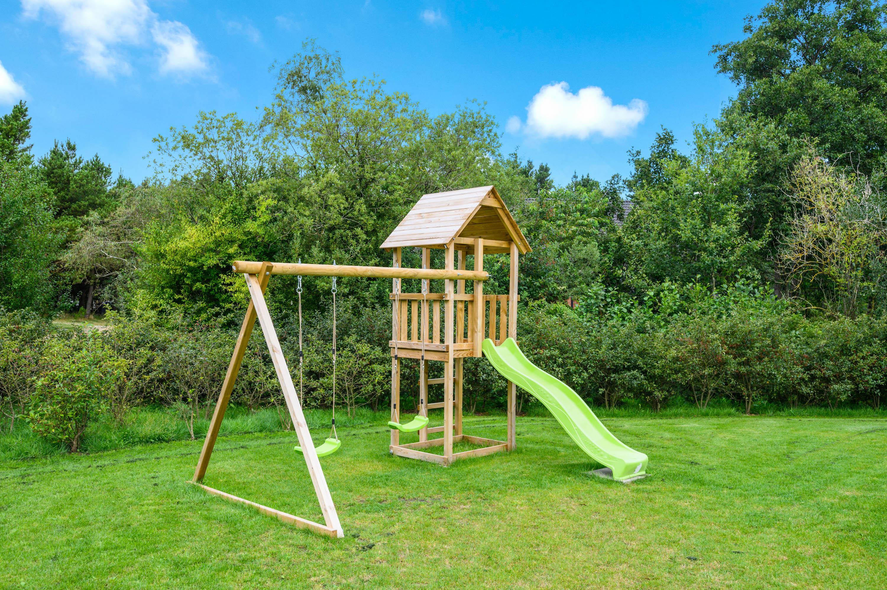 Lækker terrasse med gyngestativ og sandkasse
