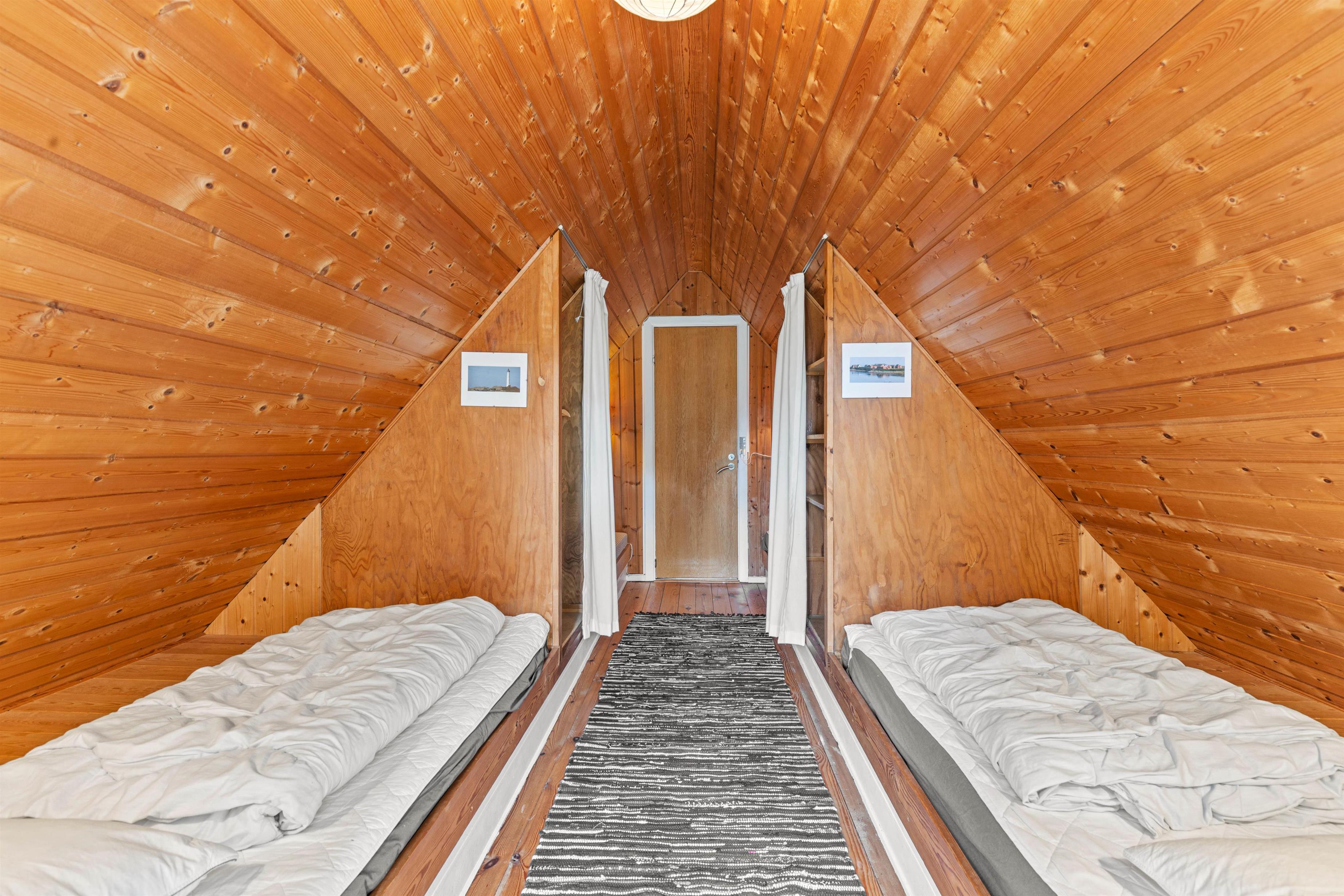 Huset rummer plads til op til 6 personer og har 3 soveværelser, 2 med dobbeltsenge og 1 enkelt med enkelsenge og udgang til en lille balkon. Det lyse badeværelse er både udstyret med WC, bruseniche og små skabe, så I kan opbevare jeres toiletsager.