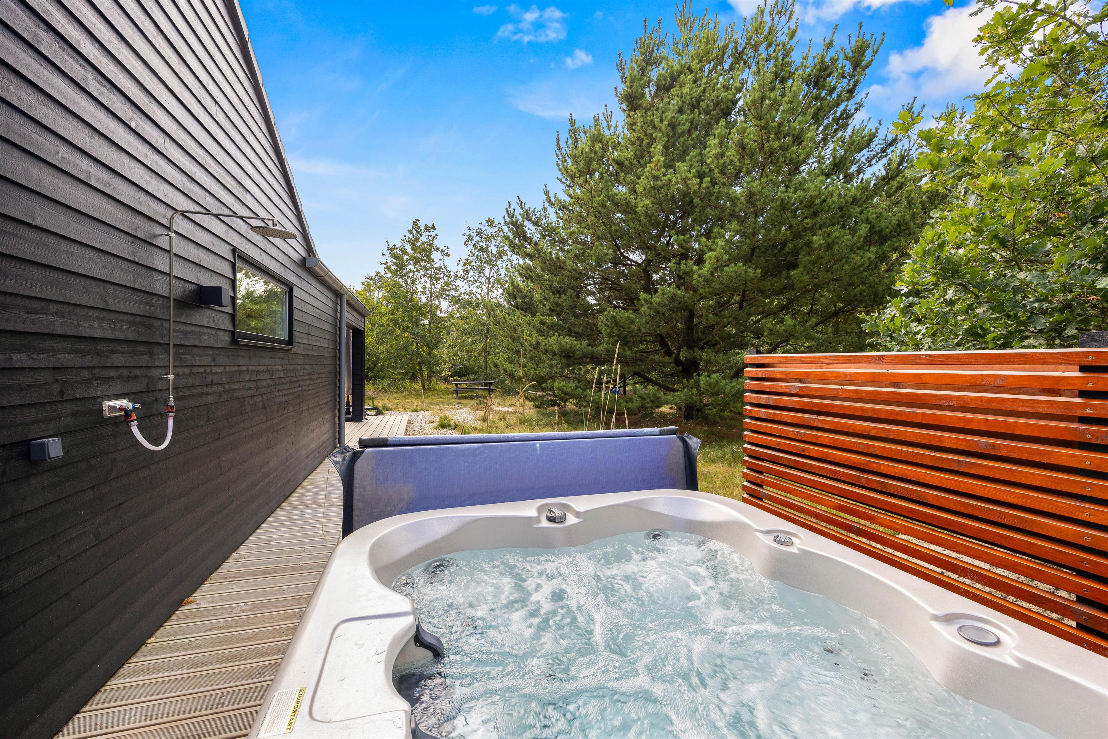 Til de små er der en sandkasse og gynge, som sikrer timevis af leg og sjov i haven. Den afskærmede udespa giver jer mulighed for at slappe af i varmt vand under en smuk stjernehimmel, mens den tilknyttede udebruser, tilgængelig fra april til november, giver en forfriskende mulighed for en skyller efter en dag på stranden eller før en afslappende stund i spabadet.