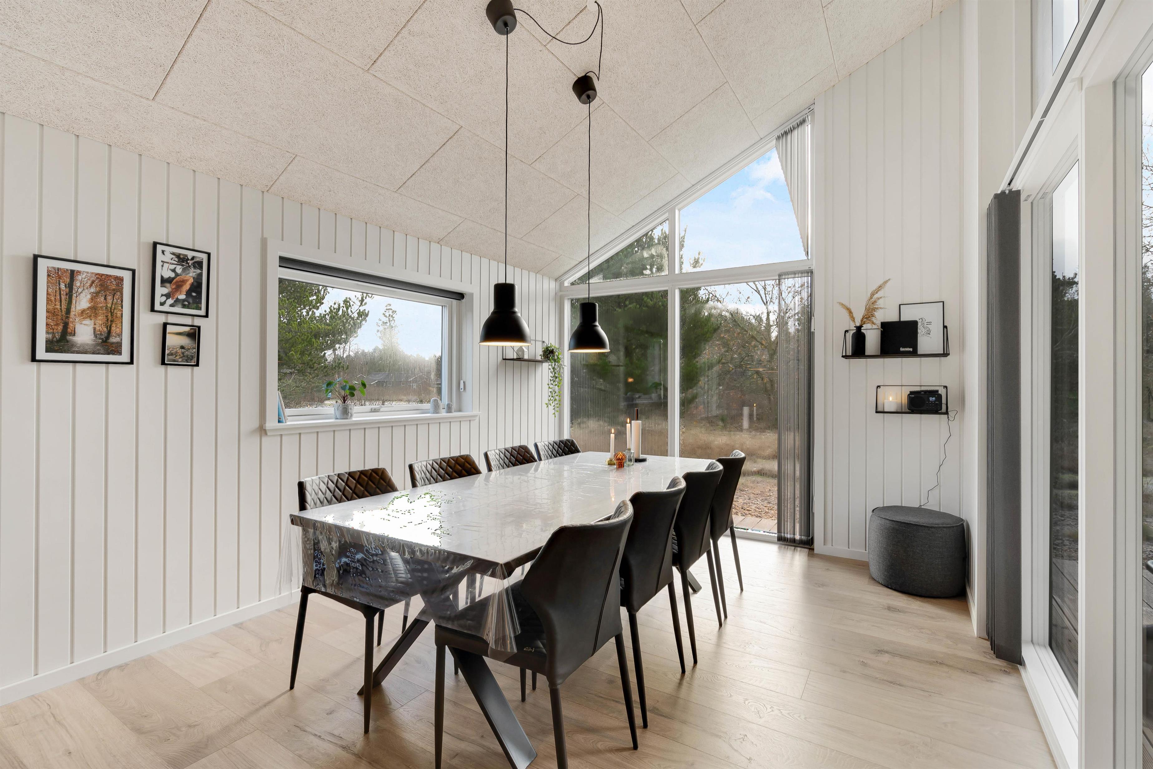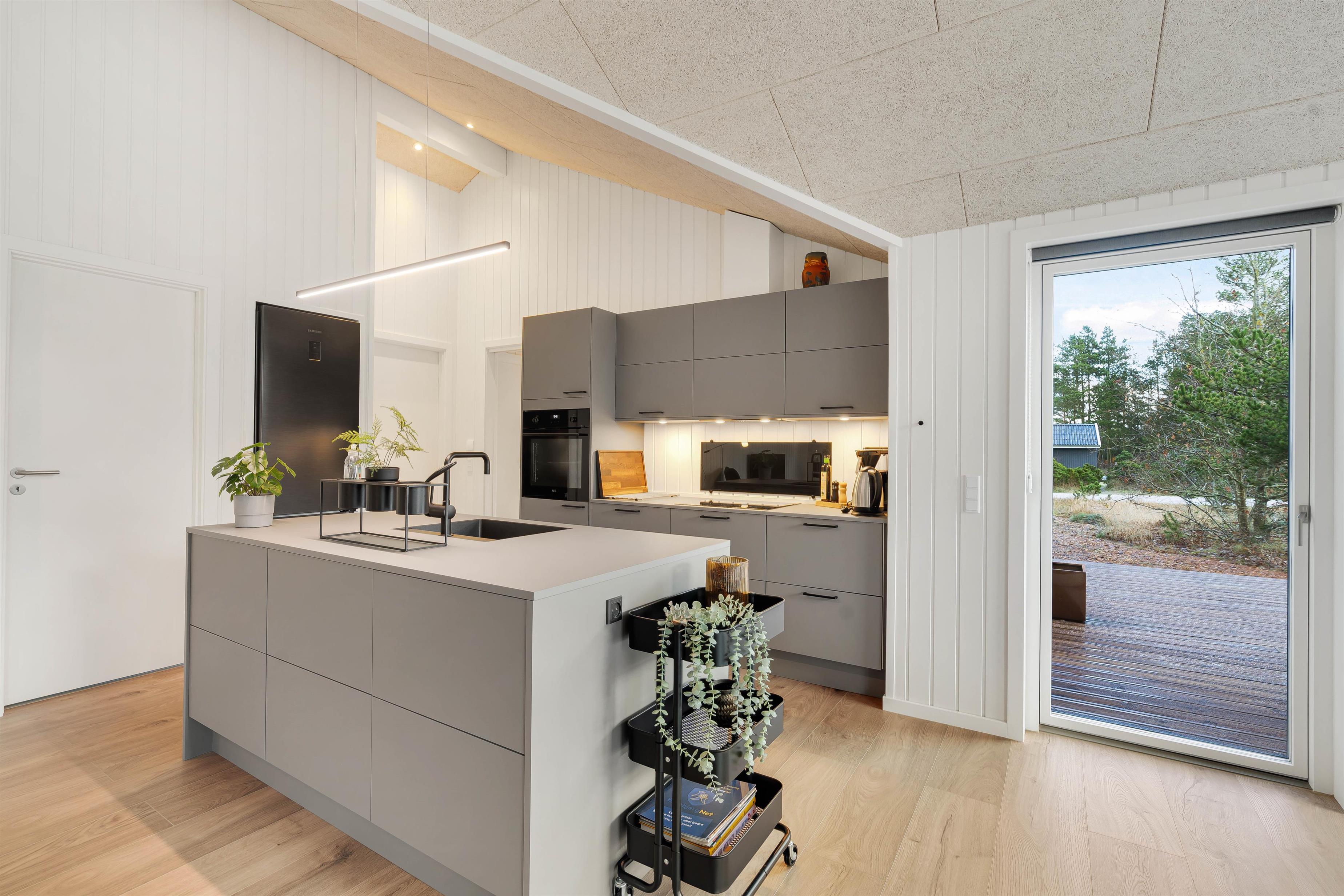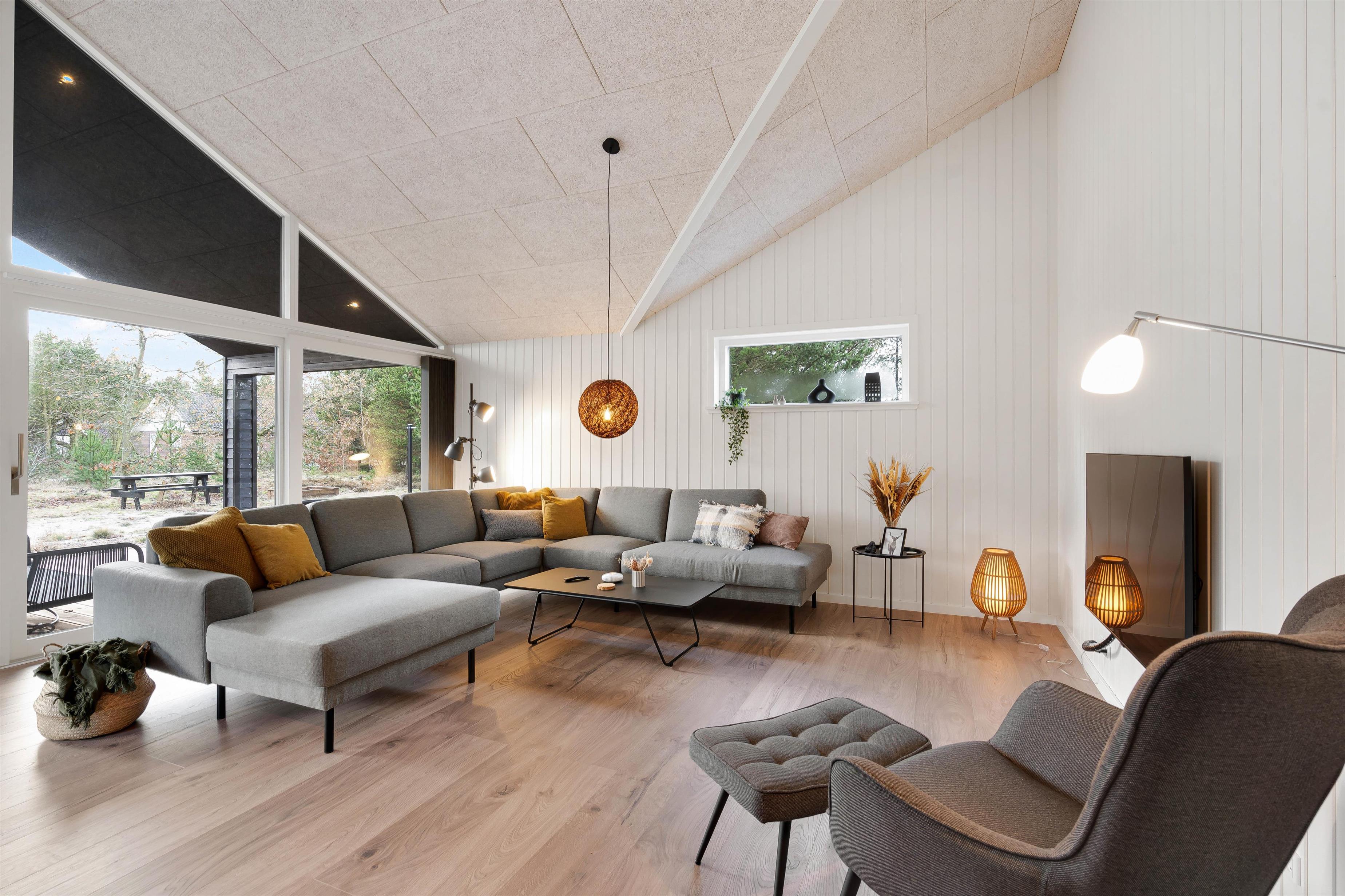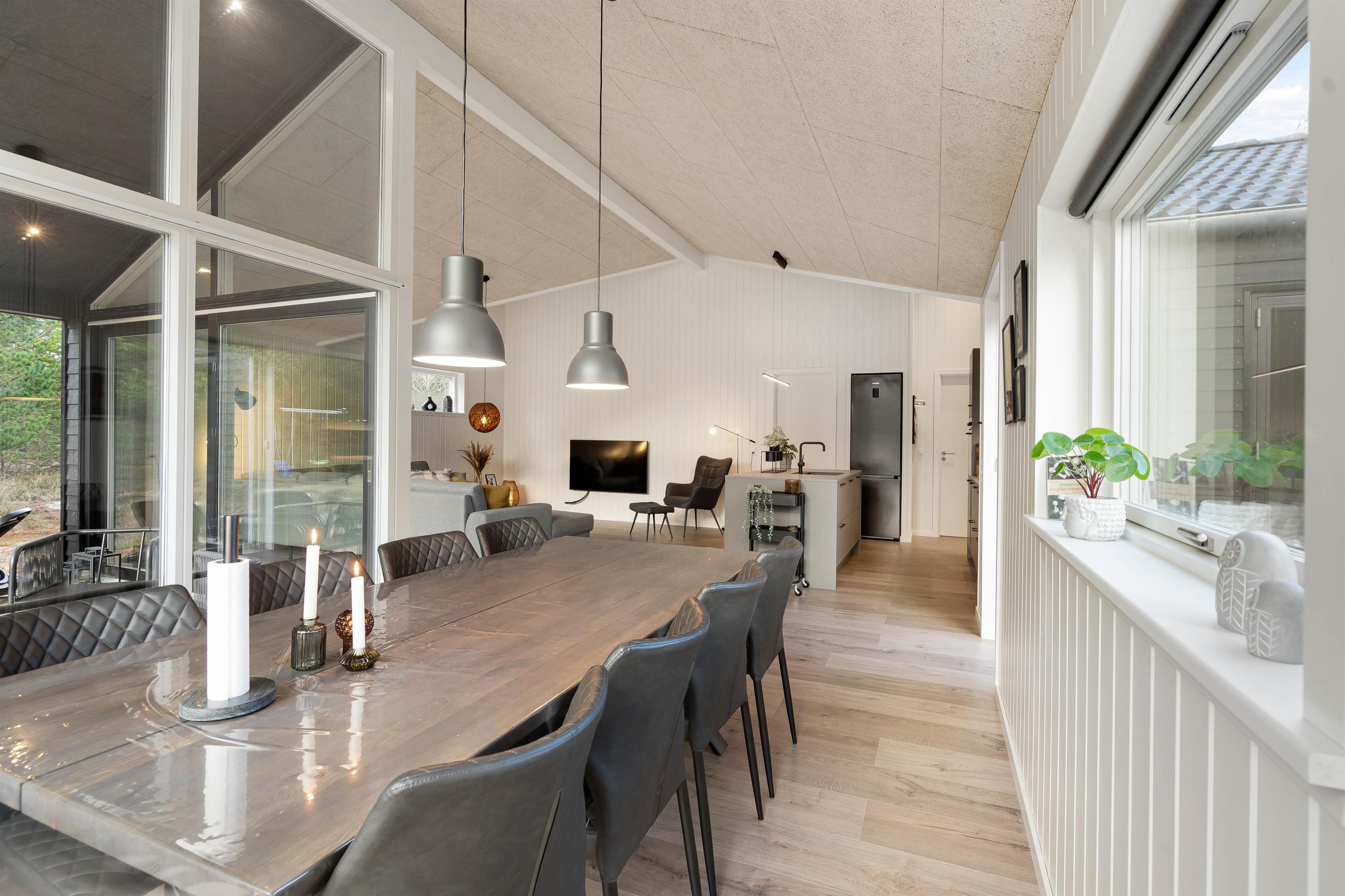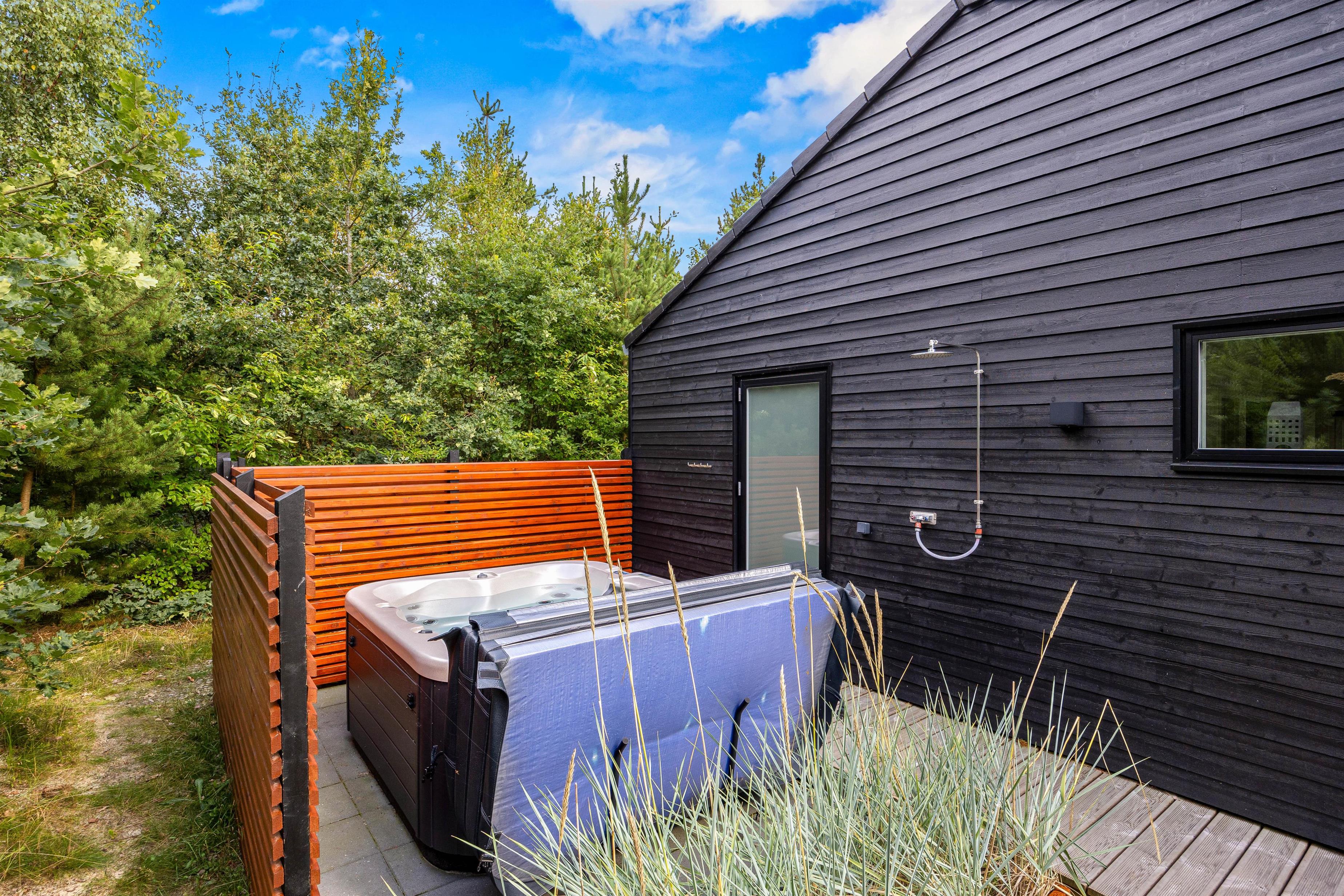 Fra stuen kan I let tilgå den overdækkede terrasse, der fungerer som en udvidelse af sommerhusets komfortable opholdsrum. Udeområdet er skabt til at give jer den ultimative ferieoplevelse i det fri. Den rummelige terrasse tilbyder både en overdækket og en åben del, hvilket gør det muligt at nyde både solrige bruncher og hyggelige grillaftener uanset vejret.