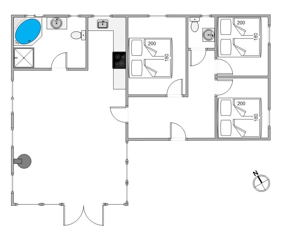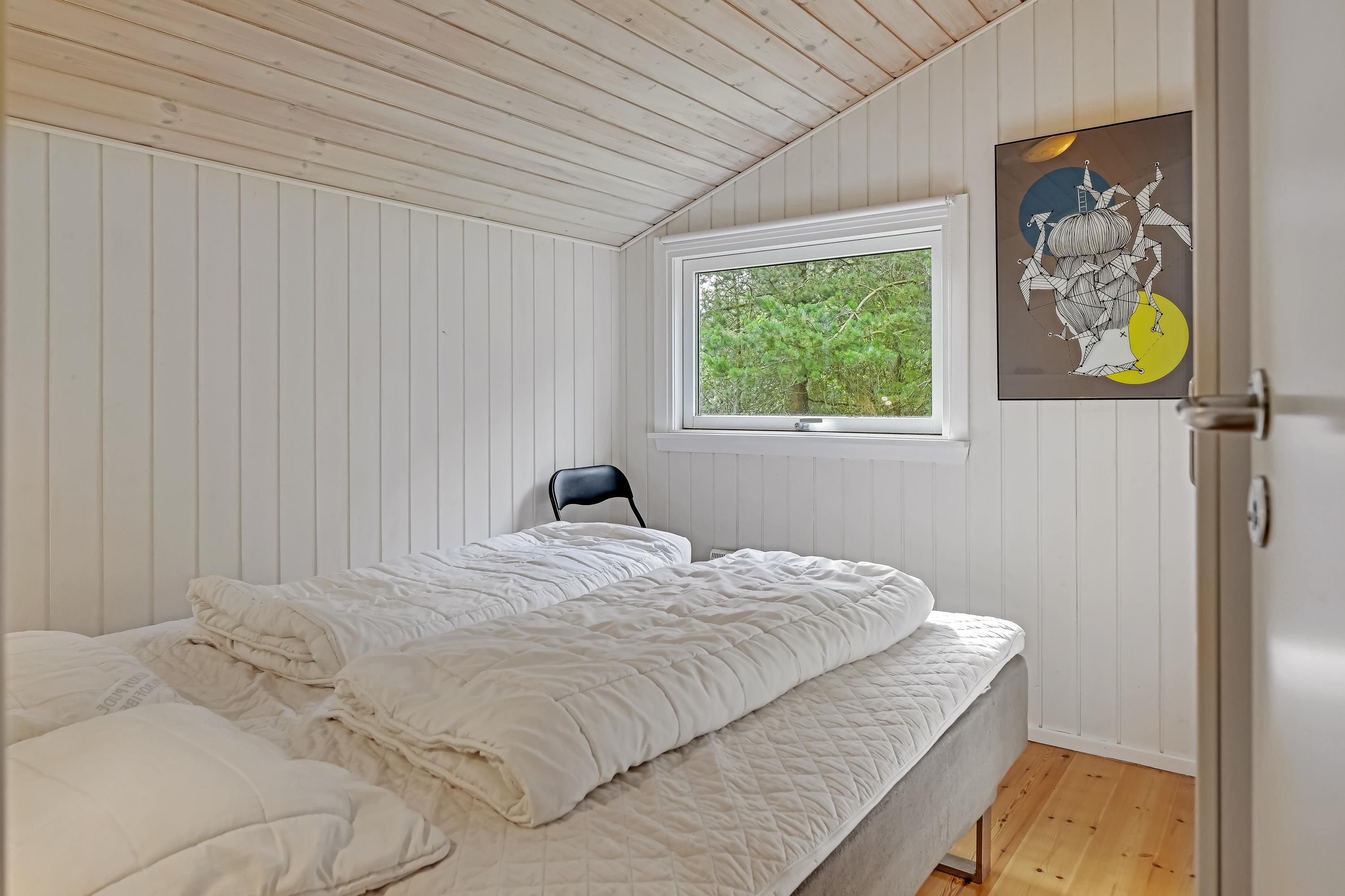 Alle 3 soverum i sommerhuset er indrettet med dobbeltsenge, og i det store badeværelse med gulvvarme står spaen klar til jer. Der er altså rigelig mulighed for afslapning og hygge, det er bare med at komme af sted.