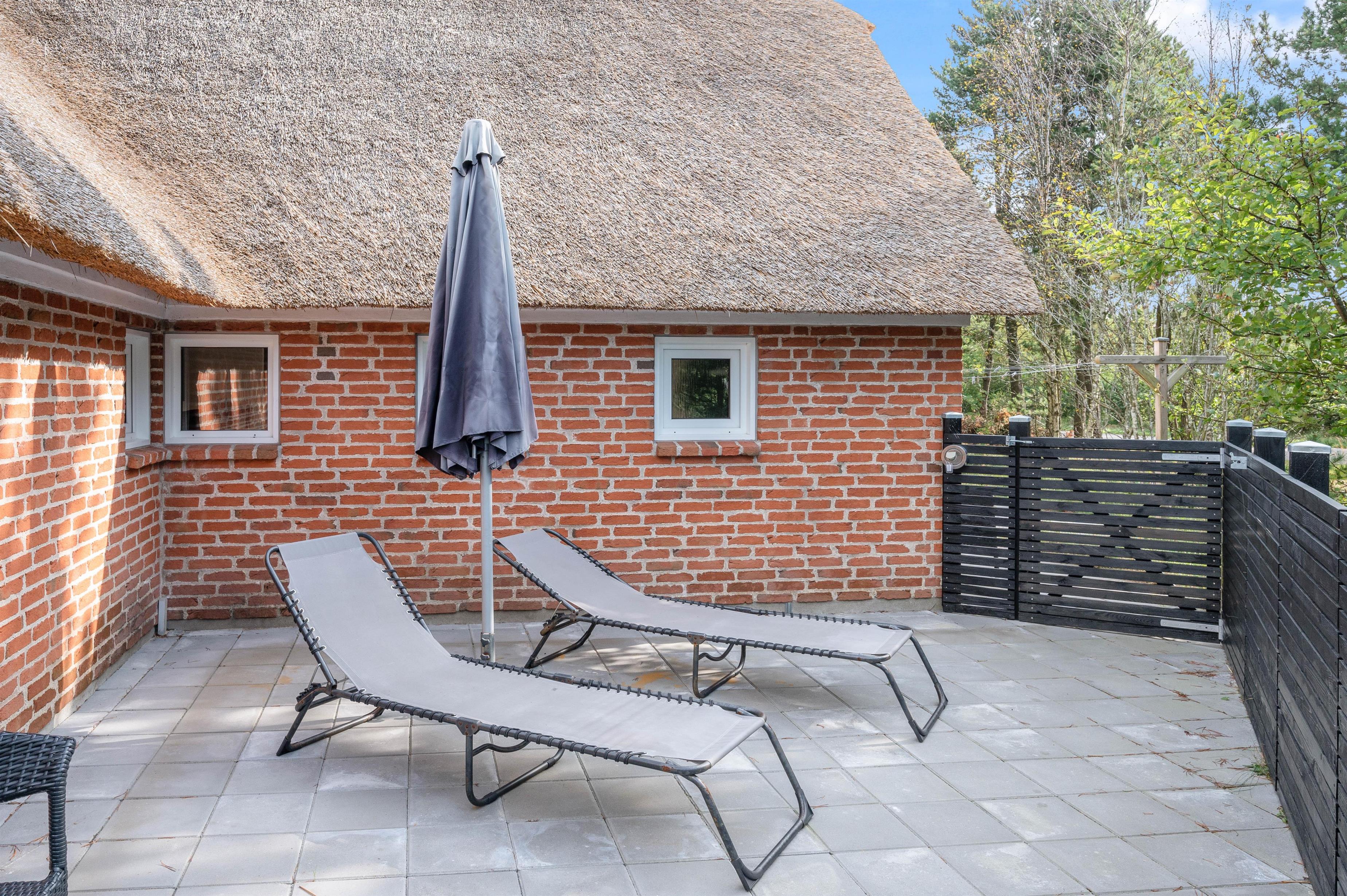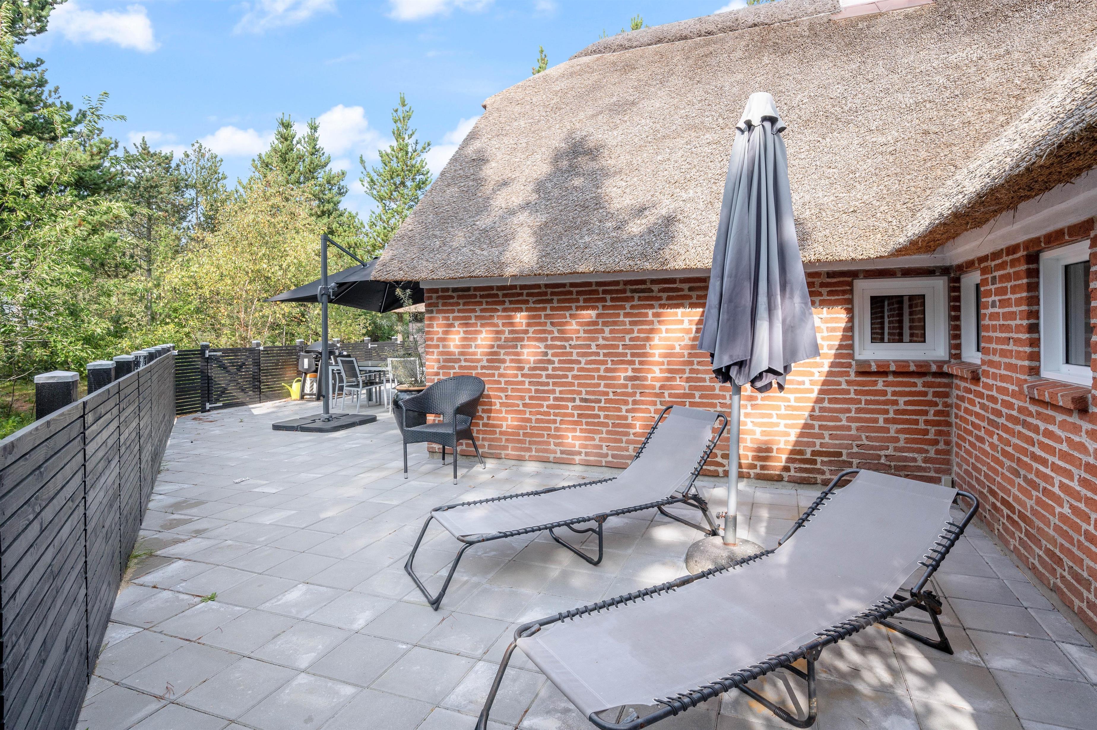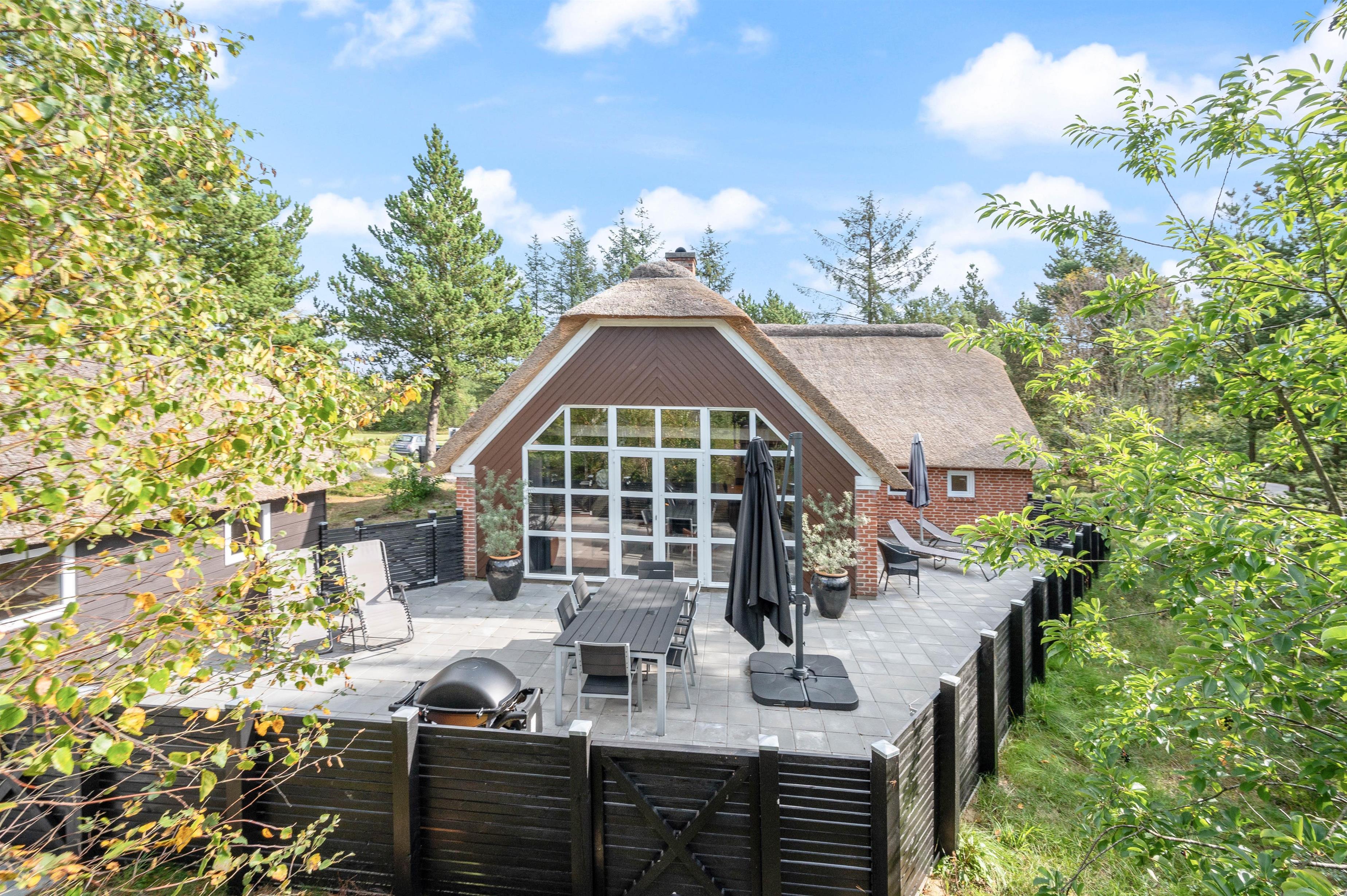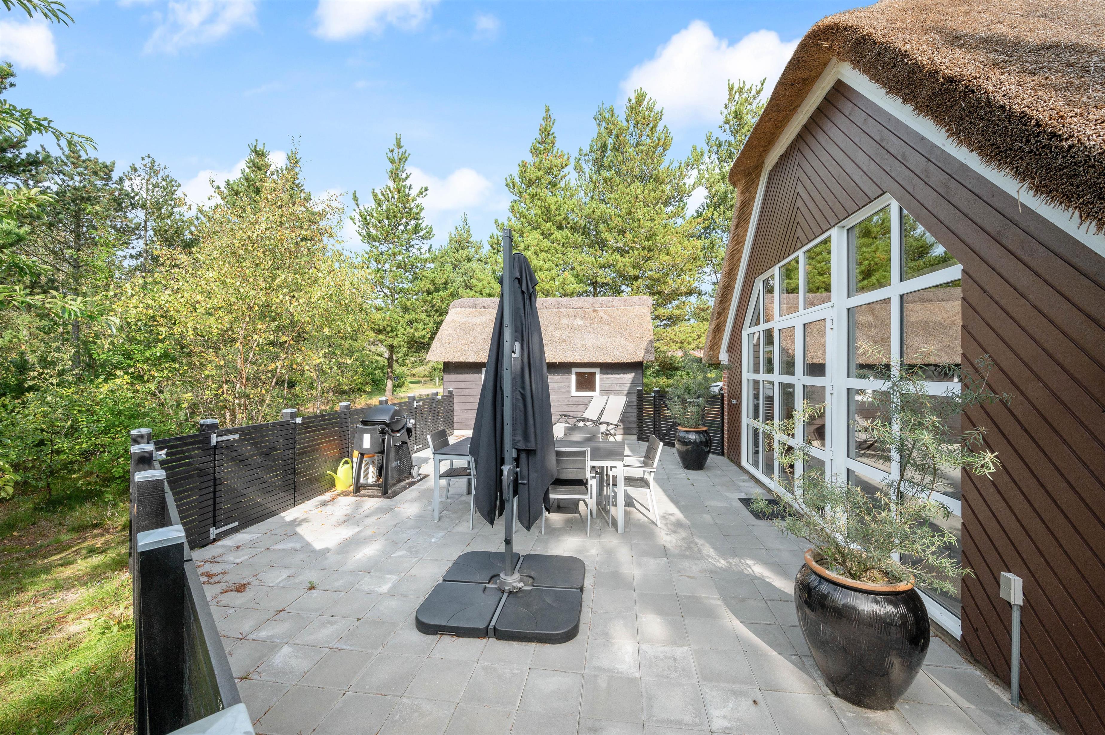 Fra husets stuen har I adgang til husets terrasse, hvor I kan sole jer og hygges med lange grillaftener. For privatliv og ro på dejlige naturgrund sørger randbeplantningen.