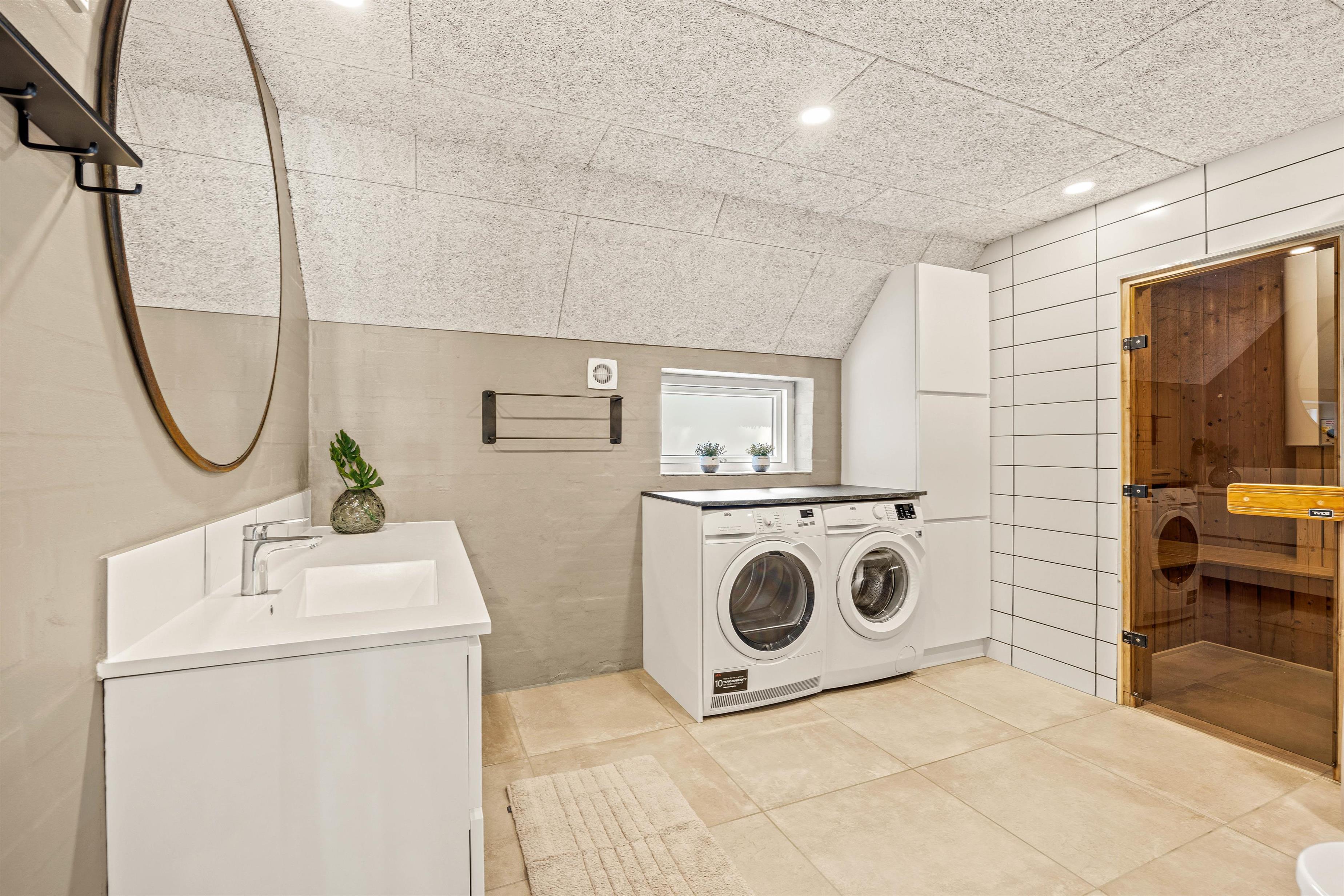 Her er god plads til selvforkælelse. Når vejret holder jer indendørs eller efter en lang gåtur på stranden, så kan I tænde op i sauna og rigtig slappe af og nyde varmen. For uforstyrret ro sørger gæste-wcét, som også afhjælper badeværelseskøen om morgenen.