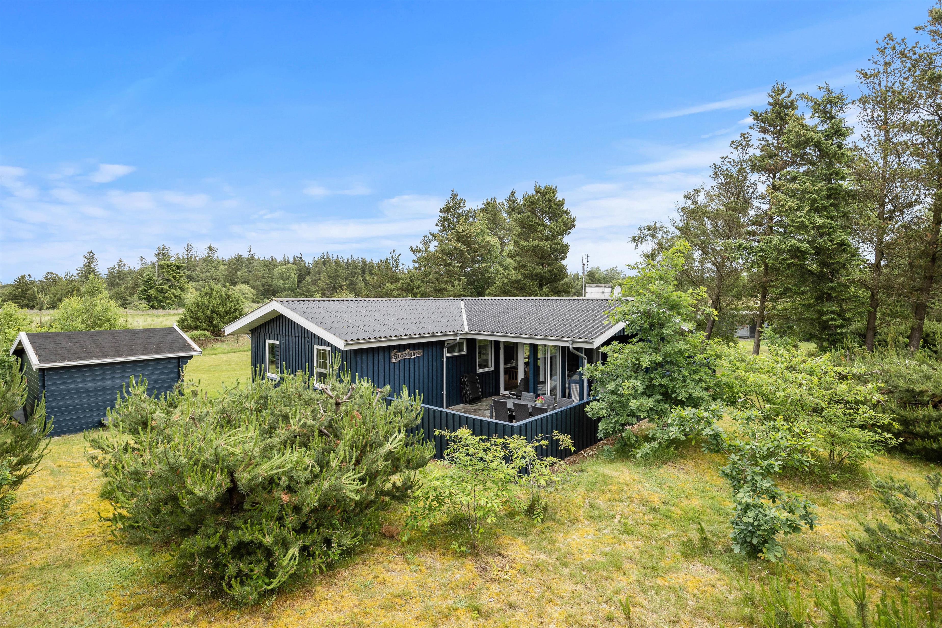 Selvom grunden er hele 1688 kvadratmeter, virker haven større, idet der er et kæmpe grønt areal bag feriehuset. Er I heldige, kan I måske både se rådyr, ræve, harer og andre vilde dyr, der bevæger sig rundt derovre.