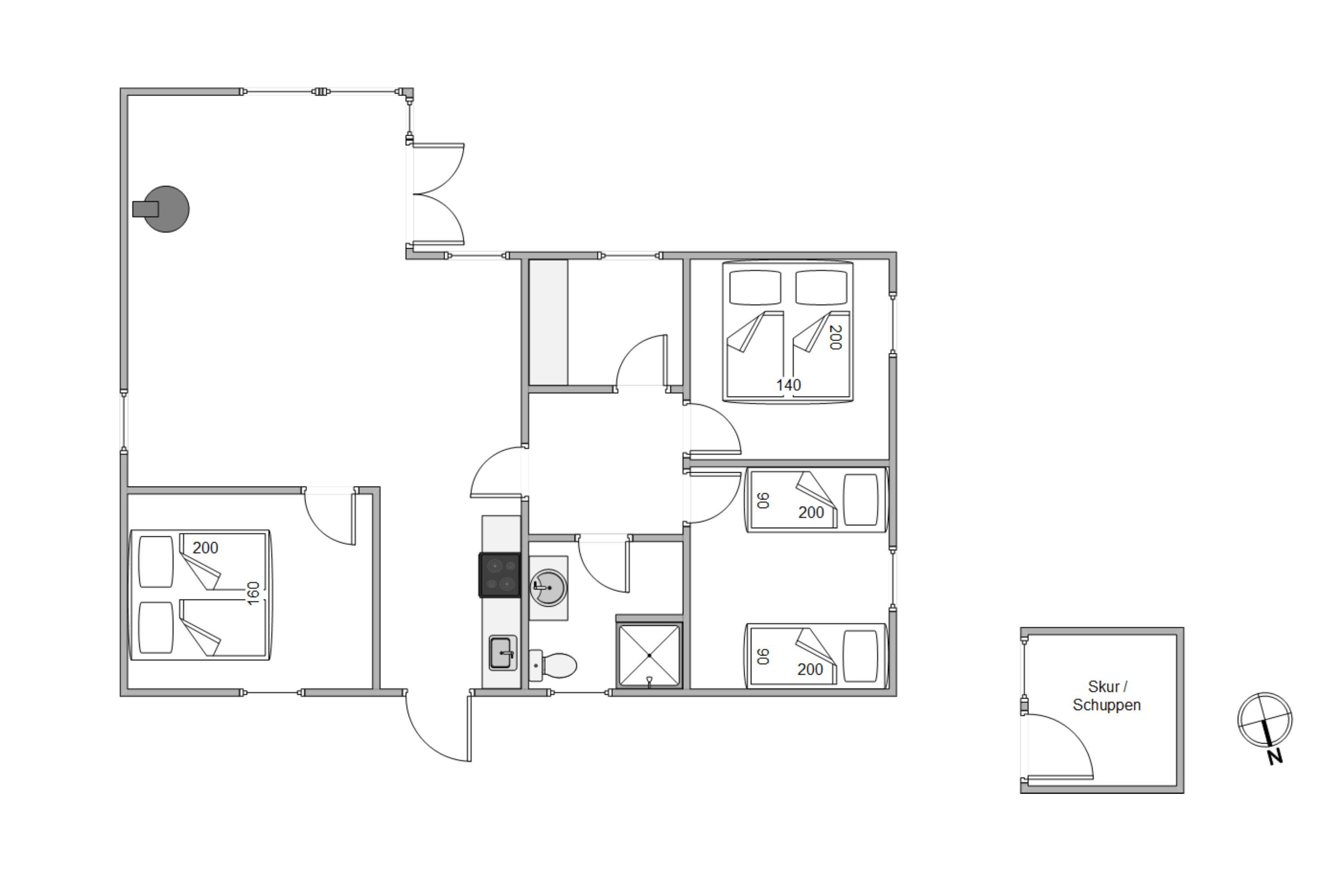 De 3 værelser er udstyret med dobbeltseng i 2 af dem og det sidste soverum har 2 enkeltsenge, så her er plads til både nogle vennepar eller en familie – eventuelt med bedsteforældre også.