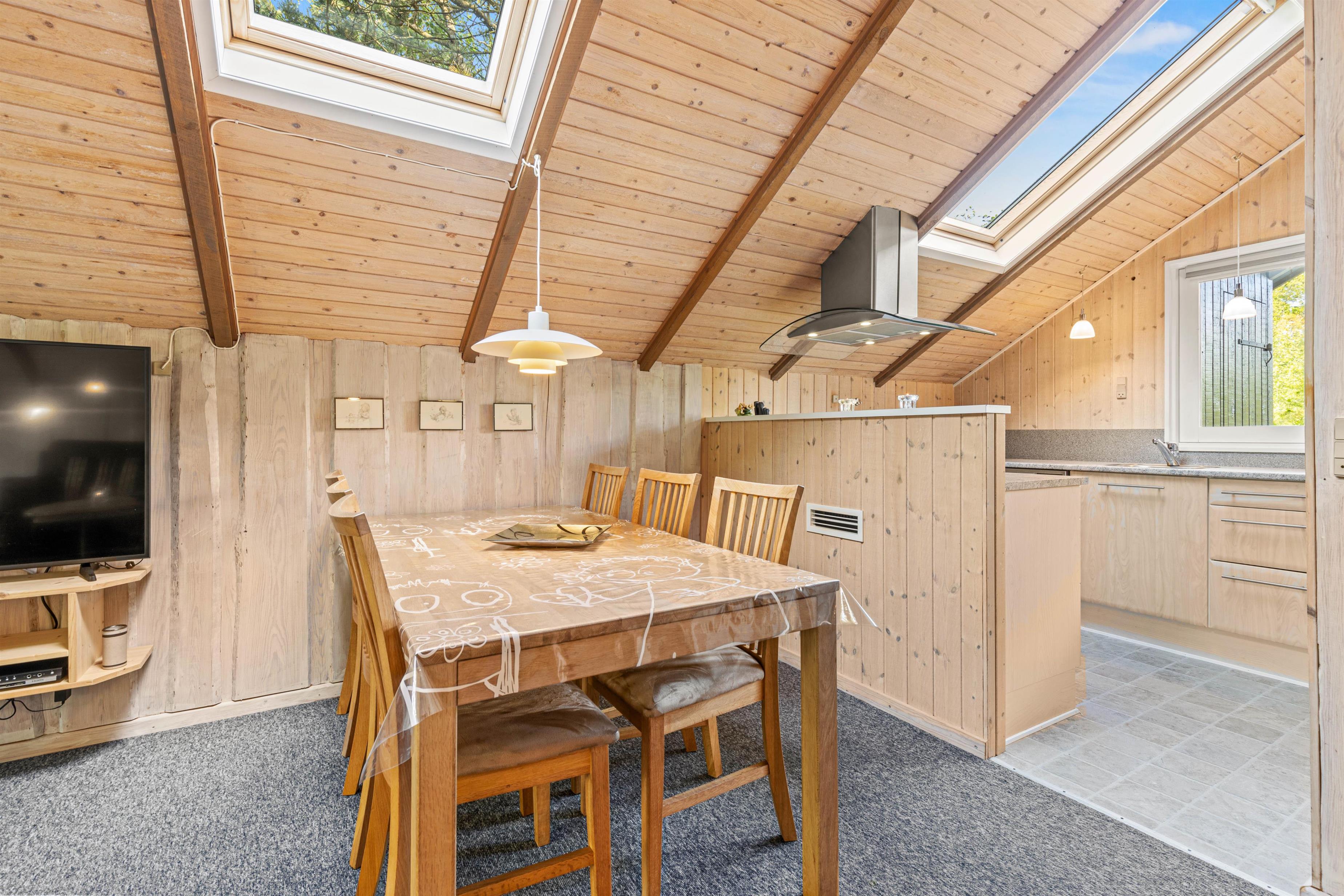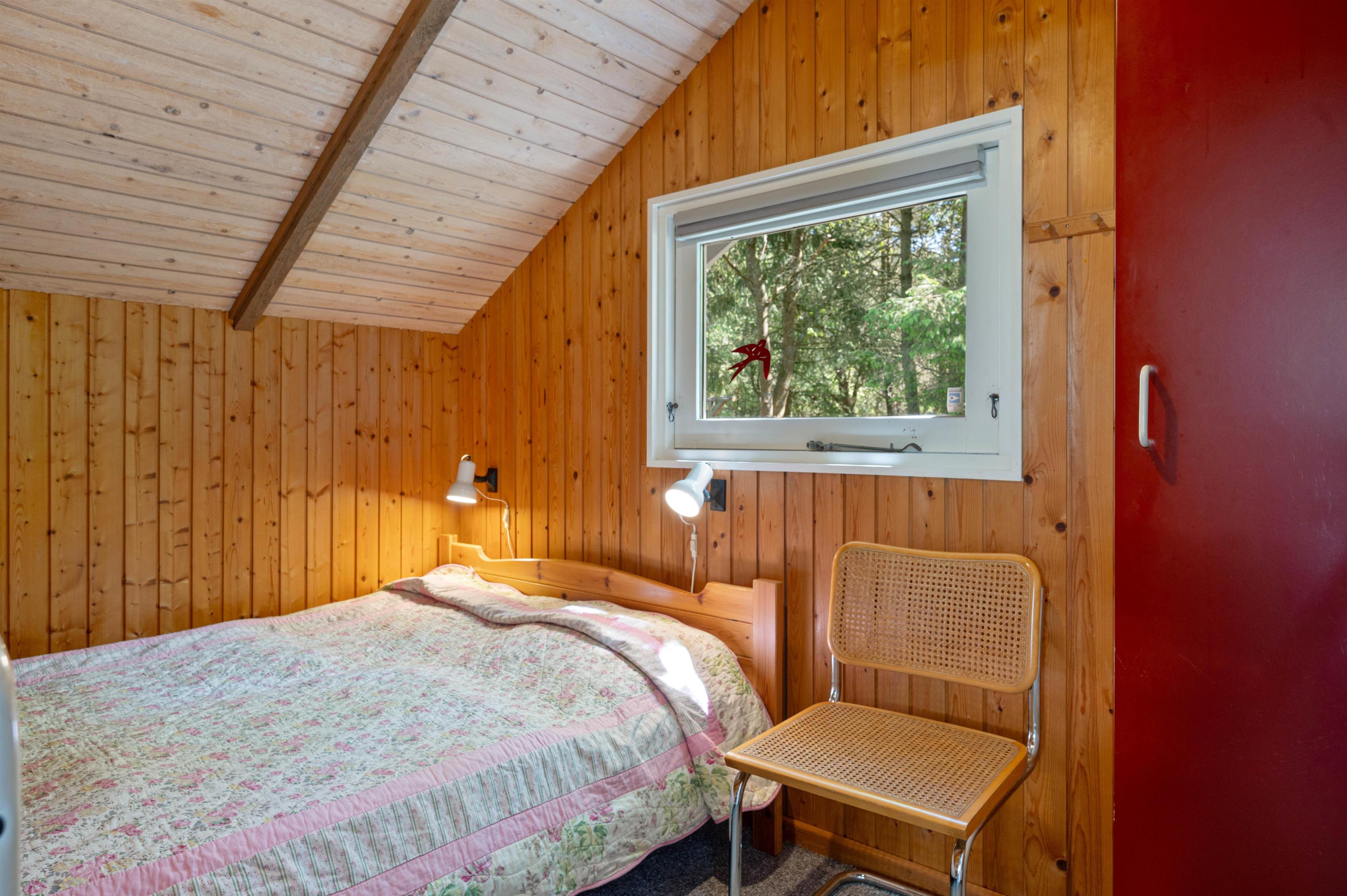 Ud over husets beliggenhed på en ugeneret grund, har sommerhuset en hyggelig charme. Opholdsrummet er husets hjerte, og herfra har I adgang til terrassen, spisekrogen og køkkenet. Indretningen er hyggelig og alt fremstår lyst, pænt og velholdt med trævægge, trælofter og loftet i kip.