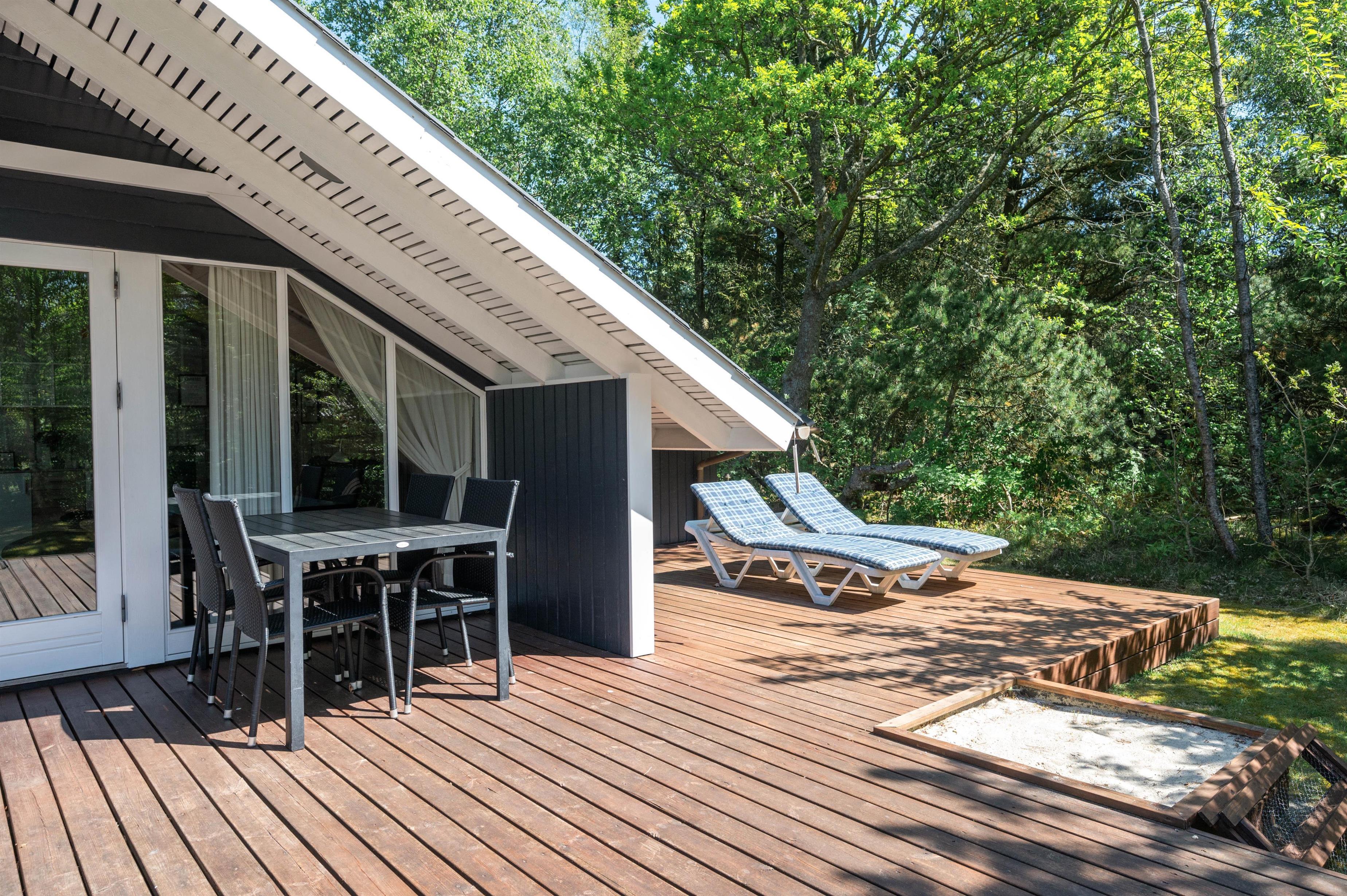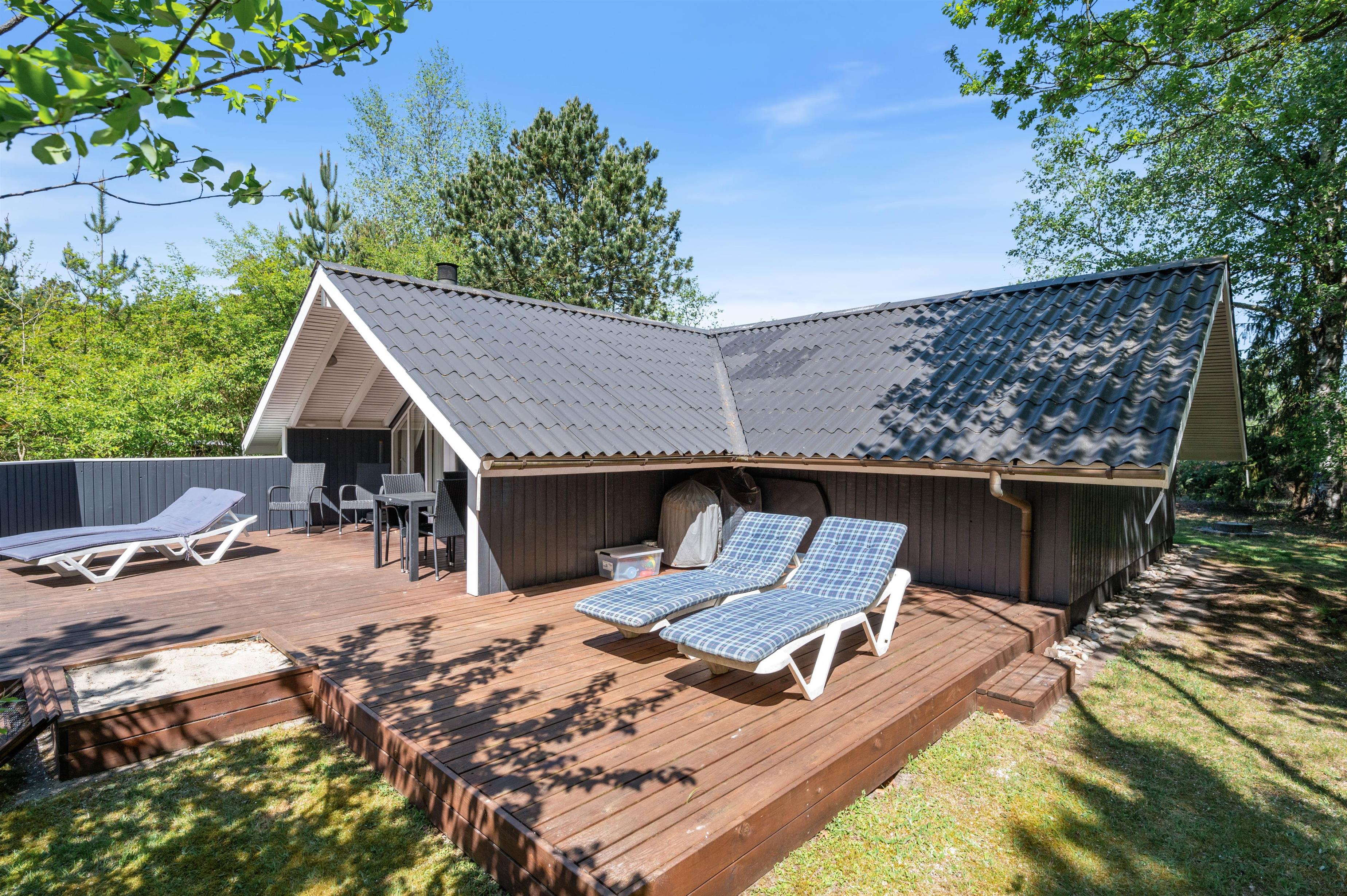 Her bor I helt ude skoven; Feriehuset ligger på en dejlig plænegrund, som er omkranset af træer. Det giver jer masser af privatliv i og omkring huset. Her kan I sidde ugeneret på terrassen og nyde solen og ferien, mens børnene leger.