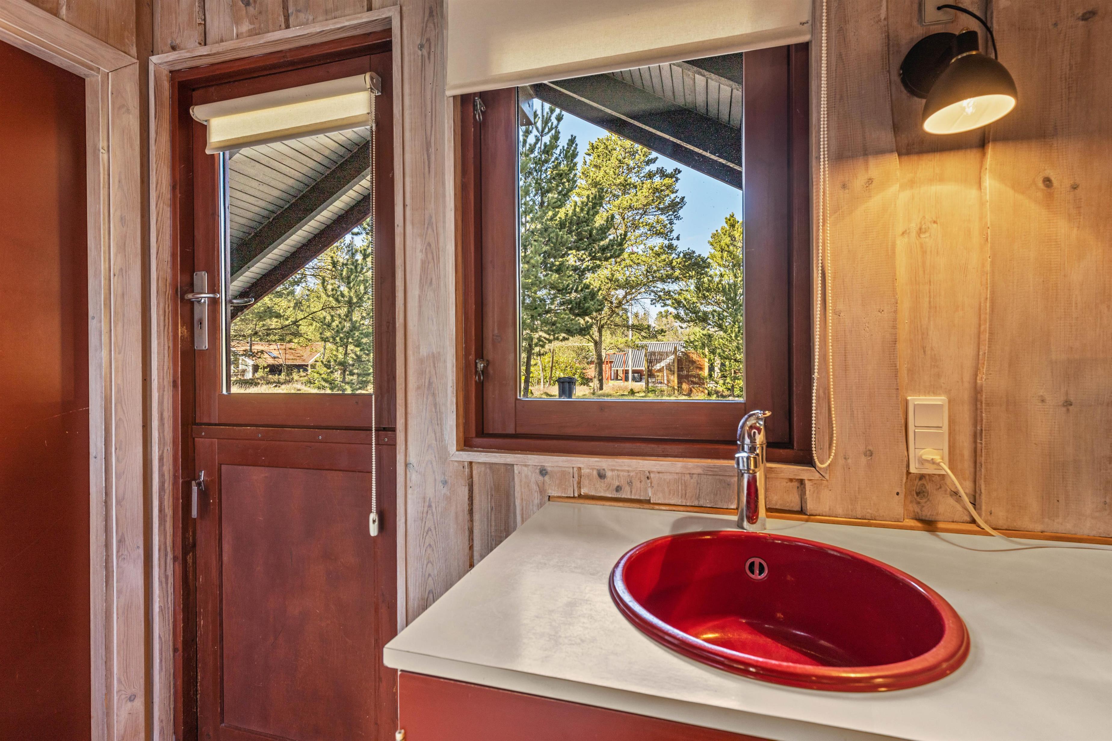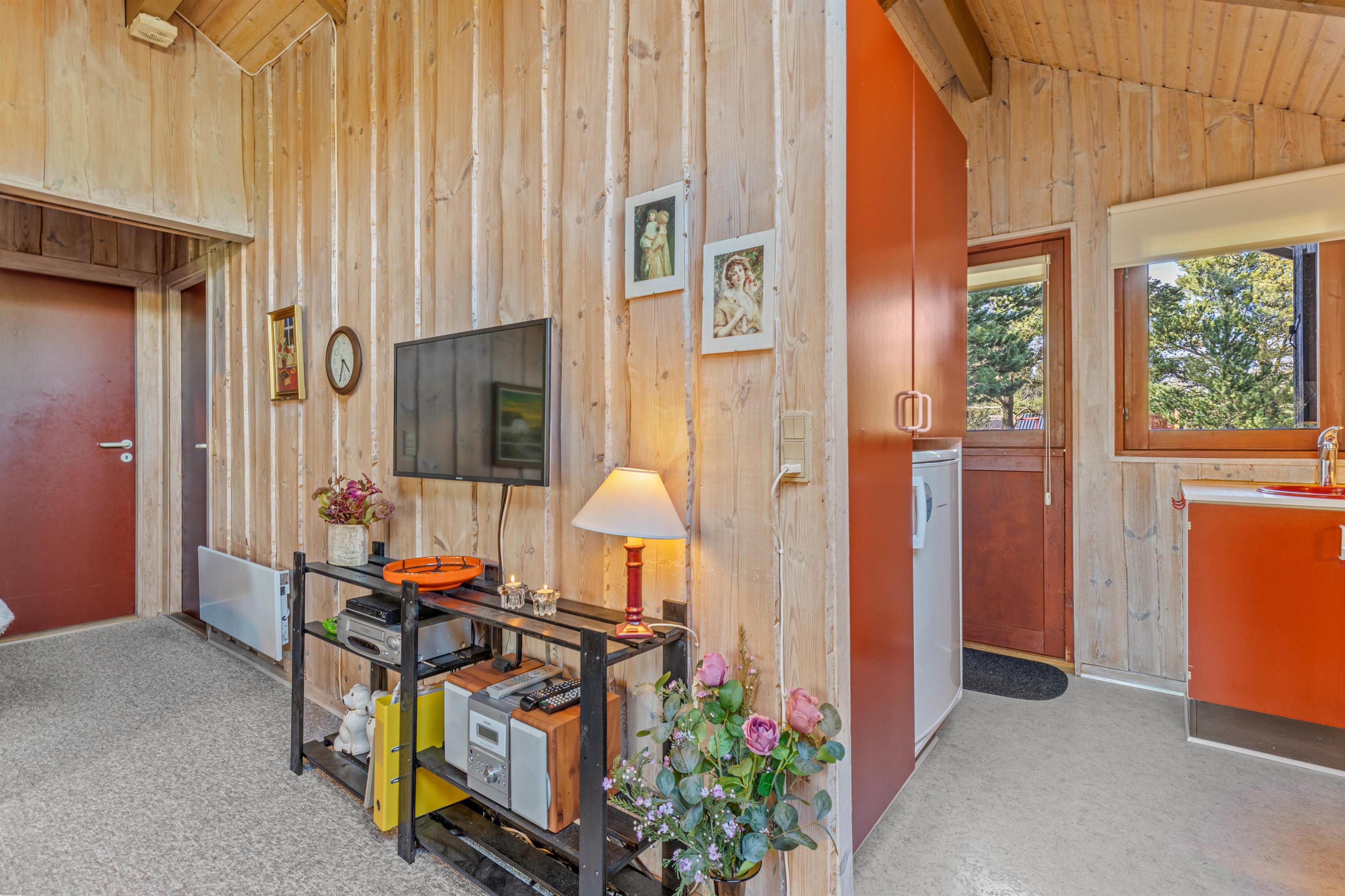 Dette feriehus bærer præg af ro æstetik, med dets røde detaljer i køkkenet og farverige nips som går igen igennem hele huset, som kan huse op til 6 personer. De 60 m² er godt udnyttet, og charme og personlighed er 2 absolutte nøgleord på Skovvang 119.