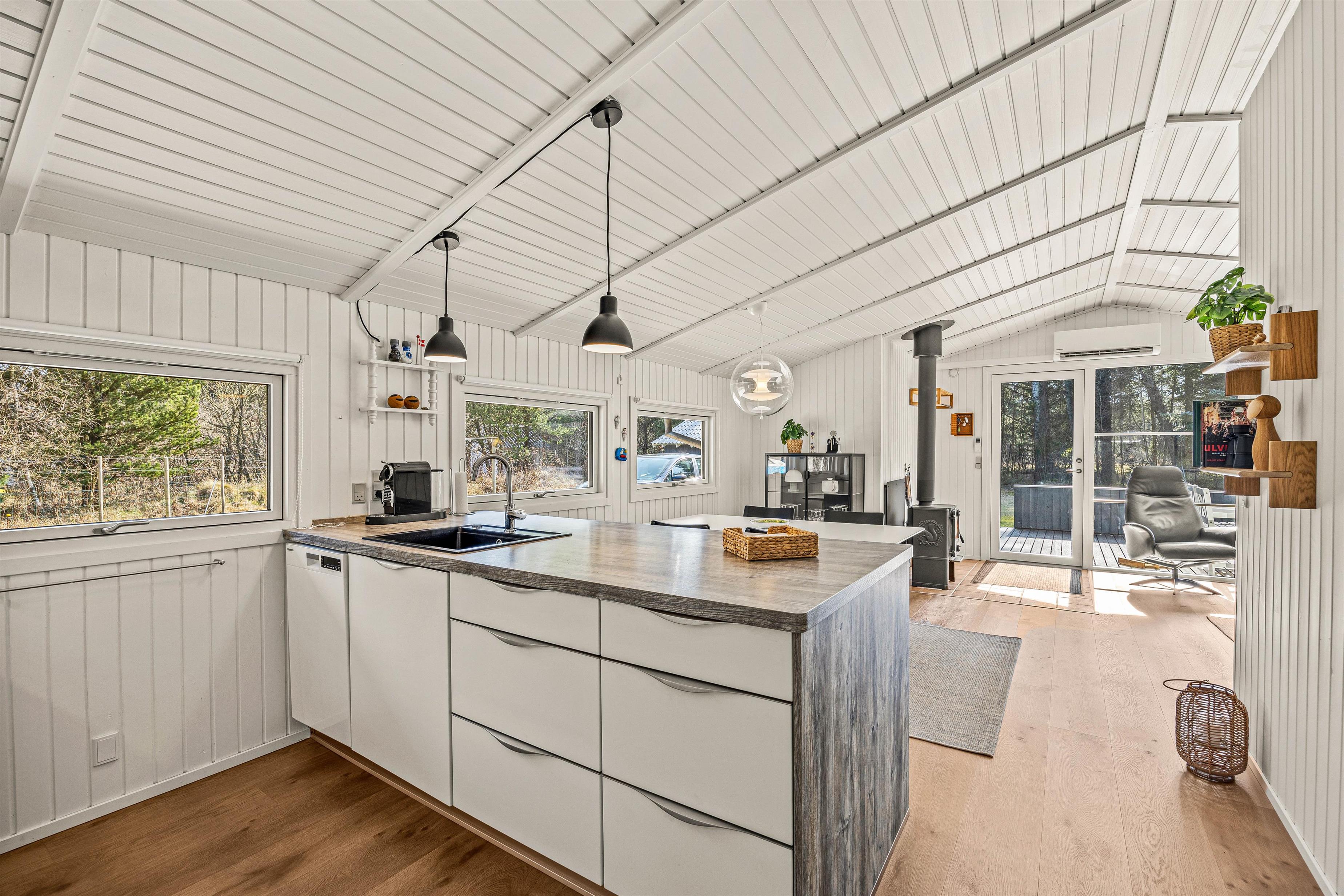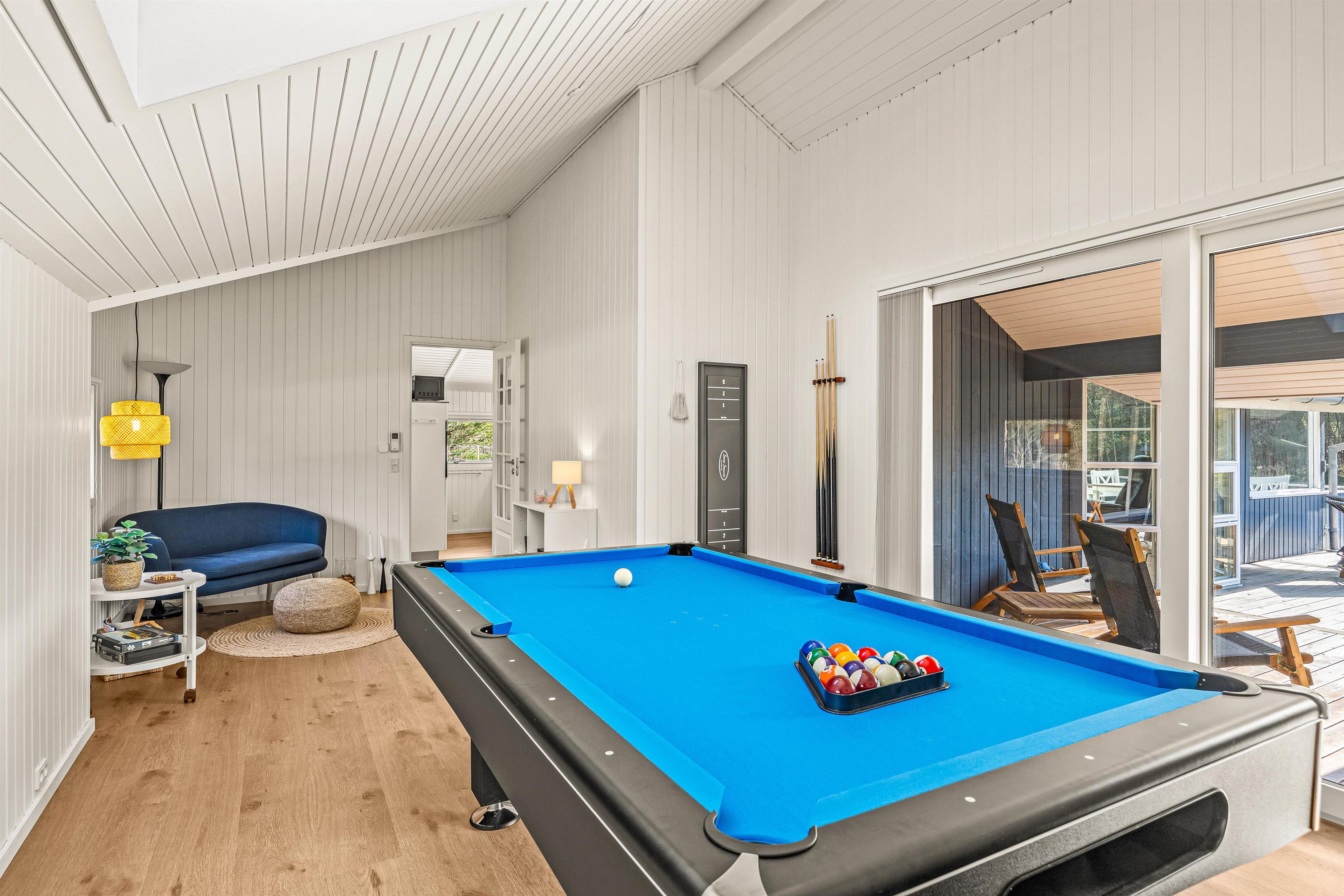 Det 4-stjernede sommerhus i Houstrup er designet med både komfort og stil for øje, hvilket gør det til et ideelt tilflugtssted året rundt. Som et aktivitetshus byder det på nogle skønne indendørs faciliteter, herunder et billardbord, der tilbyder mange timers underholdning. Det rummelige opholdsrum er ikke kun smagfuldt indrettet, men også praktisk. I køkkenet finder I også en opvaskemaskine, så I kan nyde mere tid med hinanden.