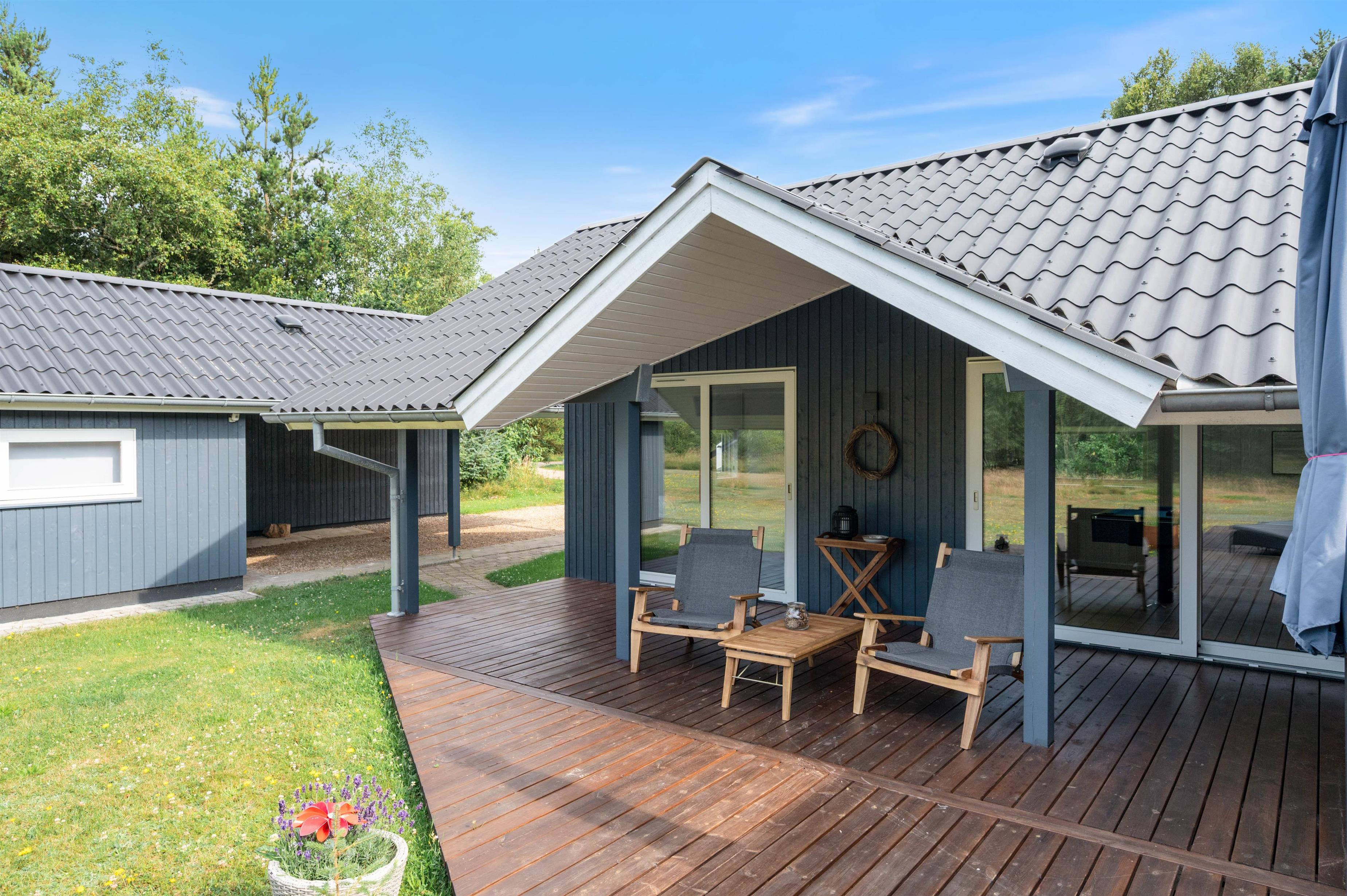 Omgivet af en rummelig 2.000 kvadratmeter naturgrund, byder dette sommerhus på Jens Thomsensvej 23 i Houstrup på en skøn udendørs oplevelse. Her venter en overdækket og afskærmet terrasse, som fungerer som et perfekt samlingspunkt til at nyde de lune sommeraftener. Her finder I gode havemøbler og en parasol, der giver skygge på solrige dage.