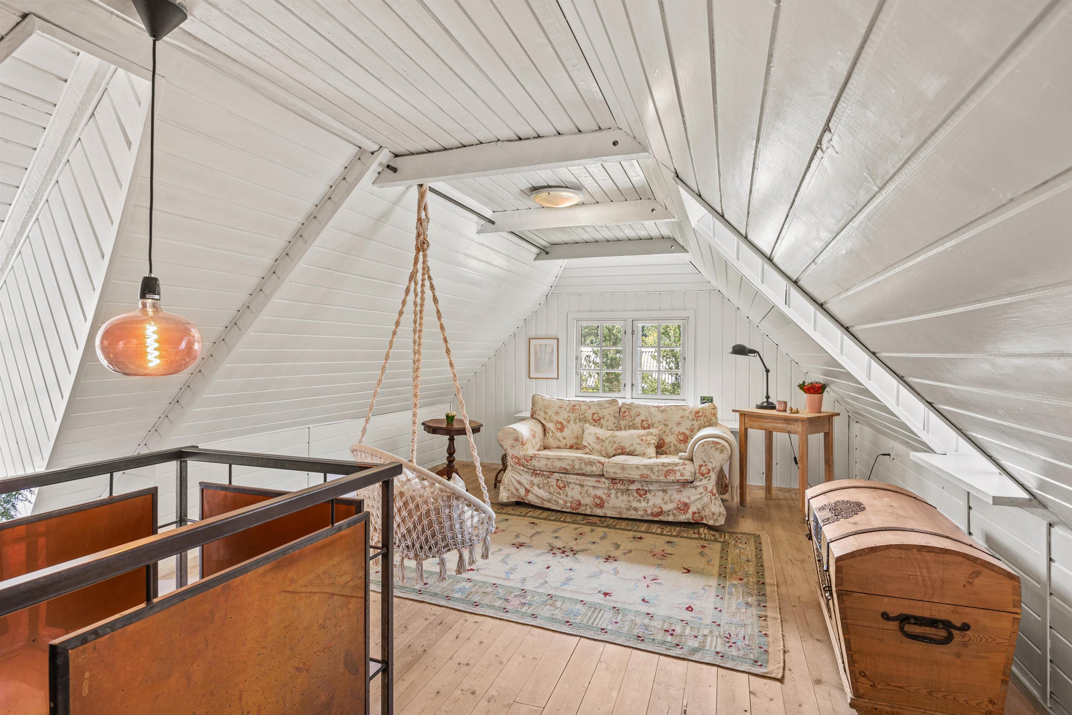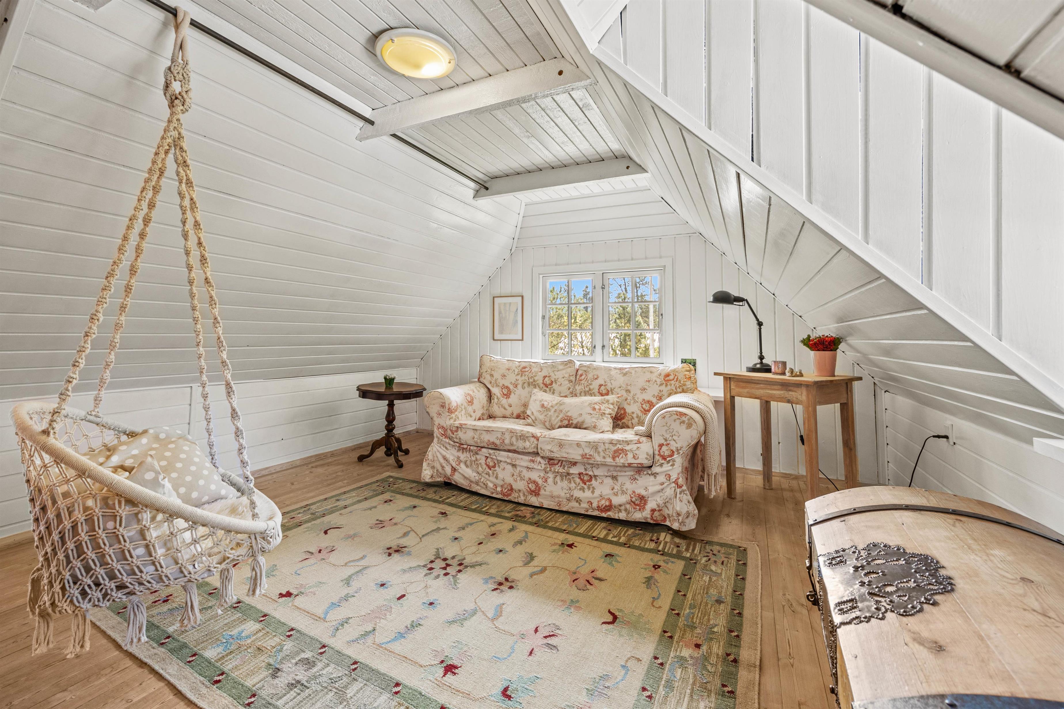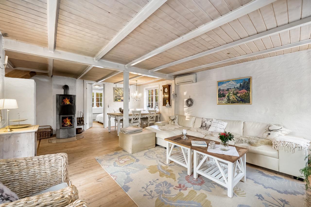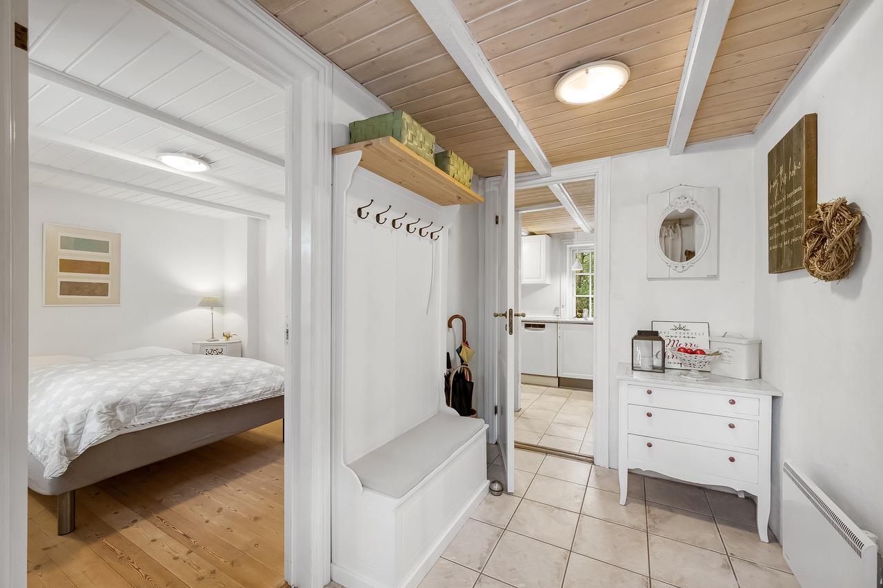 Sommerhuset byder på en lys og landlig indretning, der skaber en stemning af hygge og afslapning.