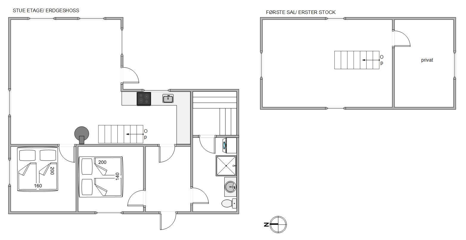 Med to lyst indrettede soveværelser med dobbeltsenge, er sommerhuset ideelt til både vennegrupper og familier. Badeværelset er udstyret med en kombineret vaskemaskine og tørretumbler, så I kan holde styr på tøjet under ferien. Derudover er der gulvvarme og en sauna, der giver jer mulighed for at slappe af og lade musklerne hvile efter en dag ude i naturen eller ved stranden.