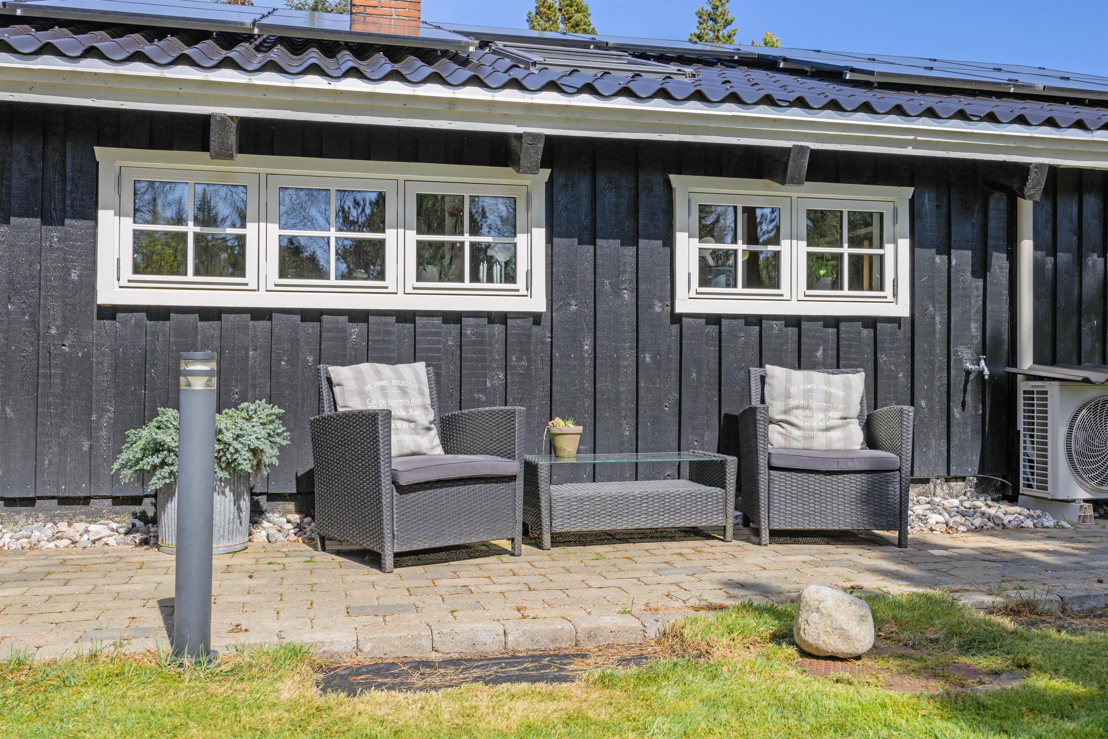 Den anden terrasse er på modsatte side af sommerhuset, hvor I kan nyde morgenkaffen til lyden af fuglene. På den måde kan I nyde solens varme stråler, når den står i både øst og vest. Når dagen lakker mod enden, kan I tænde op i gasgrillen og tilberede et lækkert feriemåltid, som kan nydes mens solen langsomt går ned bag træerne.
