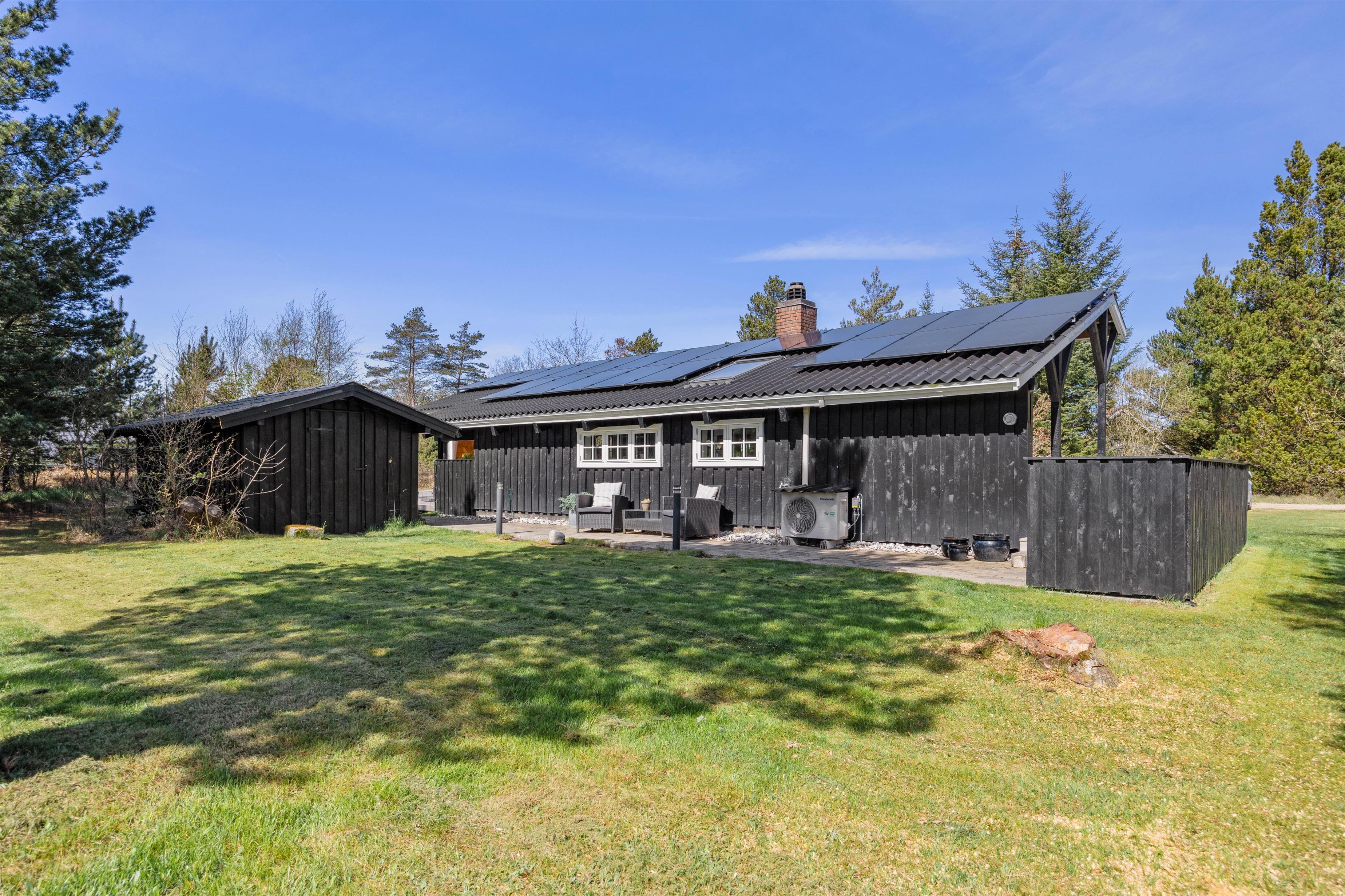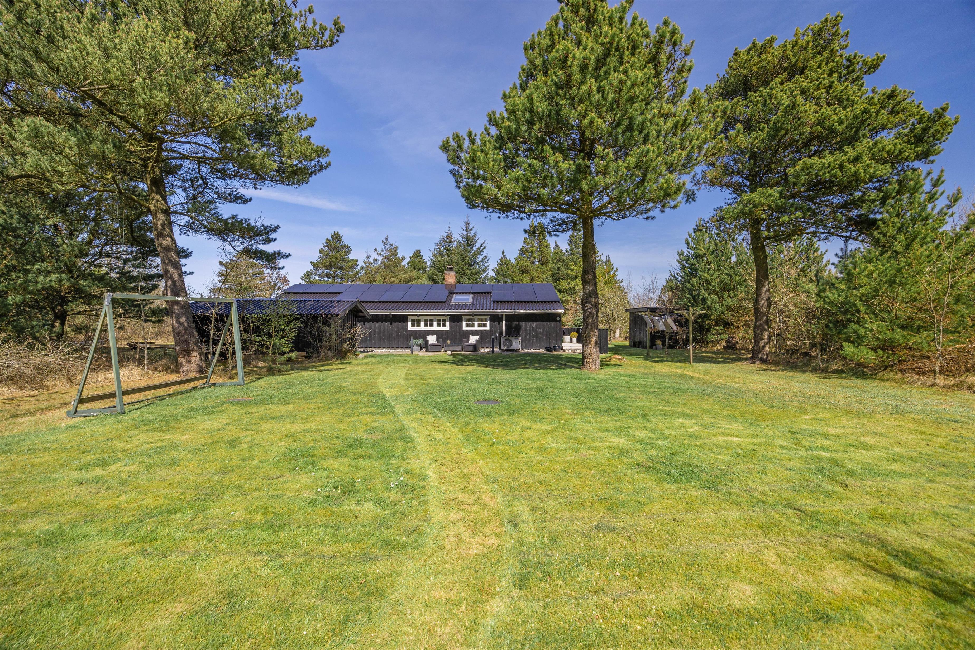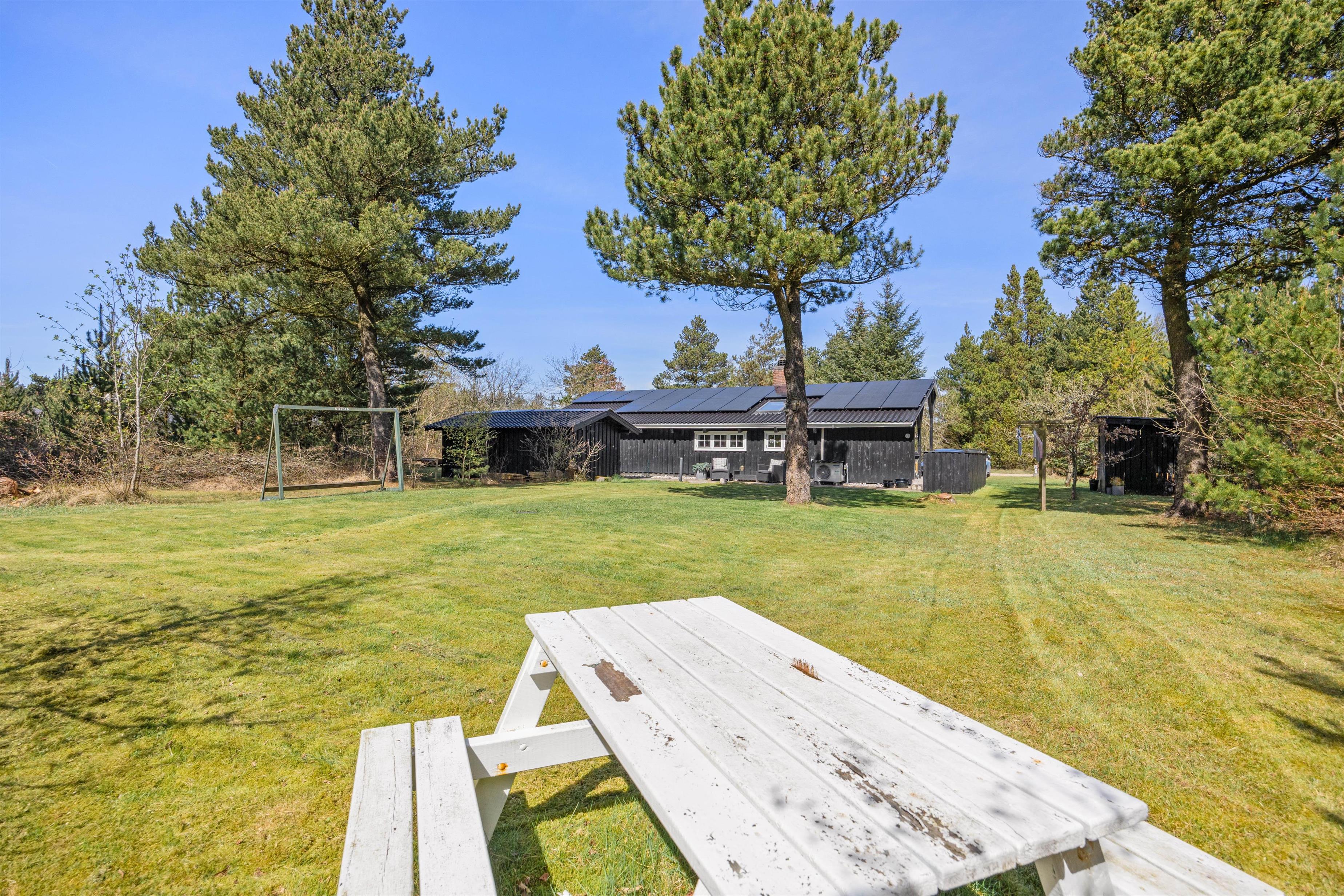 Sommerhuset er placeret på en hjørnegrund med store træer på flere af siderne. Her er I tæt på Houstrups skønne natur, og med de mange stier gennem området og skoven, er der er et utal af muligheder for gode gå- og cykelture. Kun 3 kilometer fra sommerhuset finder I Vesterhavet, hvor der er utrolig skønt at opholde sig uanset årstid.