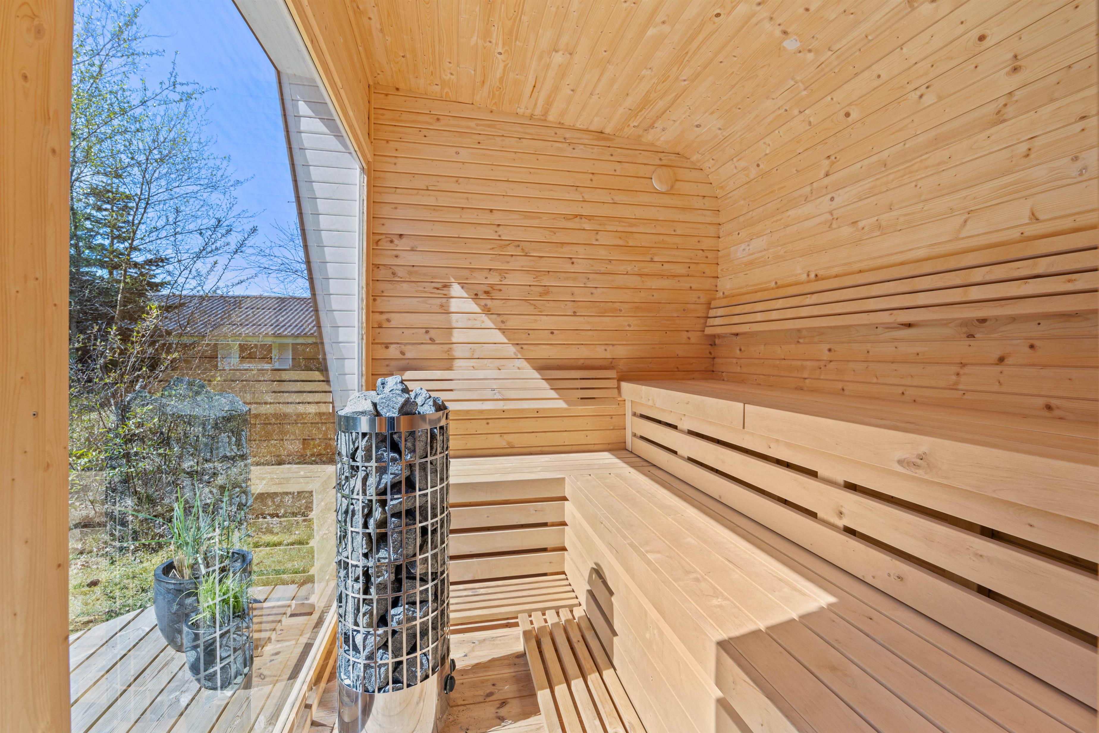 Eller I kan tage et langt saunaophold i udesaunaen og varme jer godt igennem. Her kan I slappe helt af.
