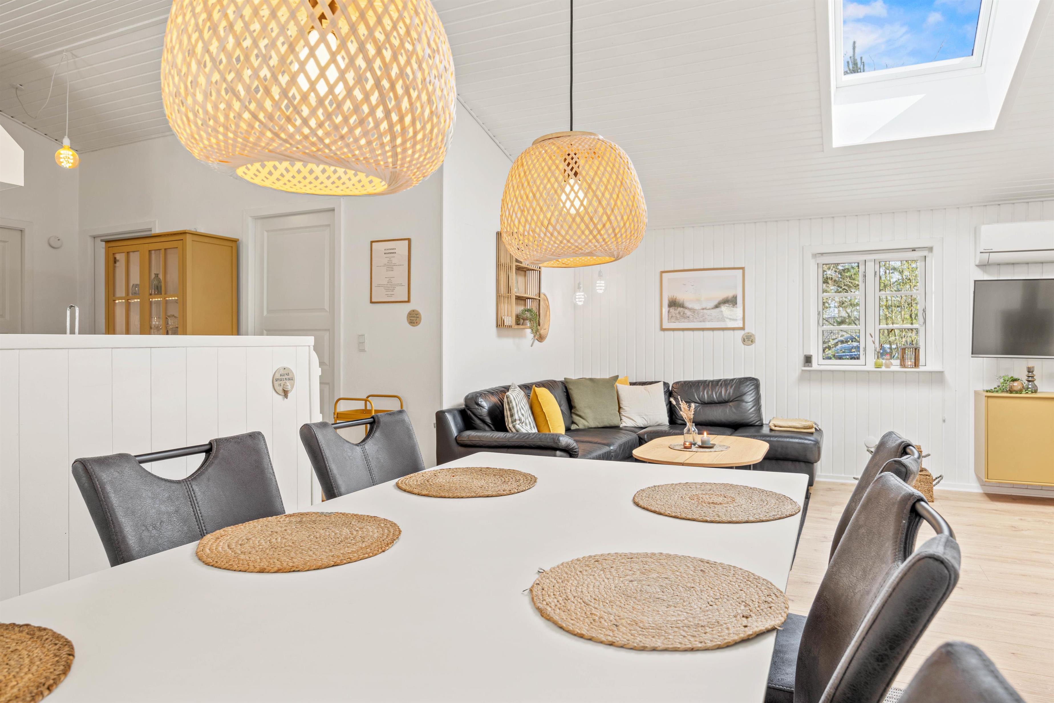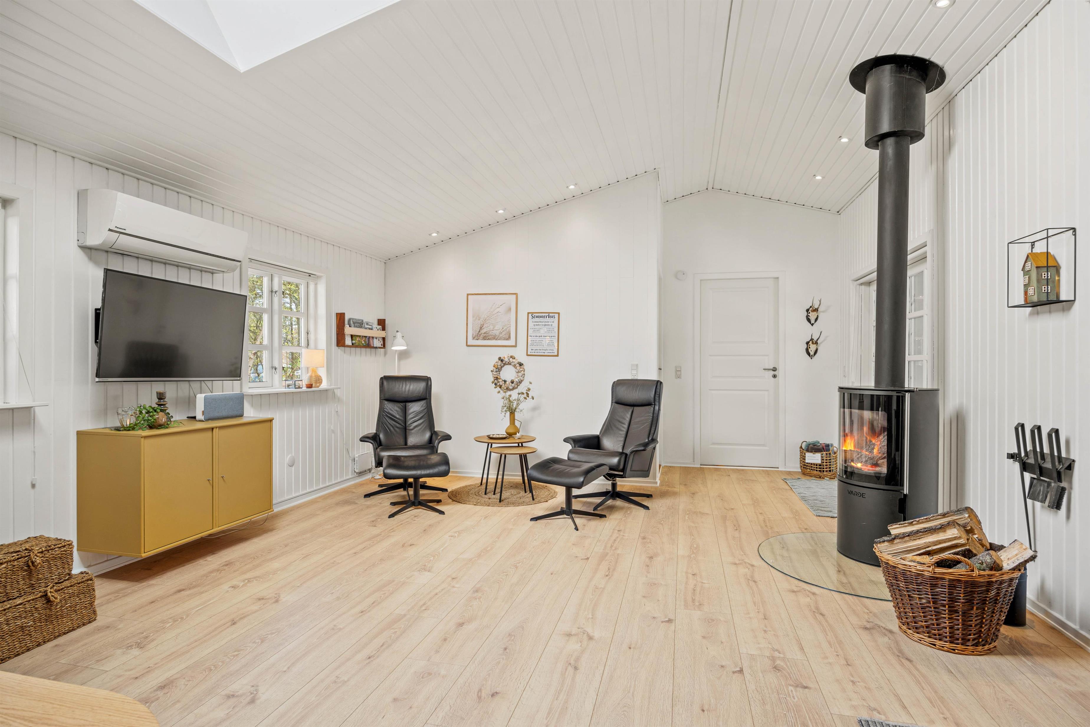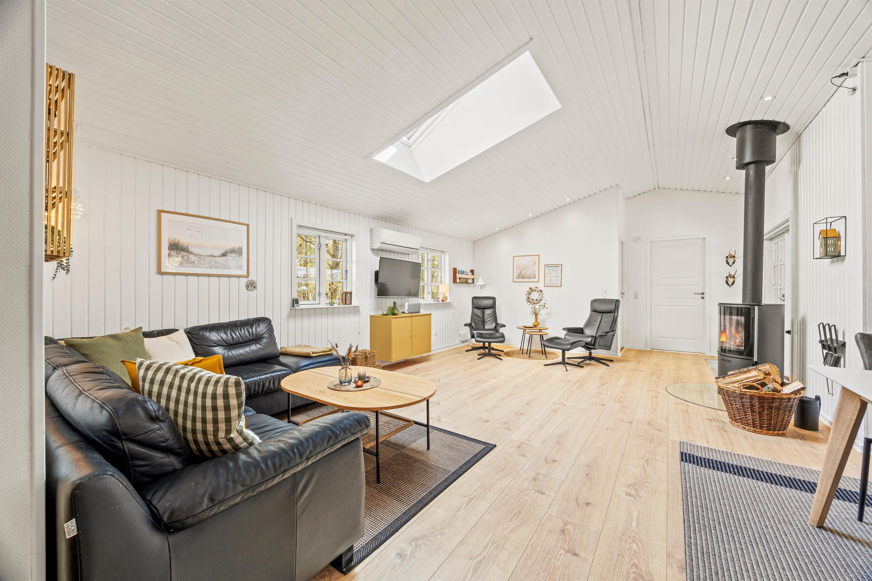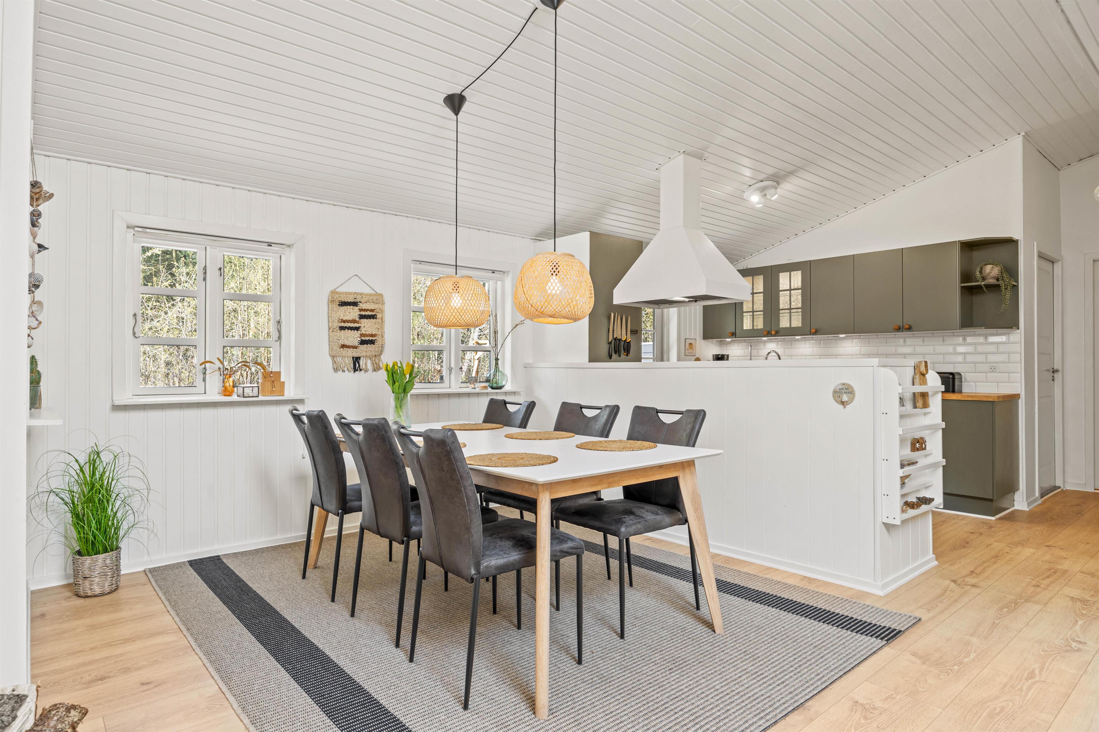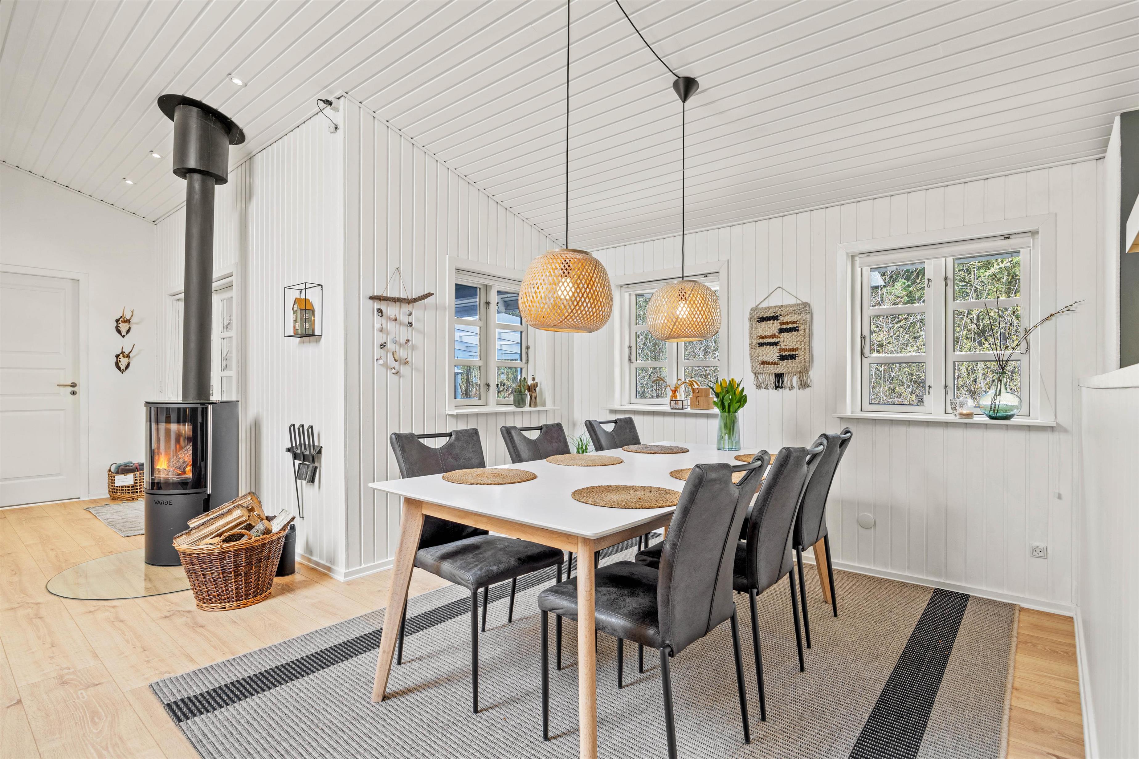 Dette dejlige sommerhus er blevet nænsomt renoveret i 2021, så I kan nyde en behagelig og stilfuld ferieoplevelse. Arealet på hele 102m² råder over 3 soverum, der henholdsvis er indrettet med senge, der er 180x200, 140x200 og 2x90x200, hvilket gør det til en ideel destination for både familier og venner. Det åbne køkken er udstyret med en opvaskemaskine, så I kan nyde ferien uden at skulle bekymre jer om hvem, der skal tage opvasken. Desuden er der en brændeovn i opholdsrummet, der skaber en hyggelig atmosfære på kølige aftener.