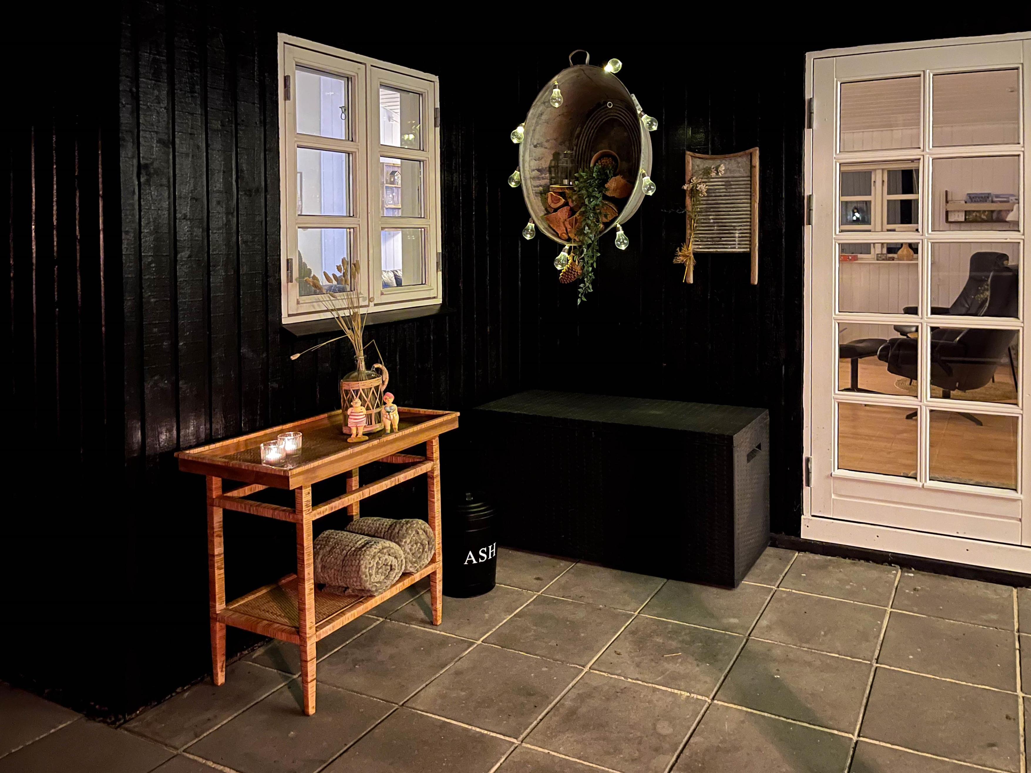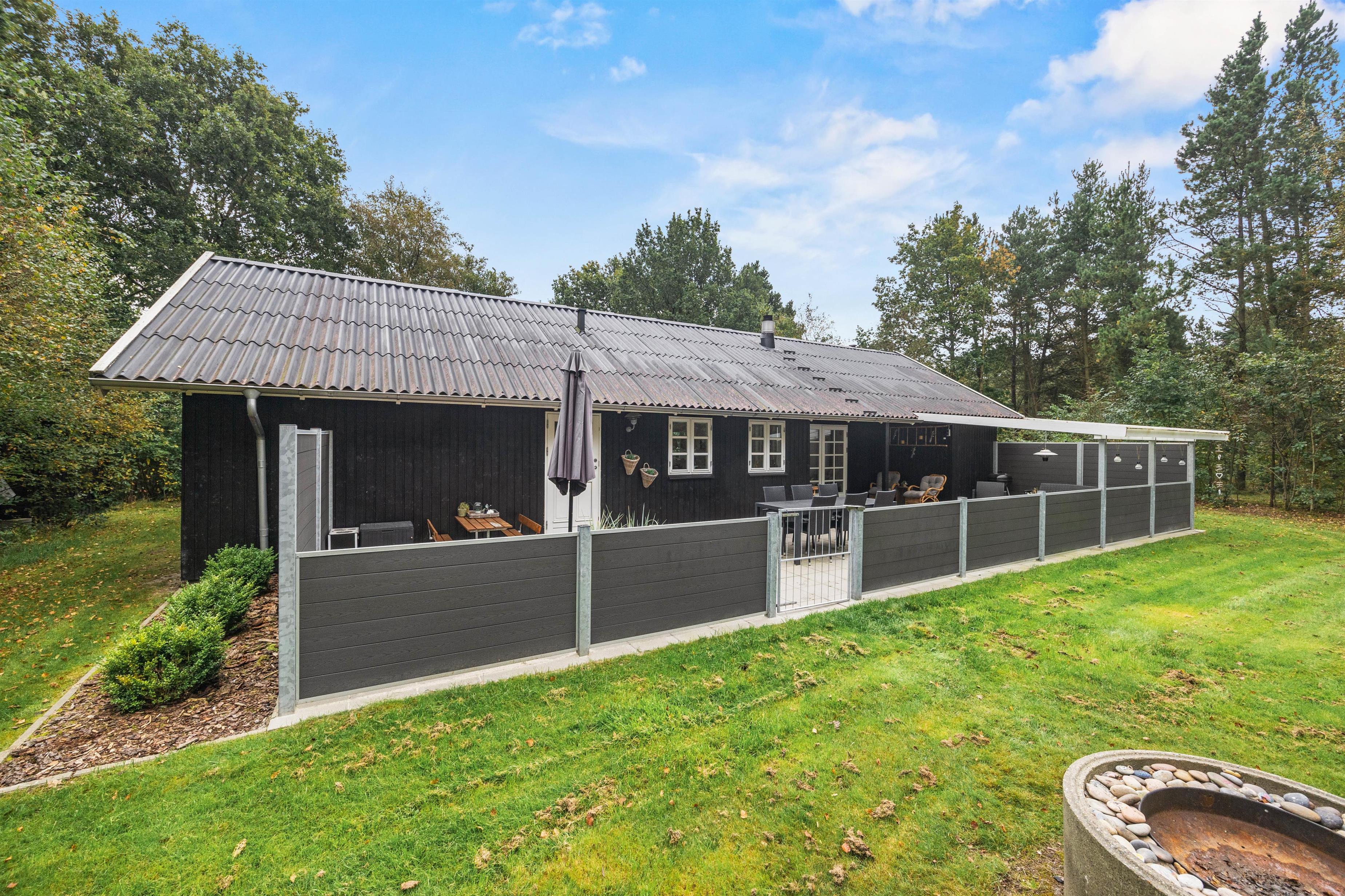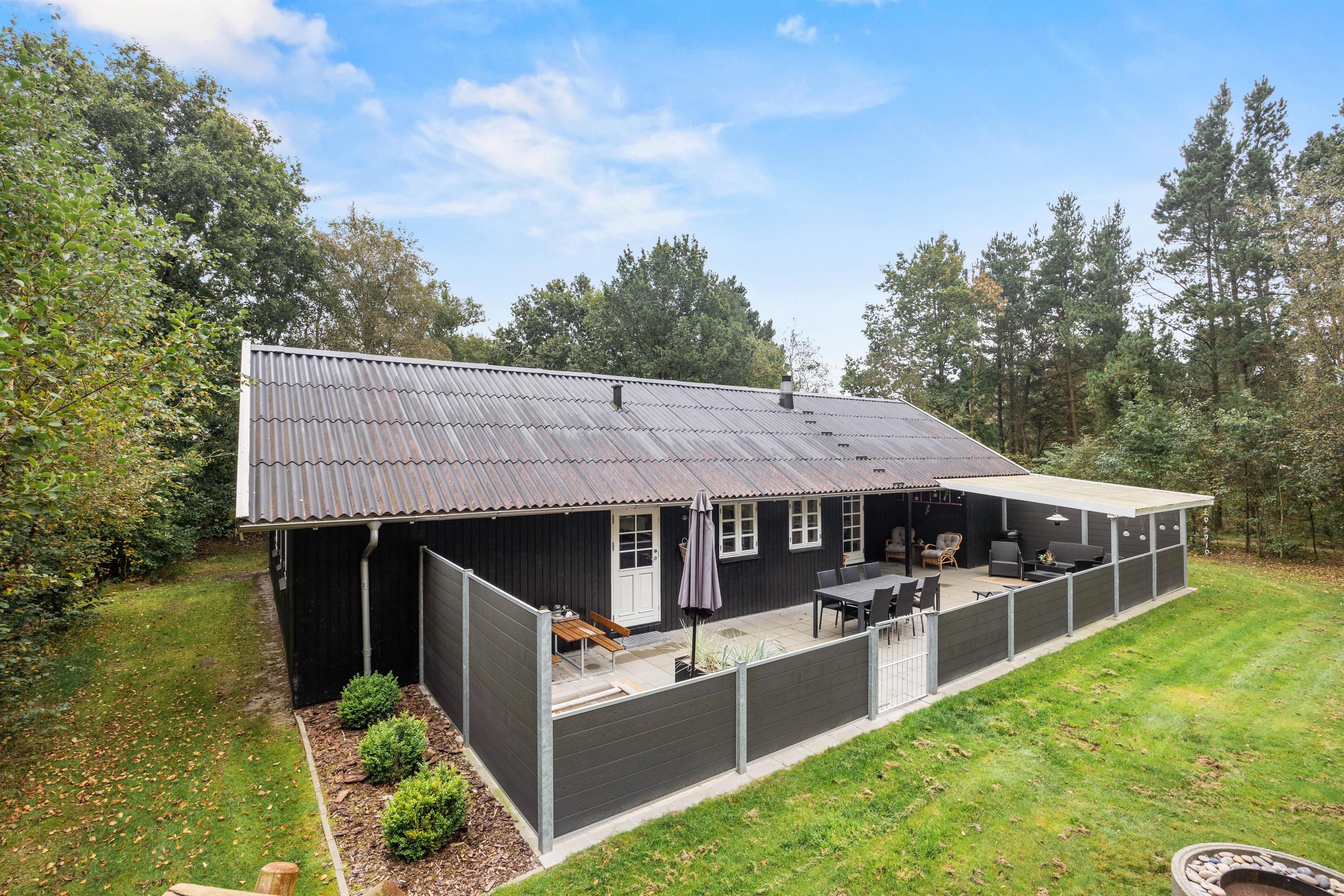 Efter en dag i solen er der intet bedre end at samles på den overdækkede terrasse. Her finder I også havemøbler, så I kan nyde lækre feriemåltider udendørs, mens hunden trygt kan lege på den lukkede terrasse.