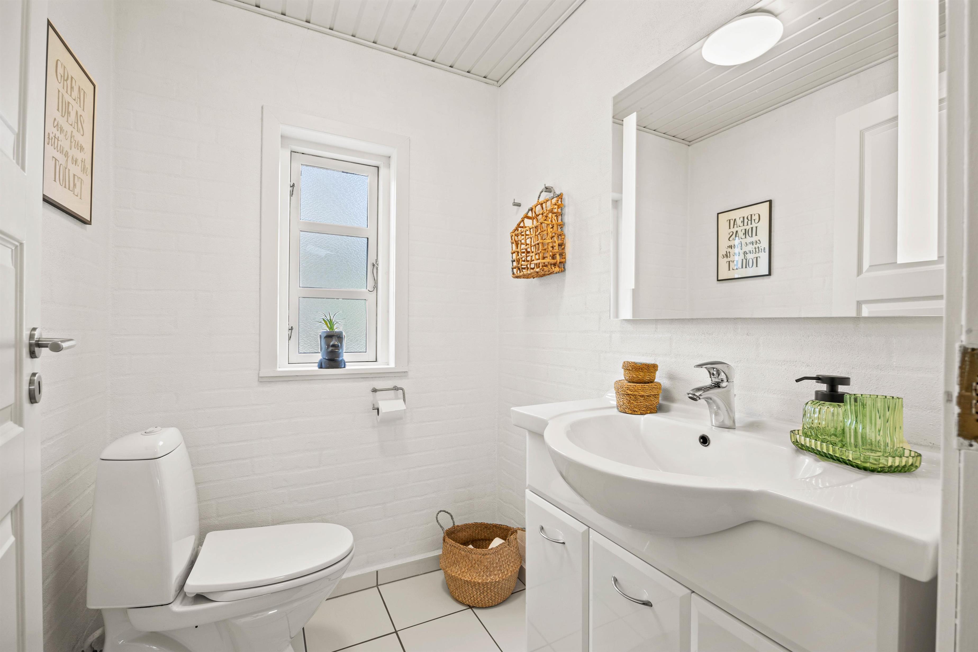 For dem der ønsker lidt ekstra nydelse, har sommerhuset en sauna, hvor I kan lade jeres kroppe blive varmet igennem efter en dag fuld af oplevelser. Badeværelset er moderniseret med gulvvarme, så I slipper for det kolde gys hver gang I sætter fødderne på gulvet. Derudover er der også et gæstetoilet, så der ikke bliver kø til toilettet. For at gøre jeres ophold så behageligt som muligt har sommerhuset også en vaskemaskine og en tørretumbler.