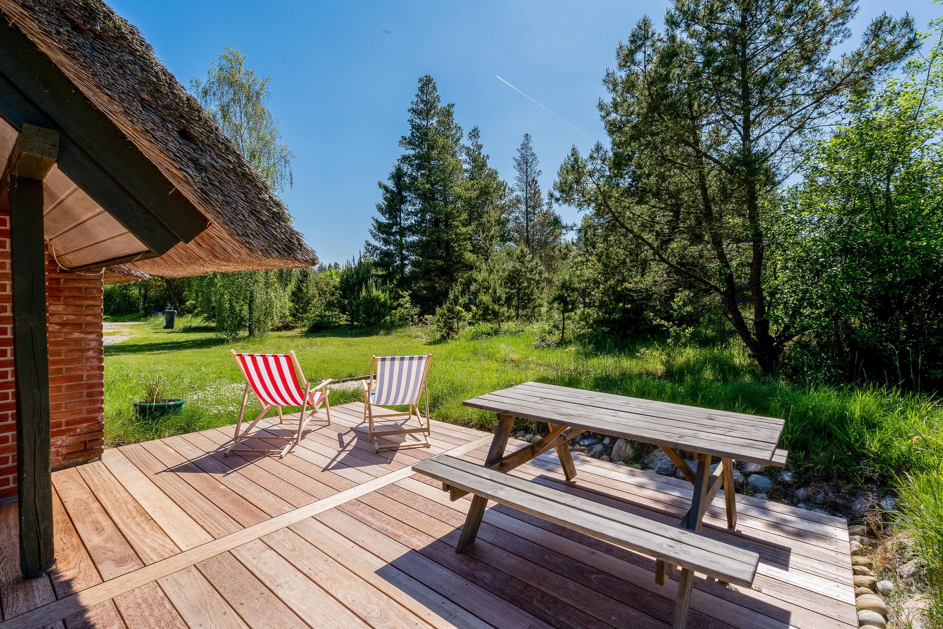 Dette skønne stråtækte ikke-ryger hus på Sdr. Skovvej 39 i Houstrup byder plads til 6 personer og ligger på en stor naturgrund, omgivet af skovens høje træer. Huset ligger et stenkast fra Blåbjerg Plantage med et net af vandre- og cykelstier, og de 2 etager byder på masser af hygge og en behagelig atmosfære for op til 6 personer