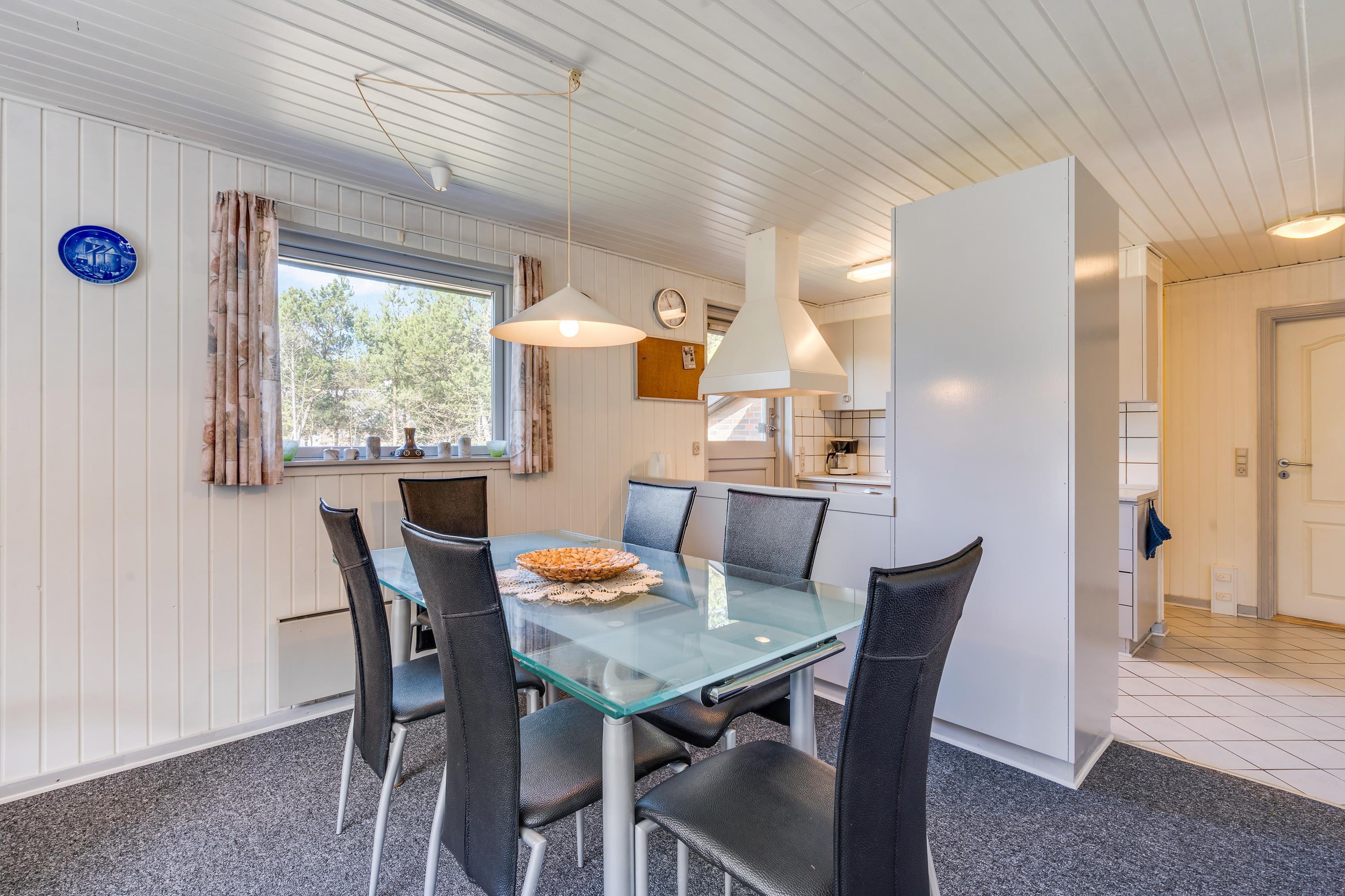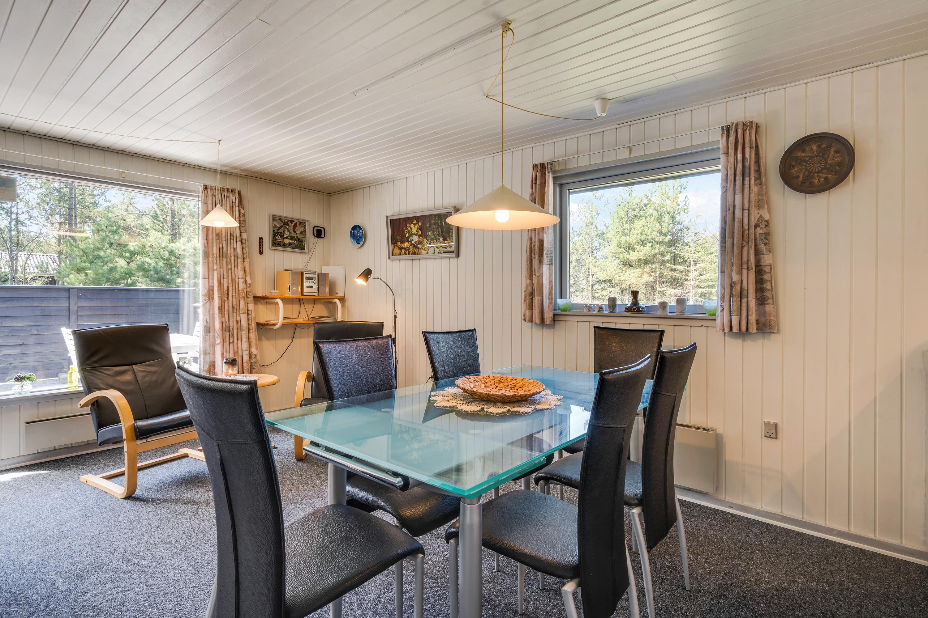 Den åbne spisestue ligger i forbindelse med køkkenet, og her er der lagt op til en masse dejlige feriestunder med de nærmeste. I det hyggelige sofahjørne er der plads til afslapning og filmhygge, brændeovnen vil sprede masser af feriestemning på de kolde dage, og rundt om spisebordet kan det hjemmelavede måltid rigtig nydes, mens de næste dages ferieplaner bliver lagt.