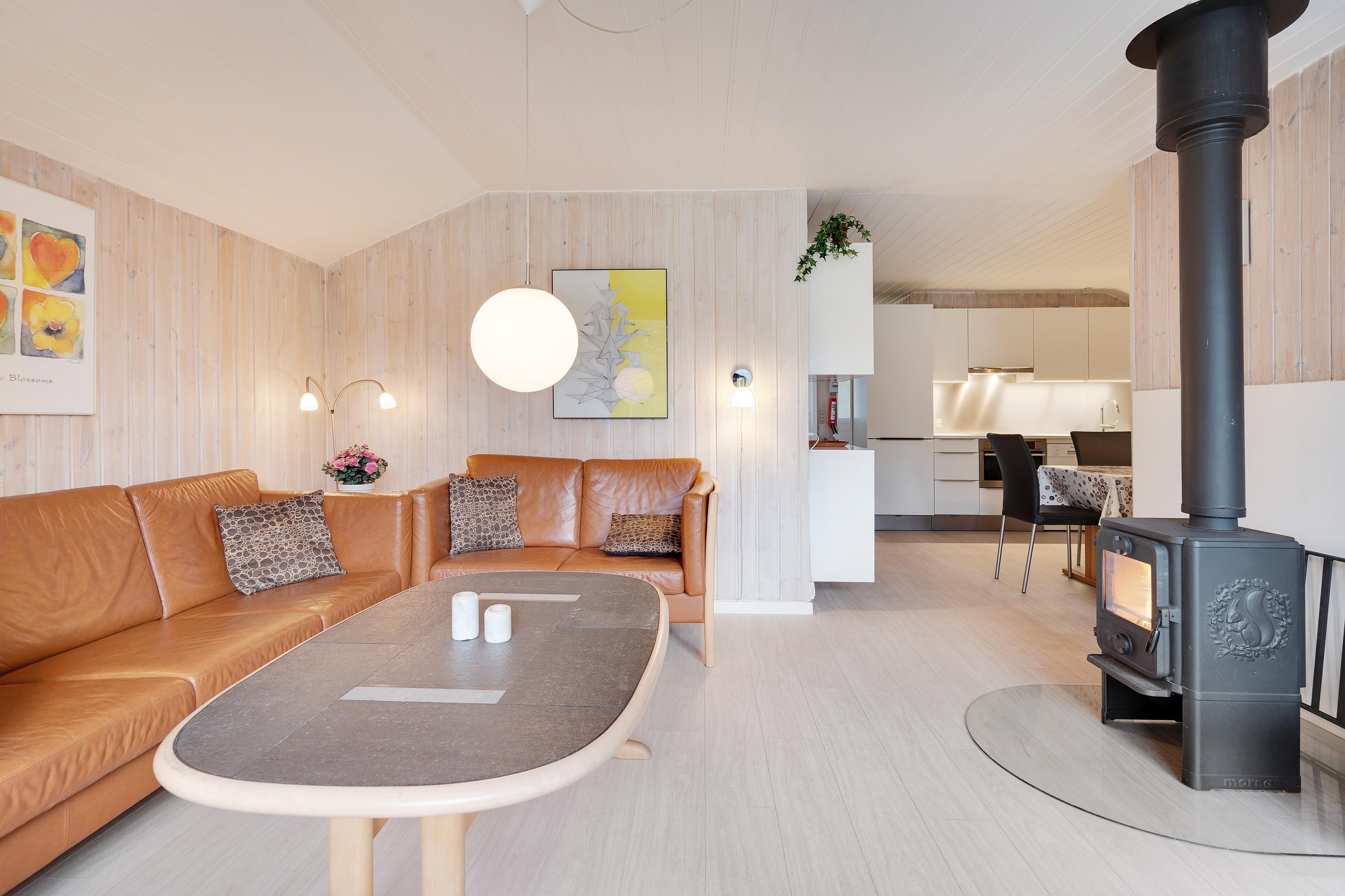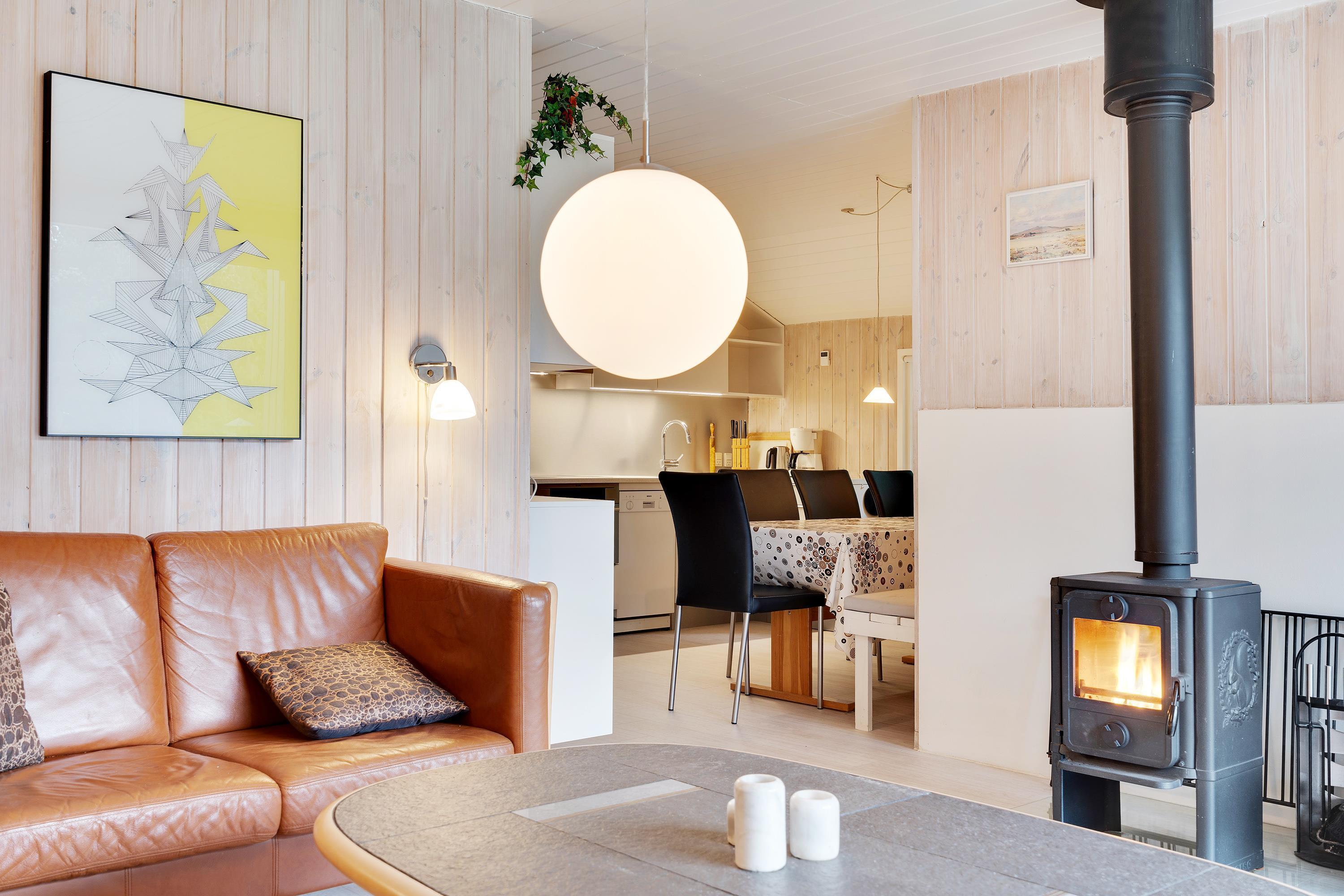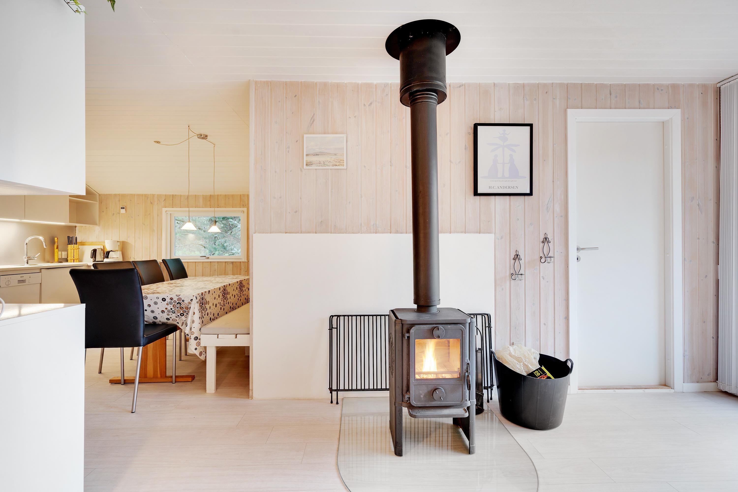 På Kirkeflod 5 er der tænkt på alle. Til børnefamilien er der både tremmeseng, højstol, babykar og pusleplads. Huset bliver opvarmet med en energisparende luft til luft varmepumpe, men vil man rigtig hygge, kan man tænde op i husets brændeovn, som står centralt mellem stue og spisehjørnet.