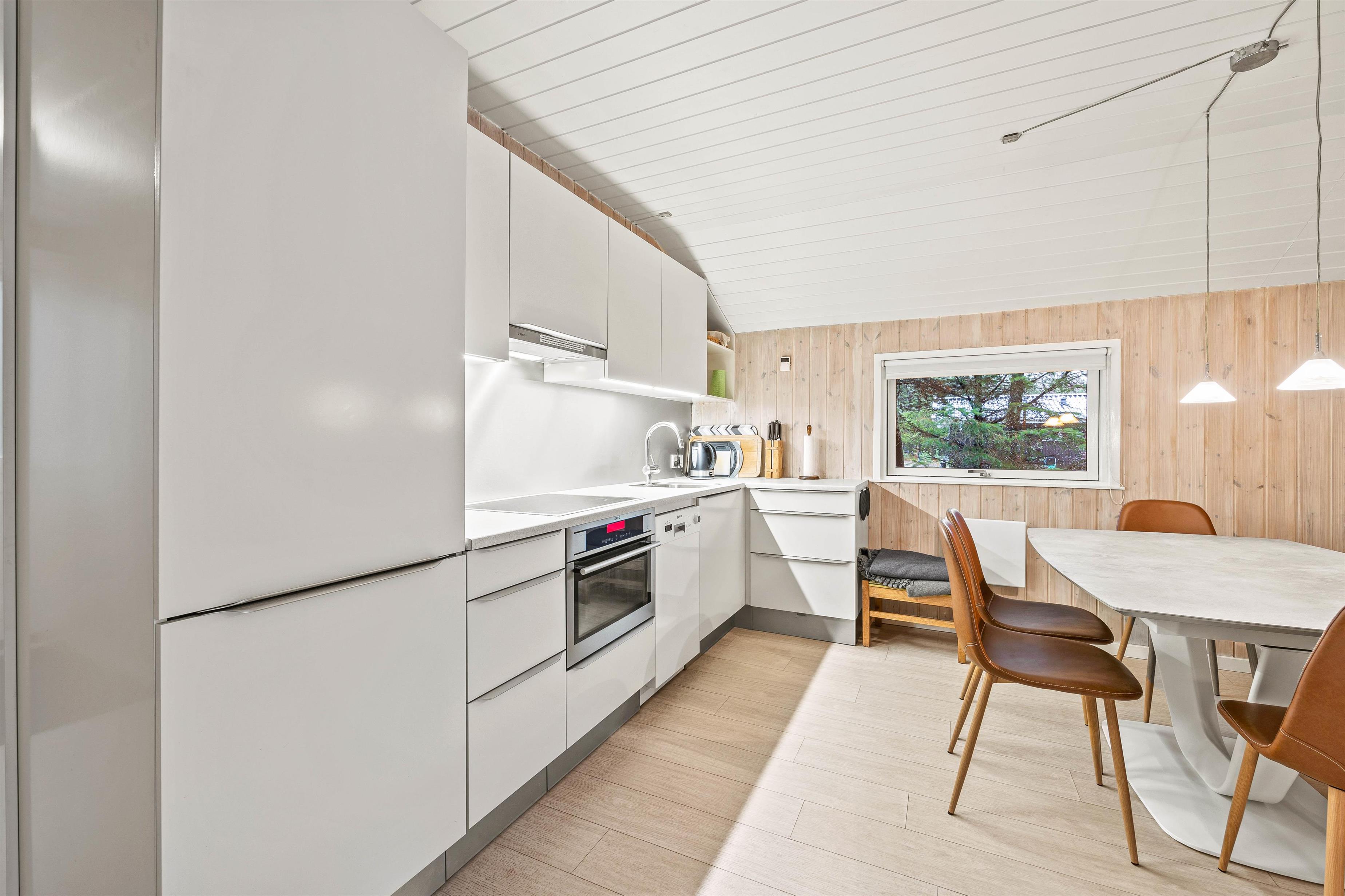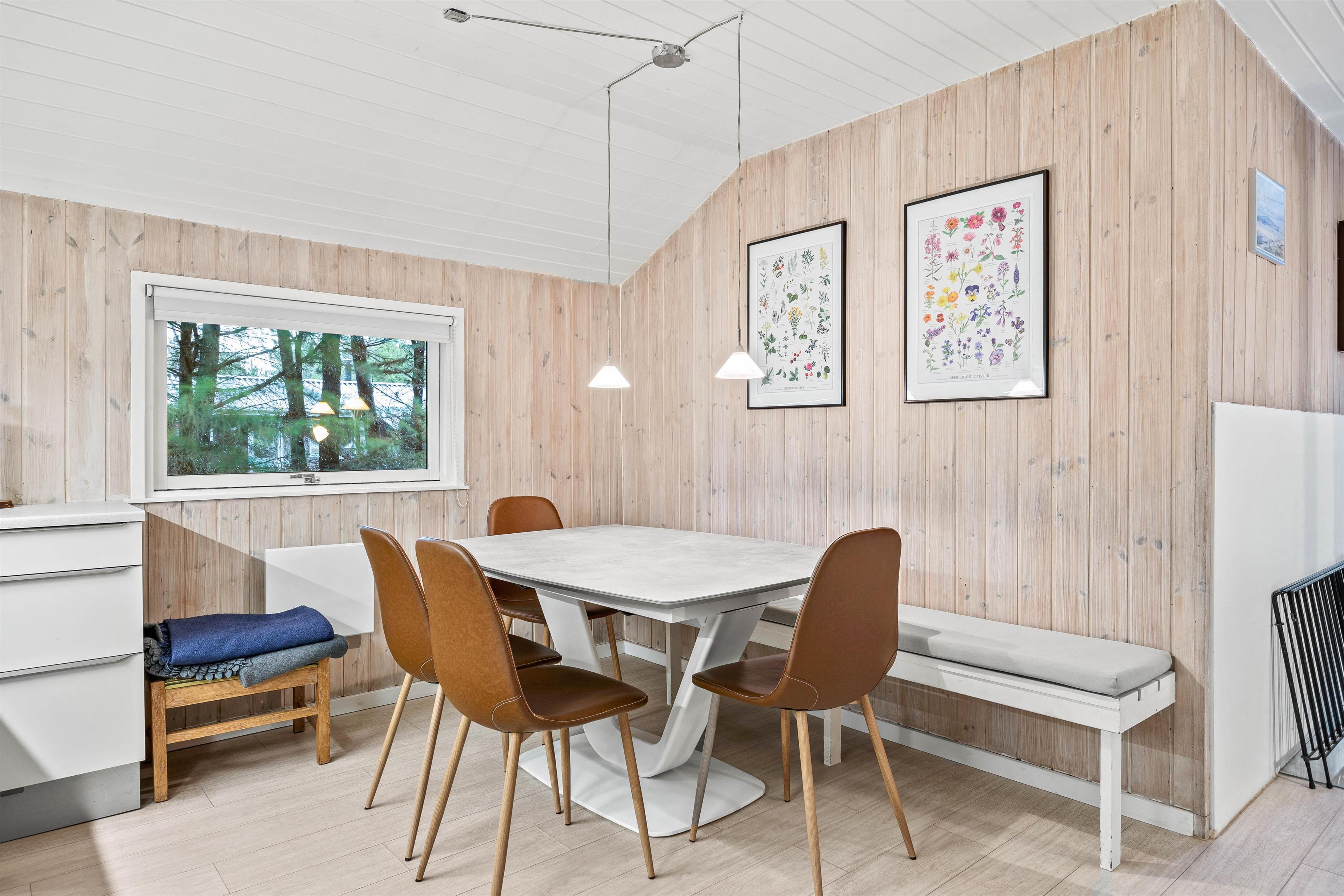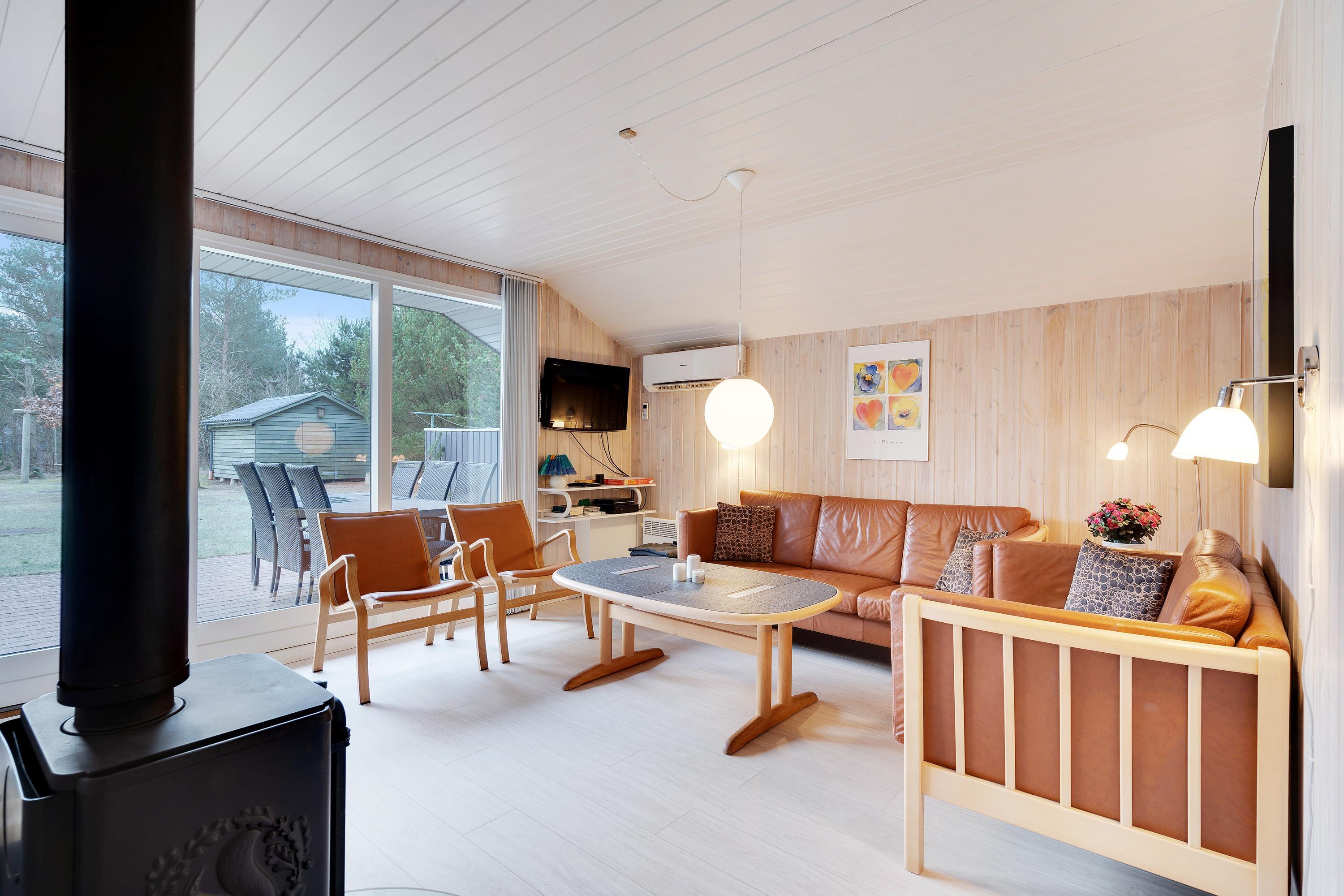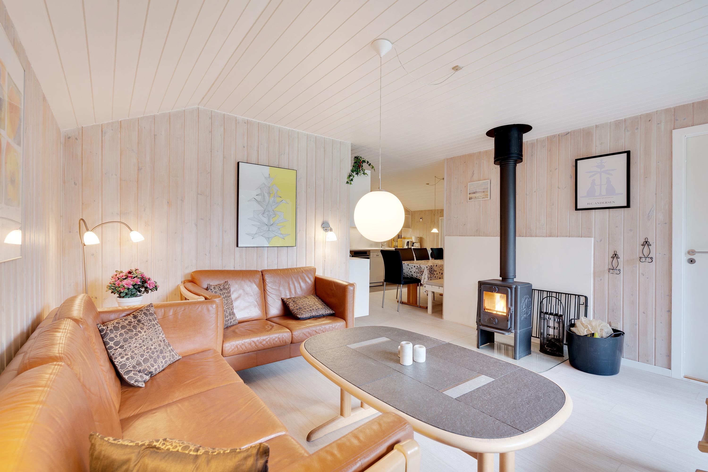 På Kirkeflod 5 er der tænkt på alle. Til børnefamilien er der både tremmeseng, højstol, babykar og pusleplads. Huset bliver opvarmet med en energisparende luft til luft varmepumpe, men vil man rigtig hygge, kan man tænde op i husets brændeovn, som står centralt mellem stue og spisehjørnet.