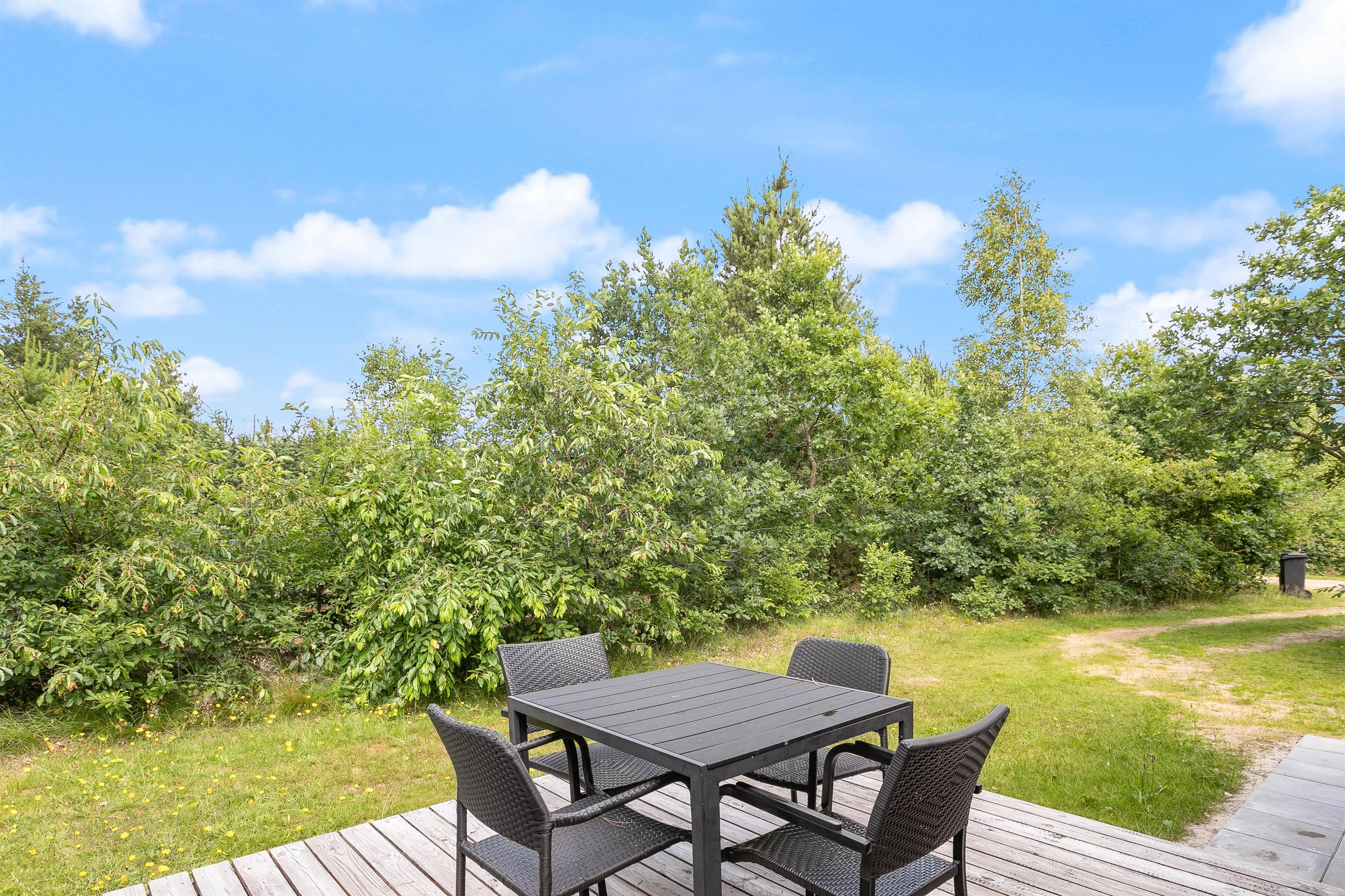 Fra køkkenet går turen ud på den hyggelige morgenterrasse, og derudover har I også en stor, åben terrasse, hvor I rigtig kan smide benene op og nyde dagen og feriefreden i liggestolen.