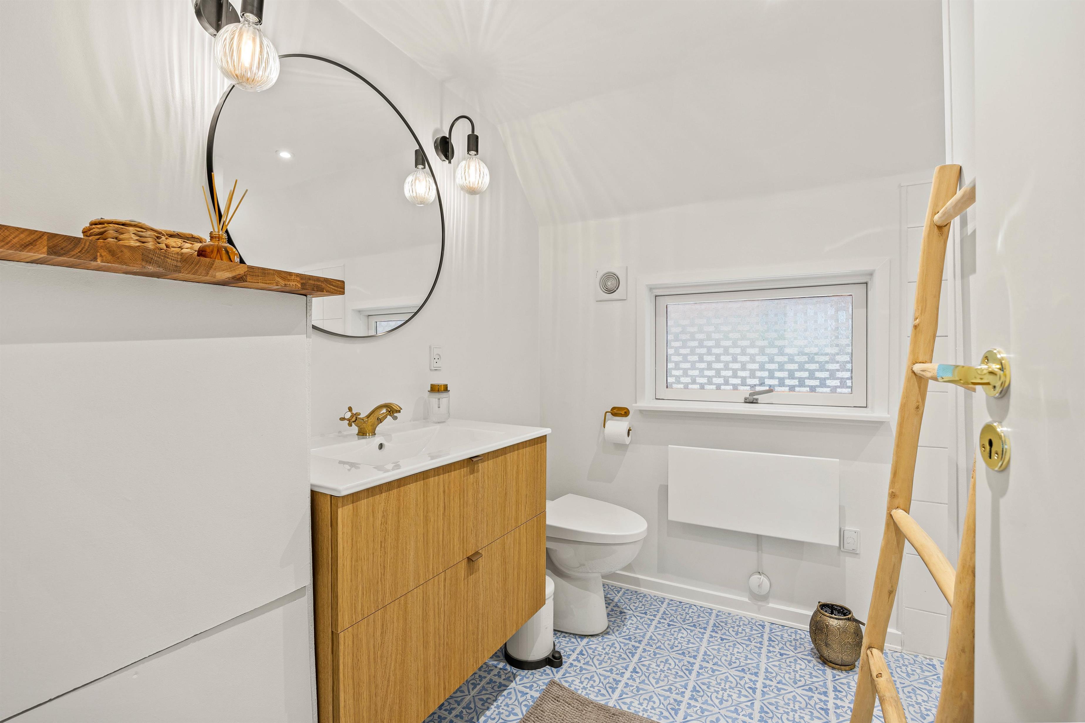 I stueetagen findes både 1 badeværelse og 1 gæstetoilet, hvilket gør det nemt og praktisk for alle at komme igennem morgenrutinerne. Praktiske goder som en effektiv vaskemaskine sikrer, at tøjet altid kan holdes friskt, hvilket gør sommerhuset ideelt til både kortere besøg og længere ophold, hvor komfort og bekvemmelighed er i høj kurs.