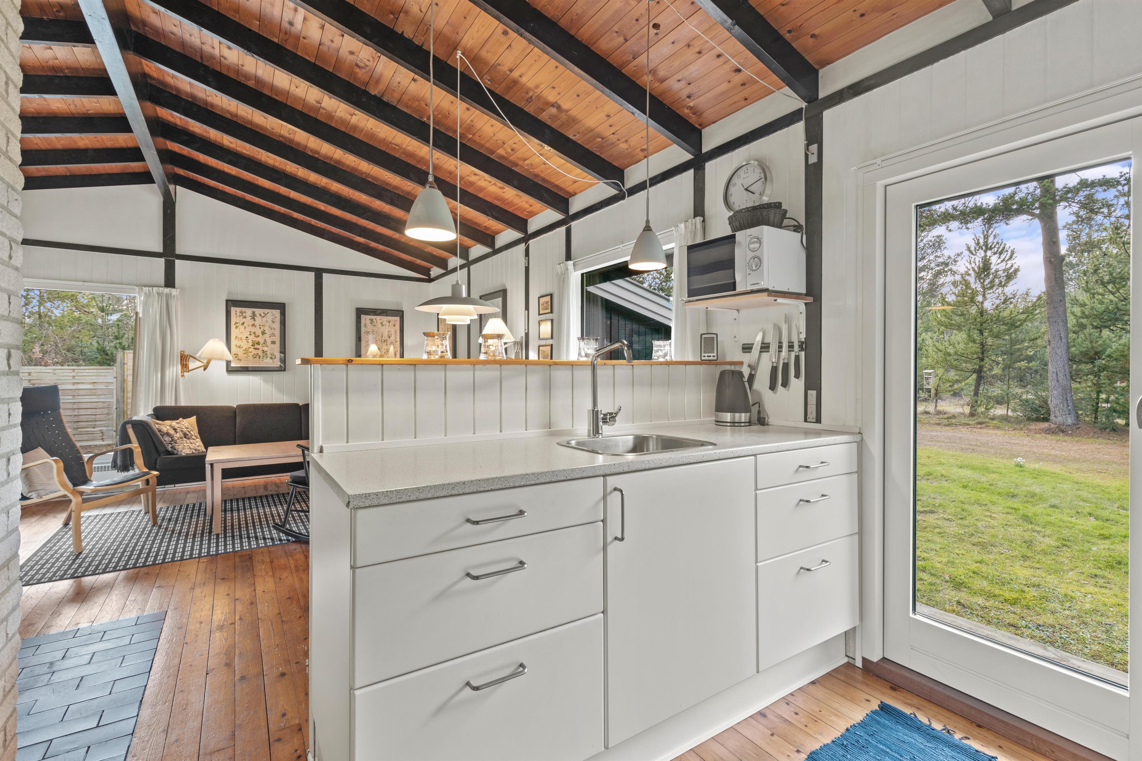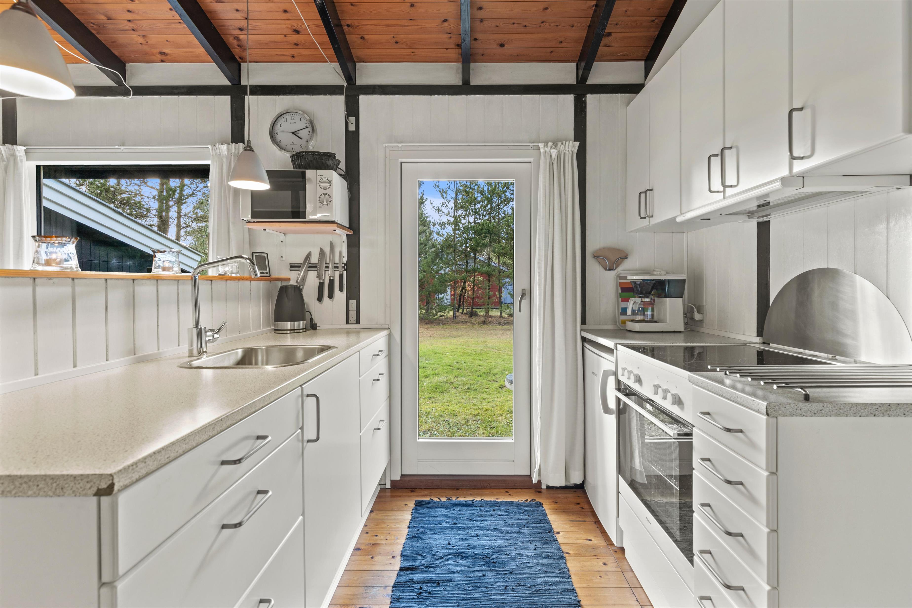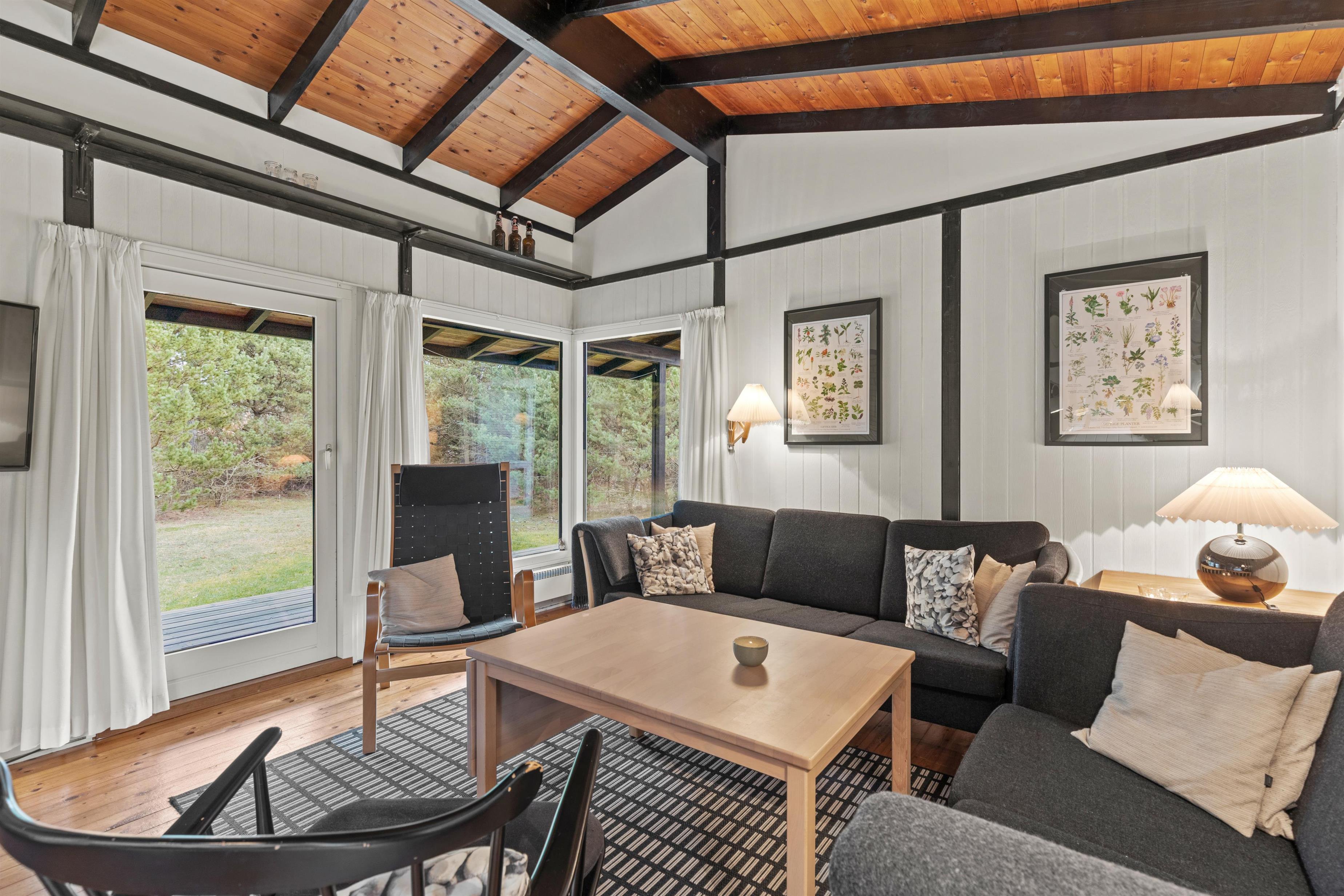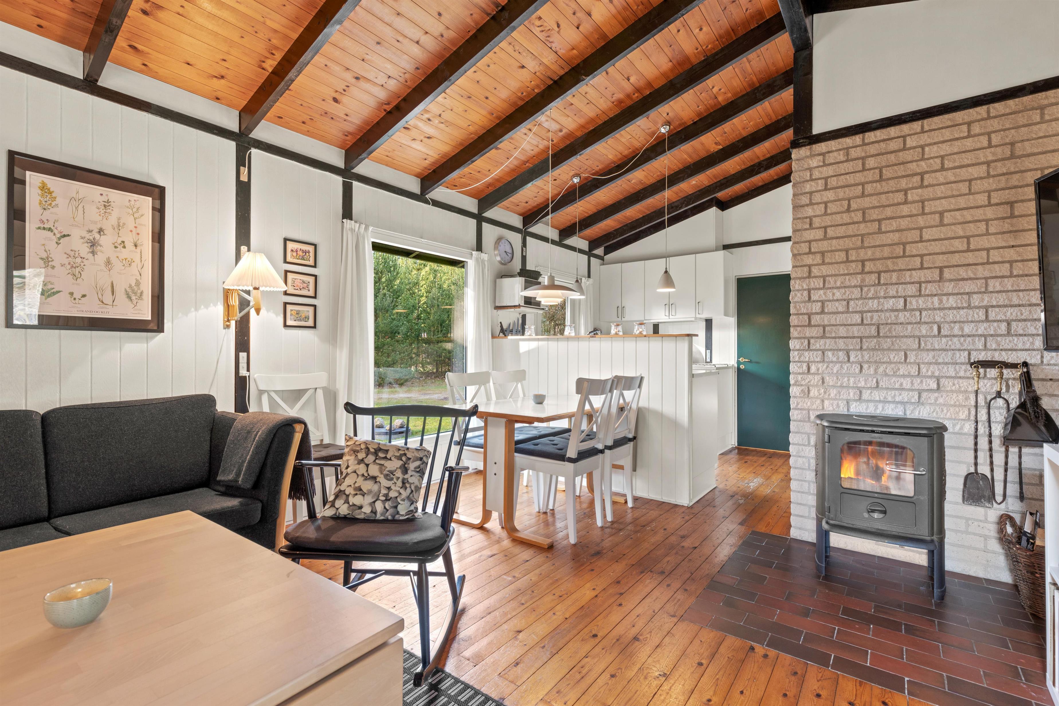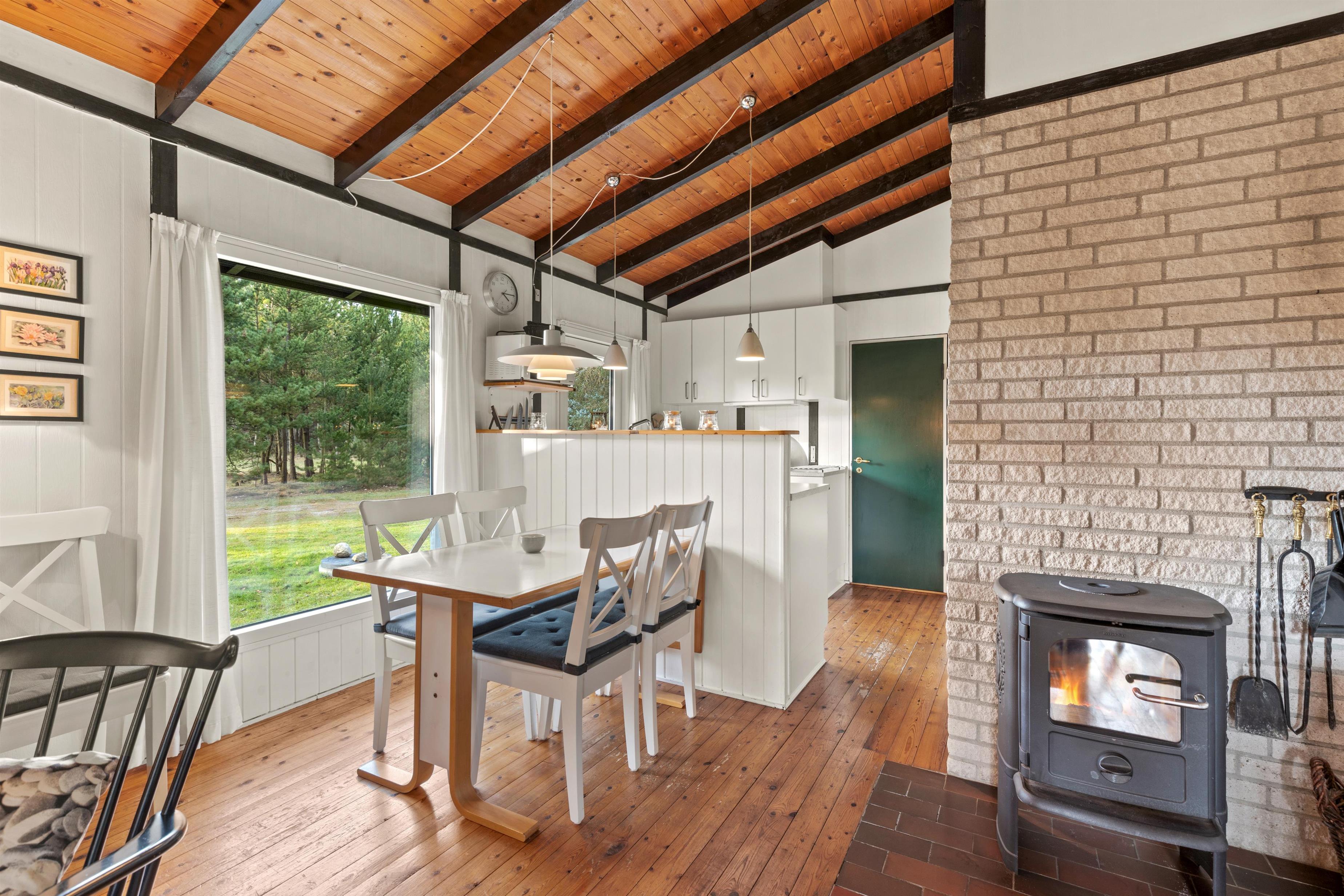 I det hyggelige opholdsrum, kombineret med spiseafdelingen, kan I slappe af på sofaen med en god bog og en varm kop kaffe, og på de kolde feriedage vil brændeovnen sørge for at sprede masser af varme og feriestemning. Træd væk fra den travle verden online og nyd øjeblikke af stilhed og nærvær uden netforbindelse i sommerhuset.