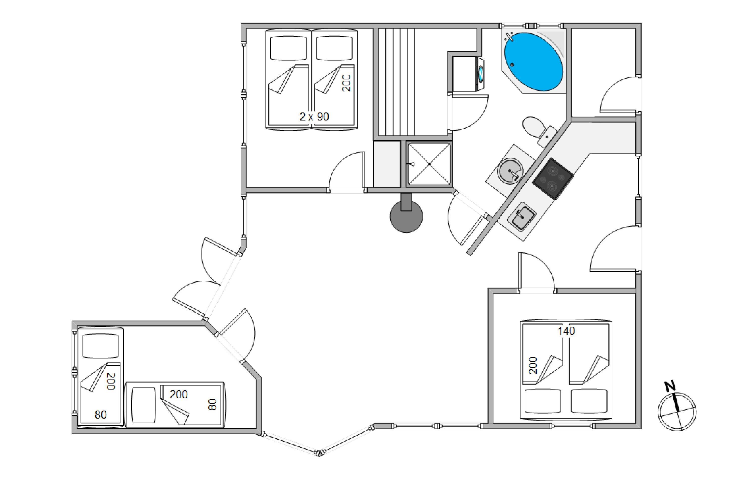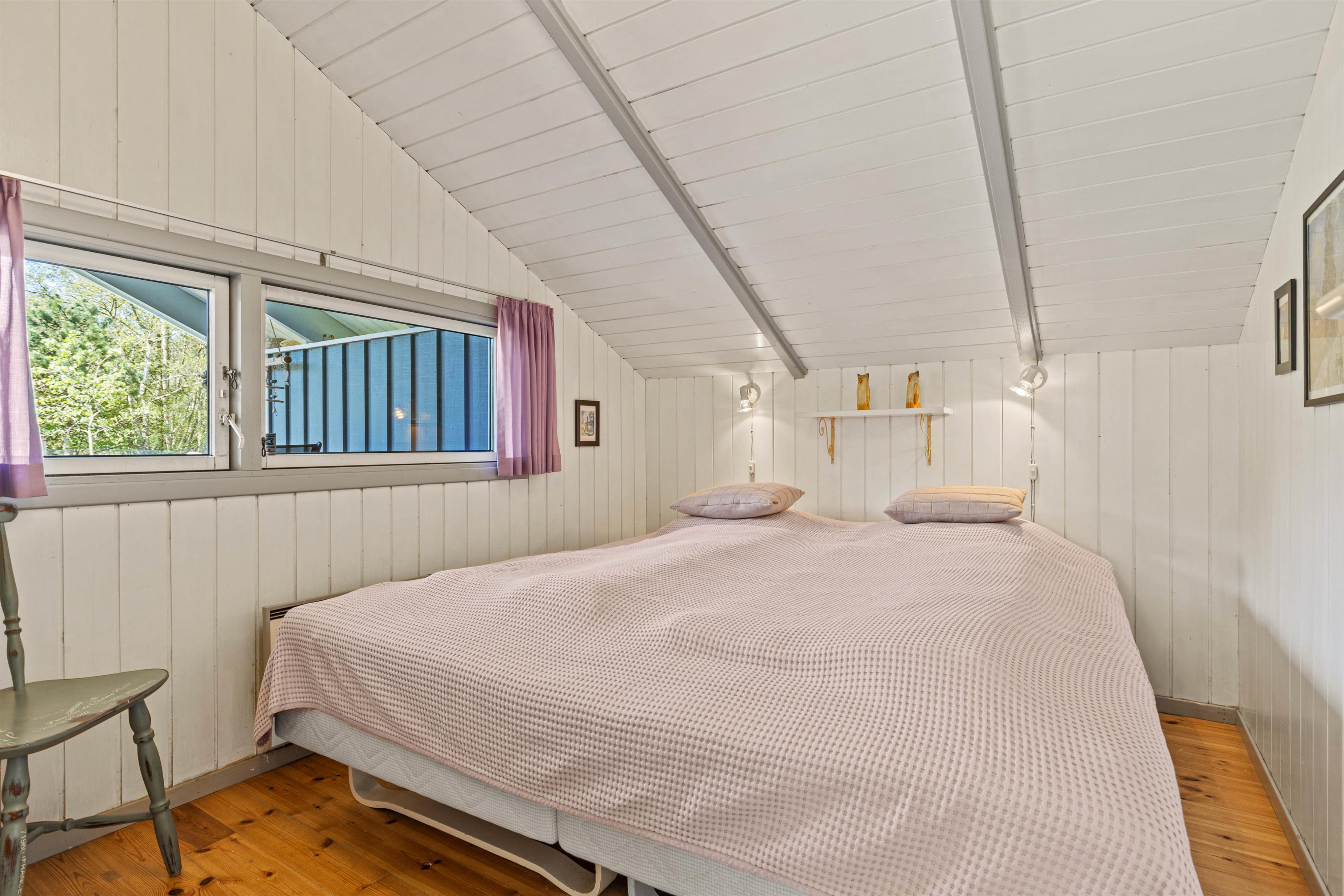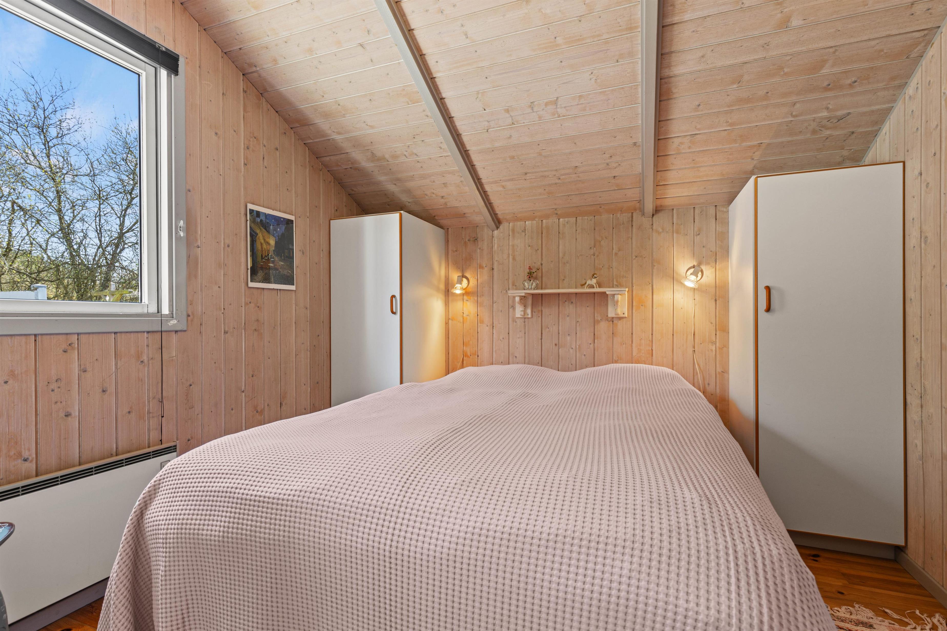På Skovvang 22 har I 3 soveværelser, 2 med dobbeltsenge og et med 2 enkeltsenge. Badeværelset, der har gulvvarme er indrettet med både spa og sauna, desuden har I her mulighed for tøjvask i husets vaskemaskine.