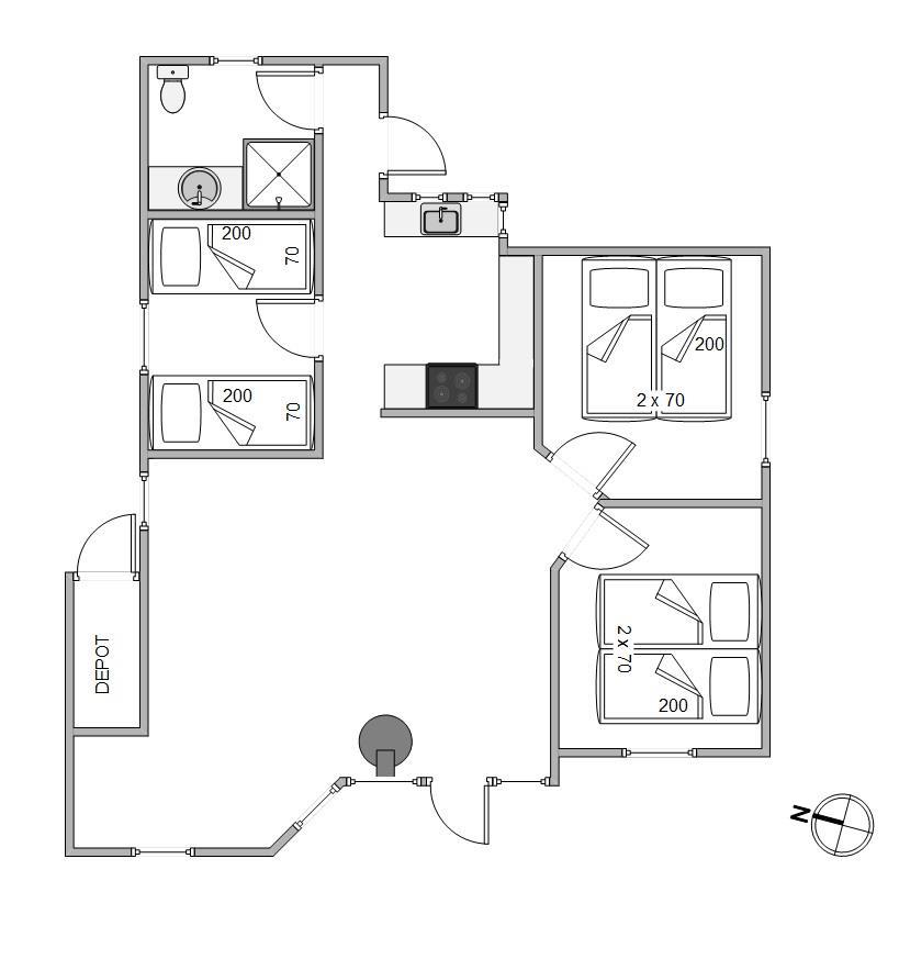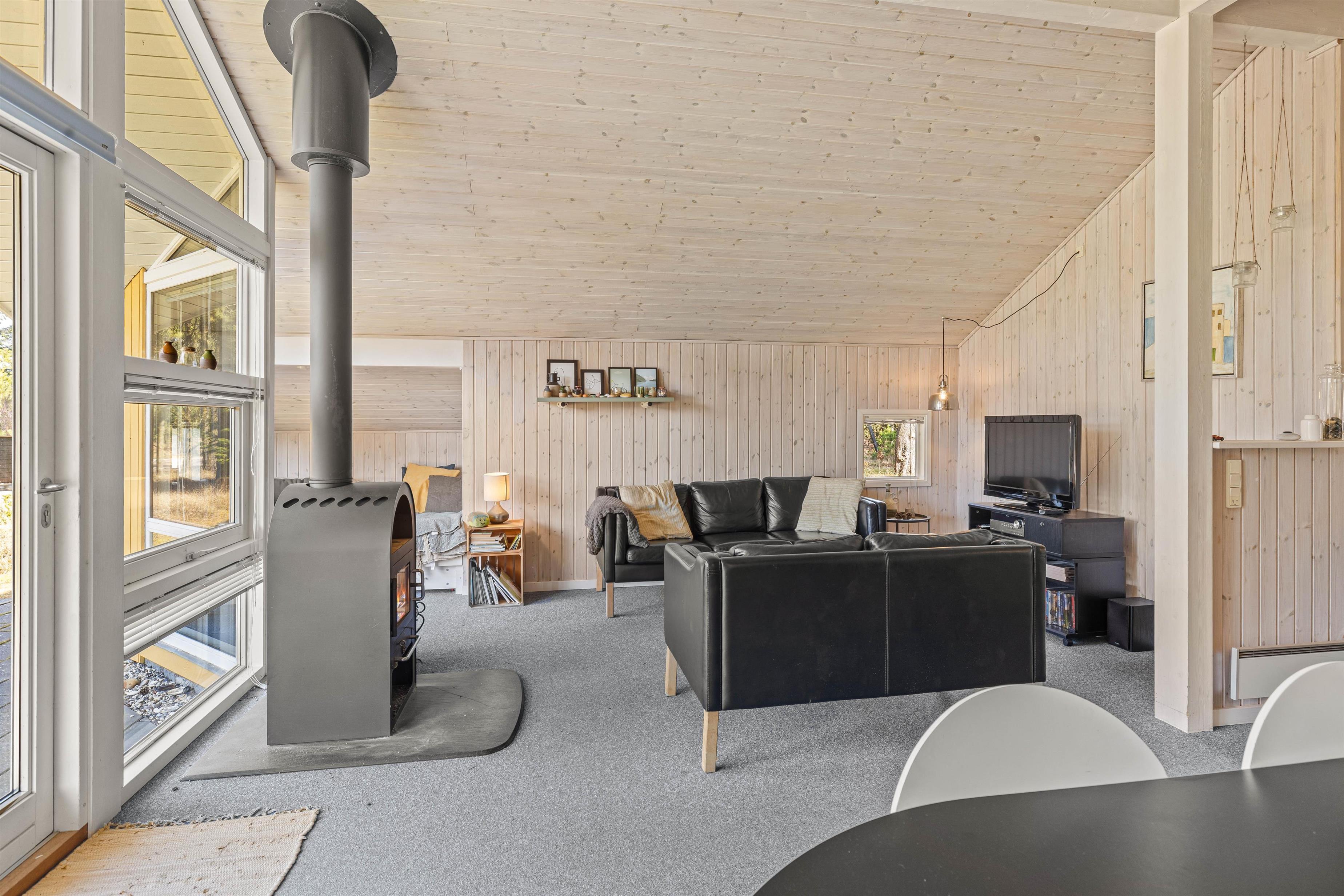 Her er plads til 6 personer med sovepladser fordelt på 3 fine soveværelser, der alle er personligt og hyggeligt indrettet. Sommerhusets hjerte er den velindrettede stue, der er kombineret med spiseafdeling og det halvåbne køkken. Her finder I også den klassiske brændeovn, som sørger for både varme og masser af feriestemning i de kølige årstider. Nyd roen og slap af i sommerhuset, hvor du kan læne dig tilbage med en god bog og virkelig koble af. Sluk telefonen og oplev den ægte hygge og afslapning med en helt uforstyrret ferie, fri for internettets distraktioner.