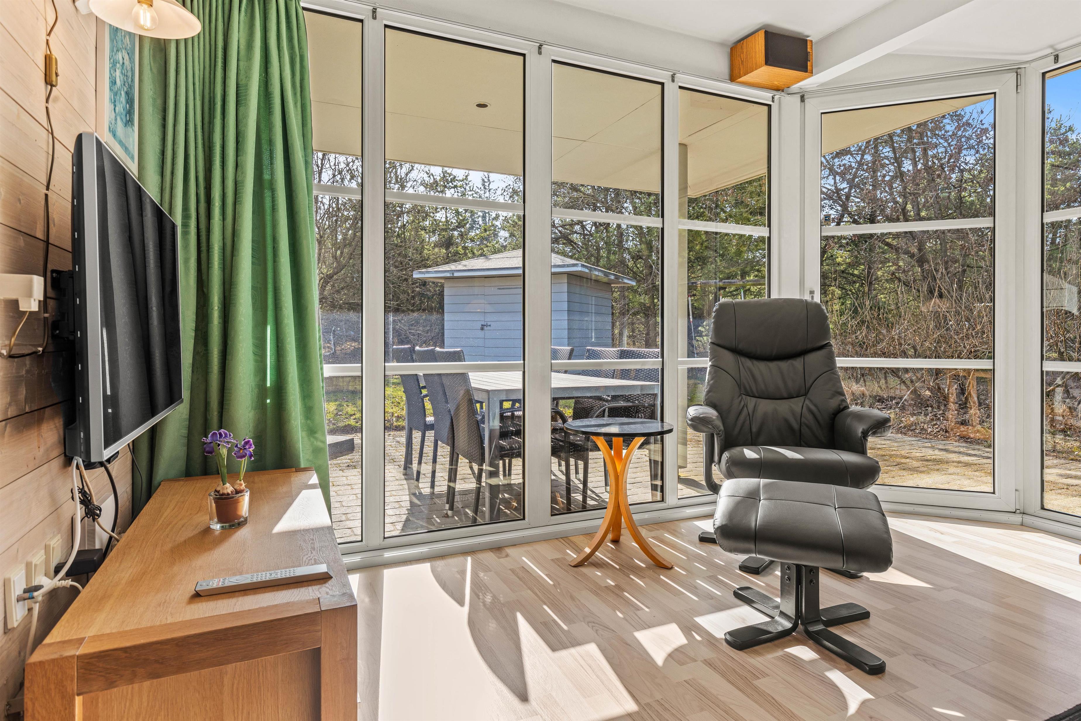 På den store grund, som er omgivet af træer, er der masser af plads til, at både hunden og børnene kan tumle og lege. Til de yngste feriegæster er der sat en gynge og en sandkasse op, så de nemt kan få tiden til at gå, mens I slapper af i solen.