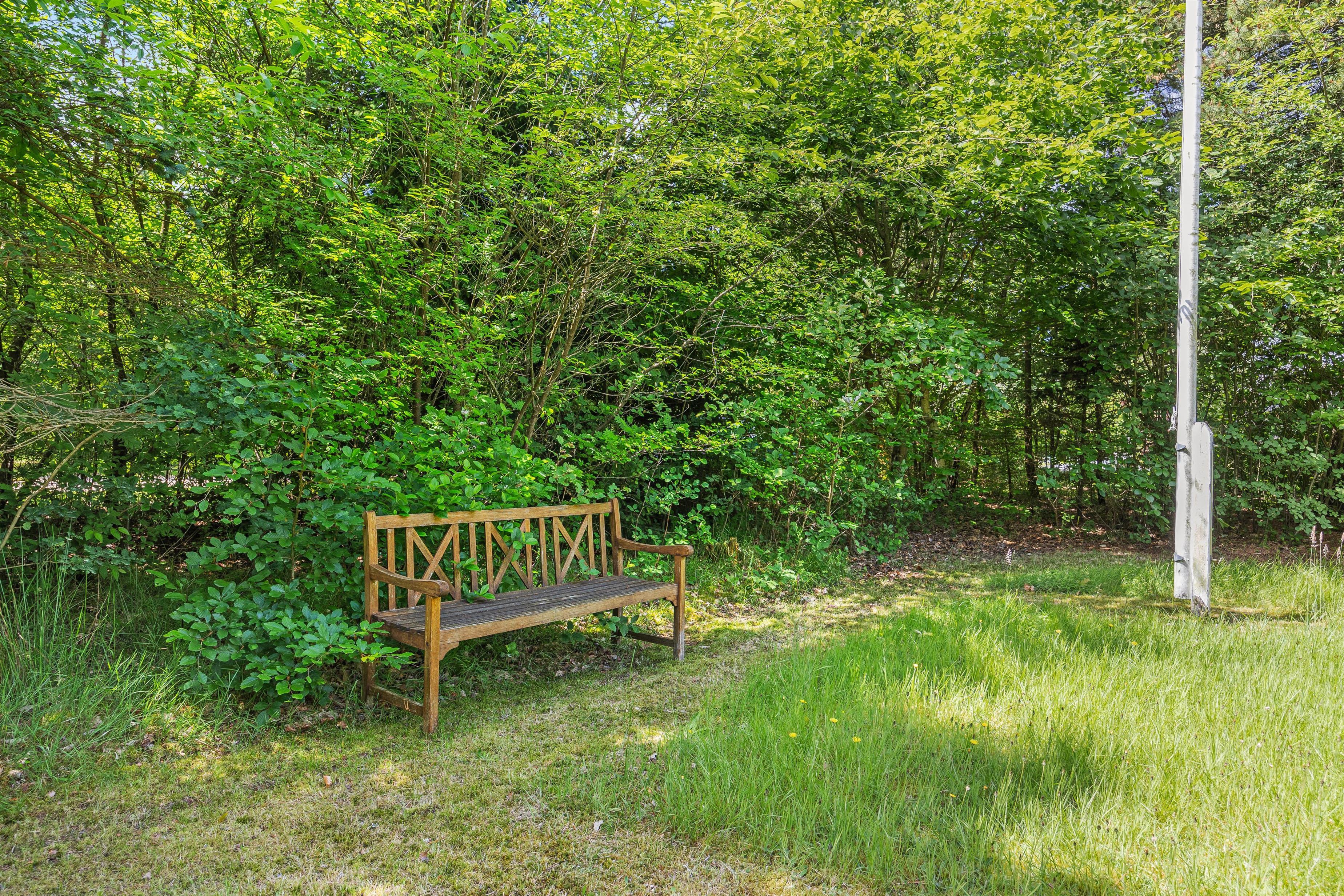 Sommerhusets udeareal er helt ideelt til hyggelige timer med familien. Naturgrunden er omgivet af buske og træer, og her finder I mange gode kroge, hvor I kan samles. Terrassen er delvist overdækket, og her står havemøbler, liggestole og grill klar til jer.