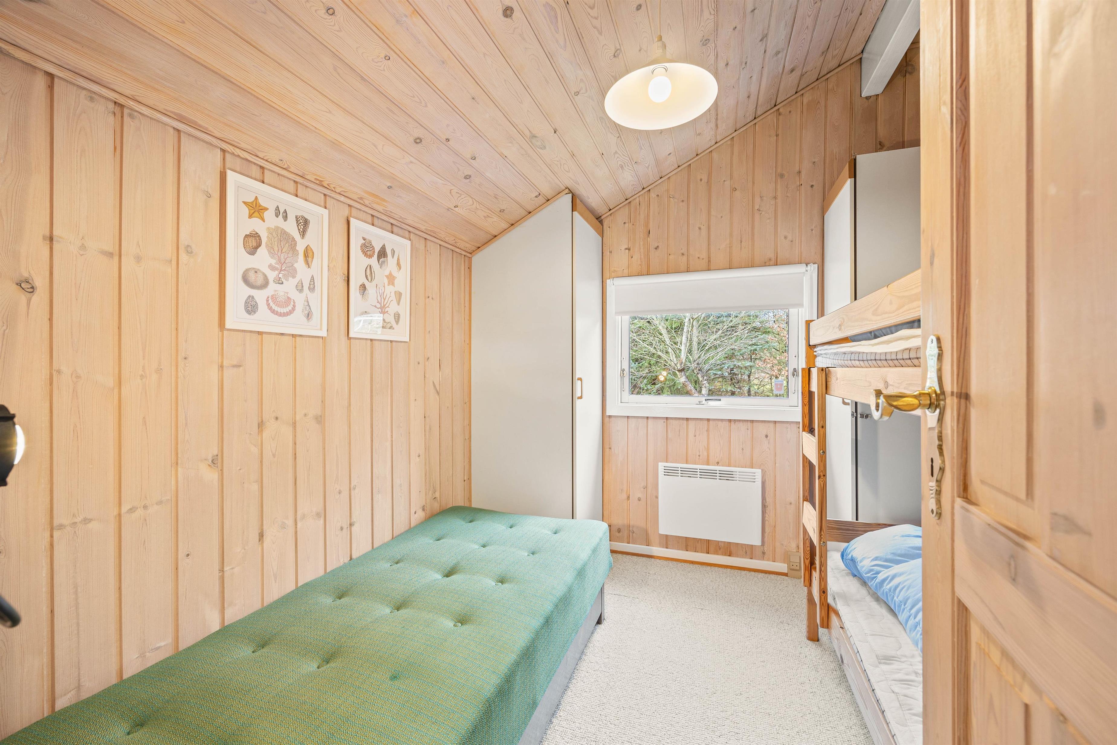 De 6 sovepladser er fordelt på 3 gode værelser, hvoraf det ene er indrettet med køjeseng – et hit blandt børnene. De andre værelser er indrettet med dobbeltsenge til en god nats søvn.