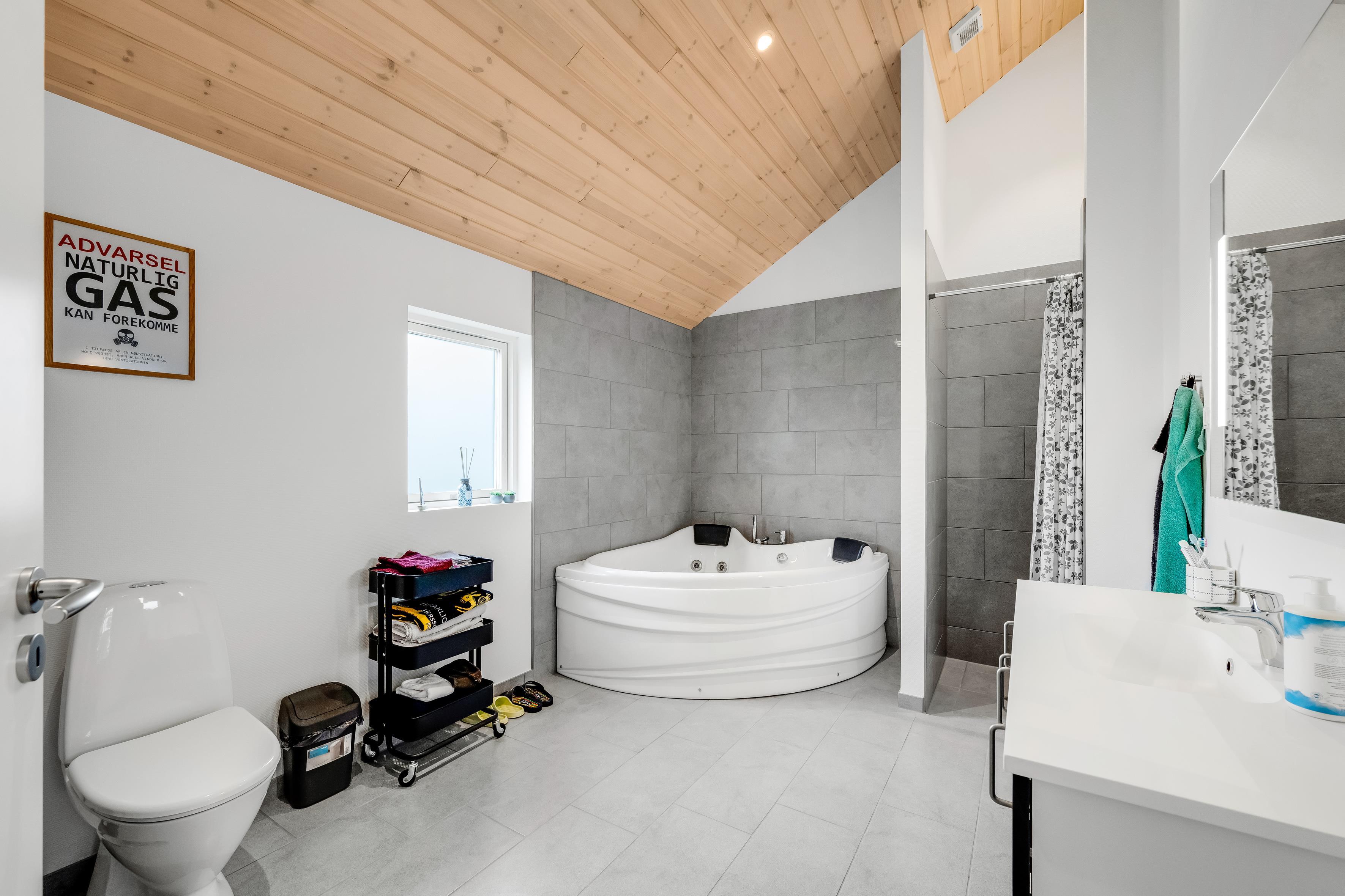 Der står også 2 velholdte badeværelser til rådighed, hvoraf det ene har et afslappende spabad. Her har I mulighed for at lægge hverdagens stress bag jer. Vaskemaskine og tørretumbler fuldender udstyret. De 3 soveværelser, alle med komfortable dobbeltsenge, indbyder til afslappende nætter.