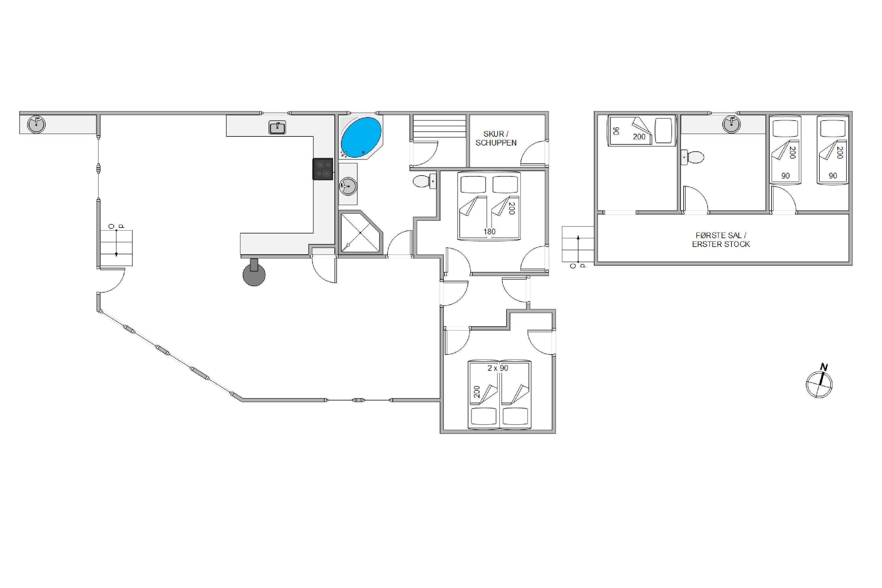Sommerhuset er 119 kvadratmeter stort fordelt på to planer, så der er masser af plads til hele familien. Du er også velkommen til at tage en eller to hunde med i dette hundevenlige sommerhus.