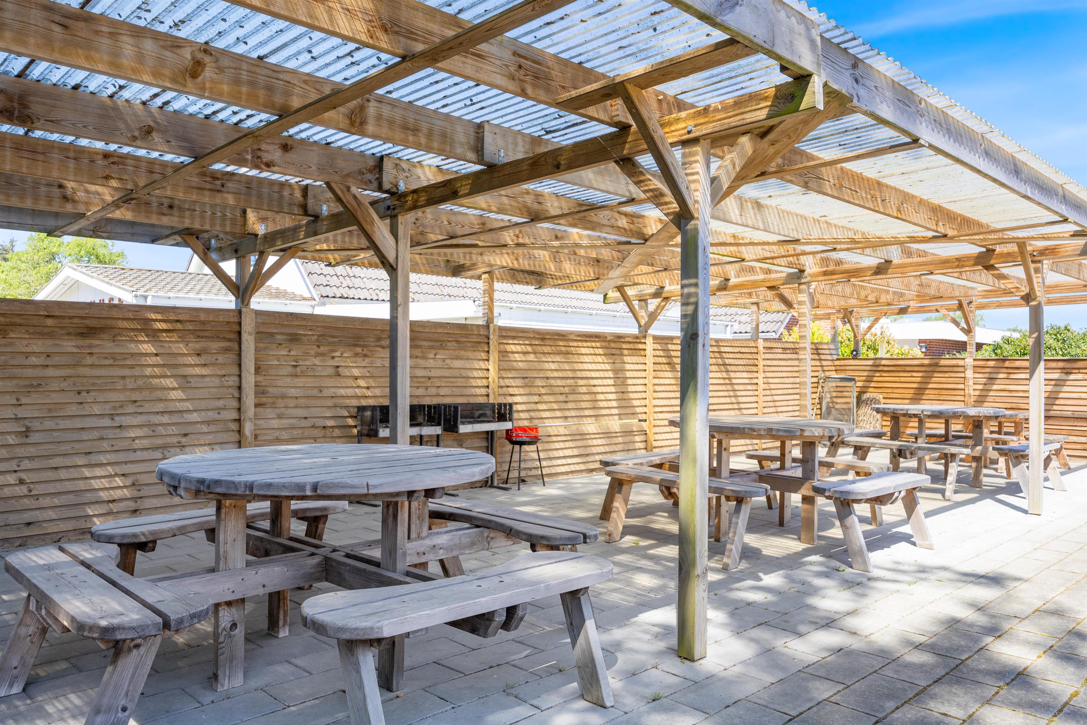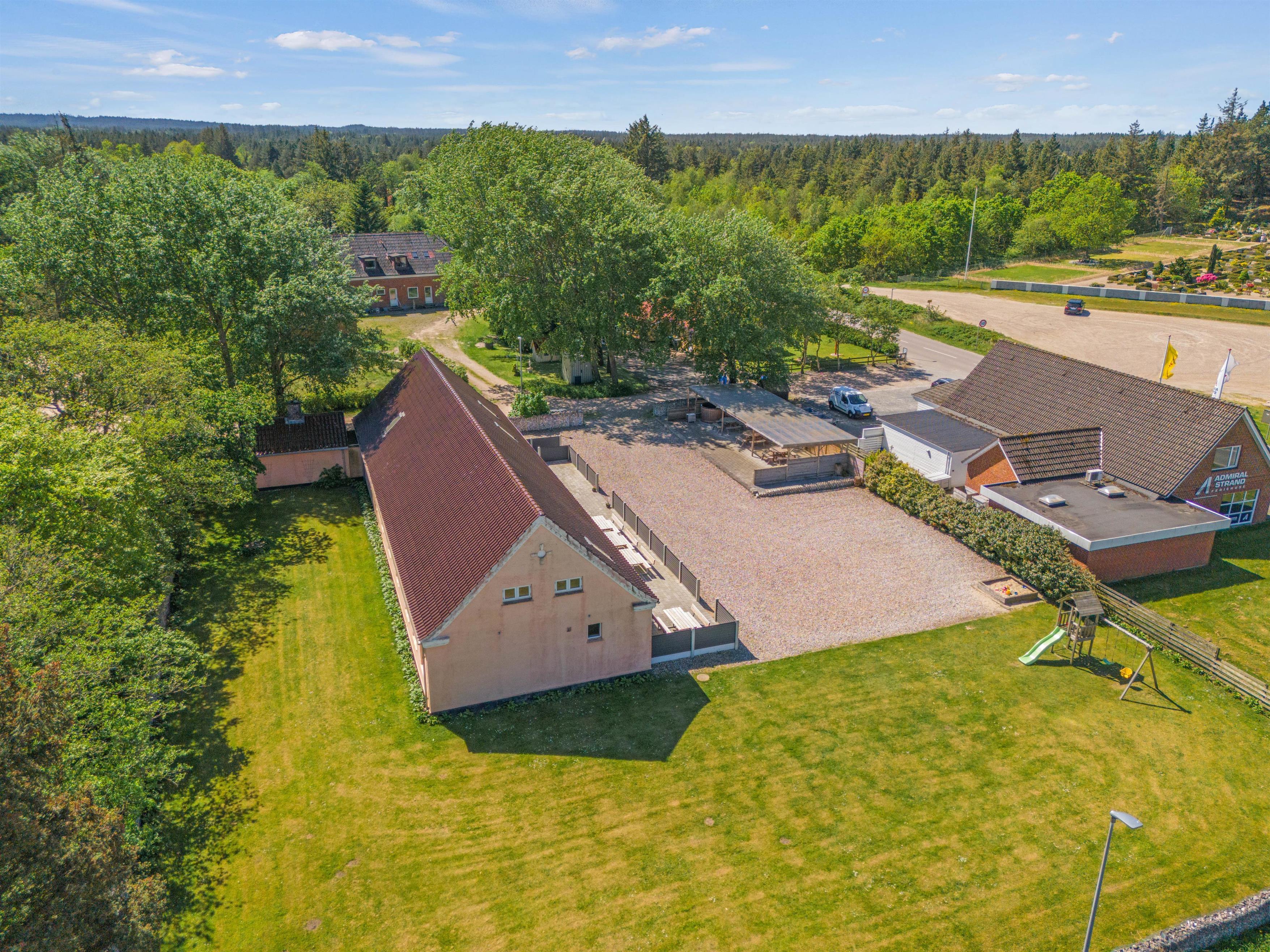 Udenfor finder I en overdækket terrasse, der er perfekt for udendørs madlavning og hyggelige aftener. Her er både grill og flere havemøbler, så I kan tilberede lækre måltider i det fri. Rundt omkring huset er der flere siddepladser, hvor I kan nyde morgenkaffen i solen og tage den smukke natur ind. Ekstra nydelse kan findes i feriehusets vildmarksbad, hvor op til 6 personer kan slappe af efter en dag fyldt med oplevelser.