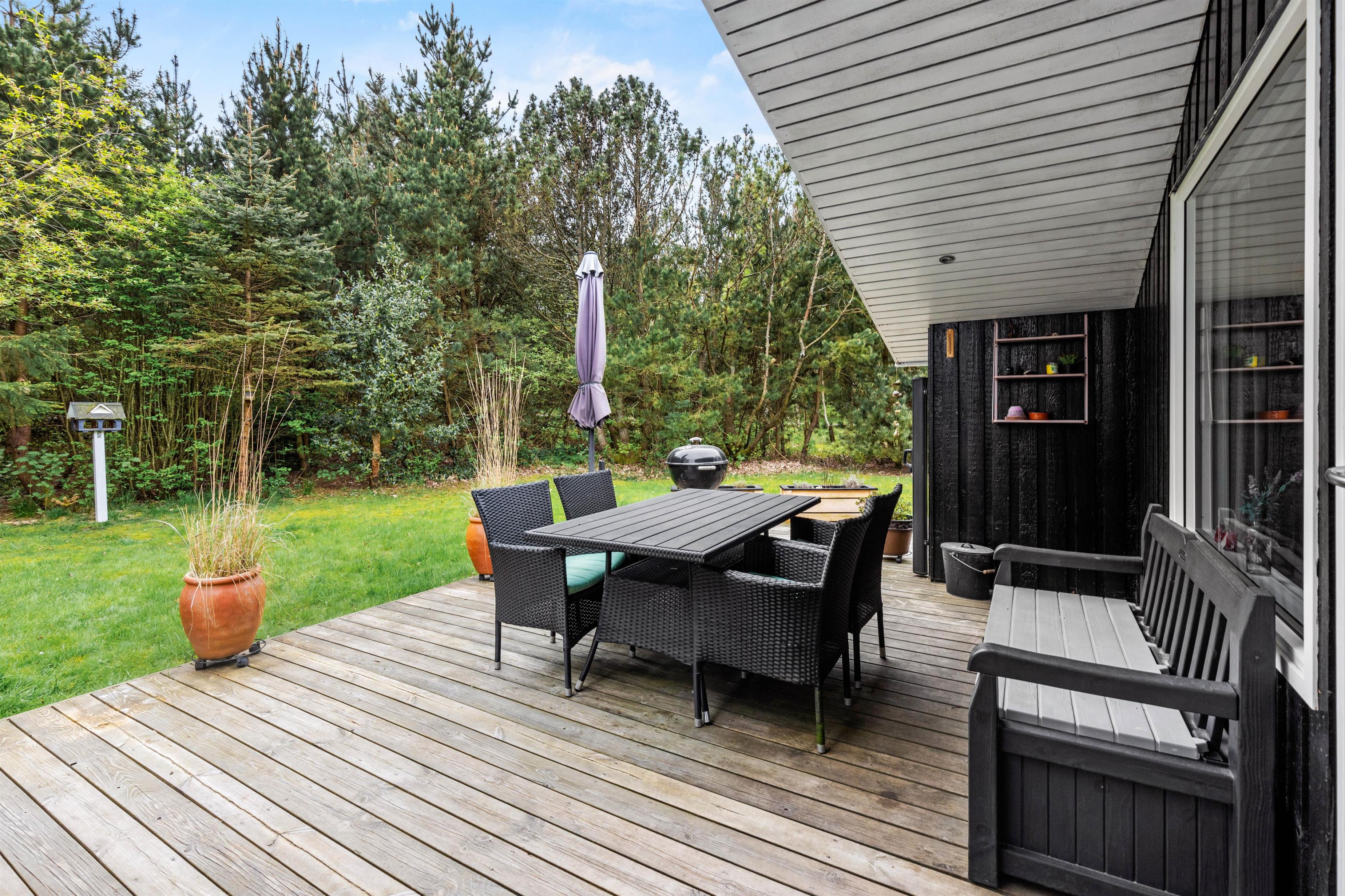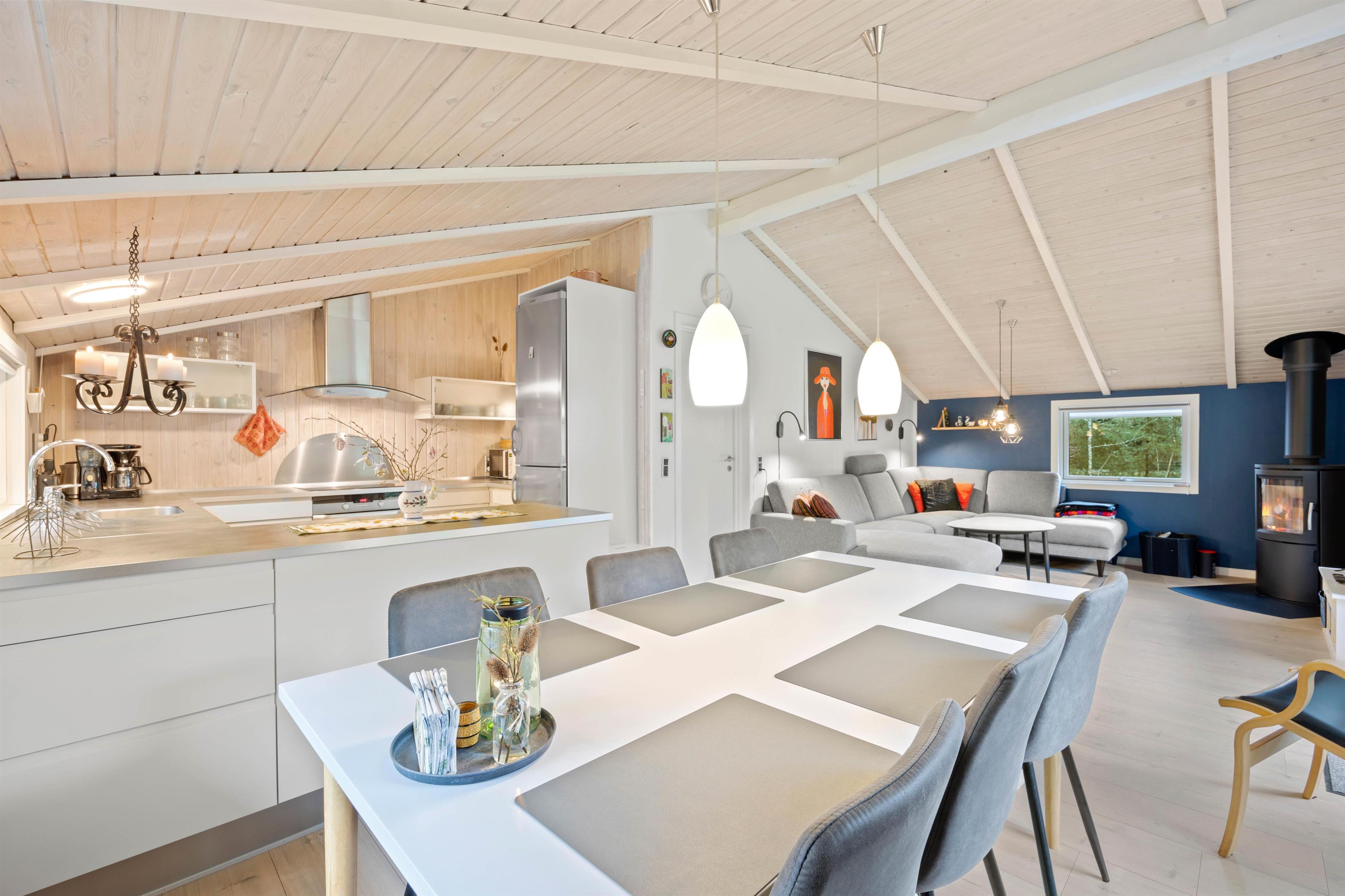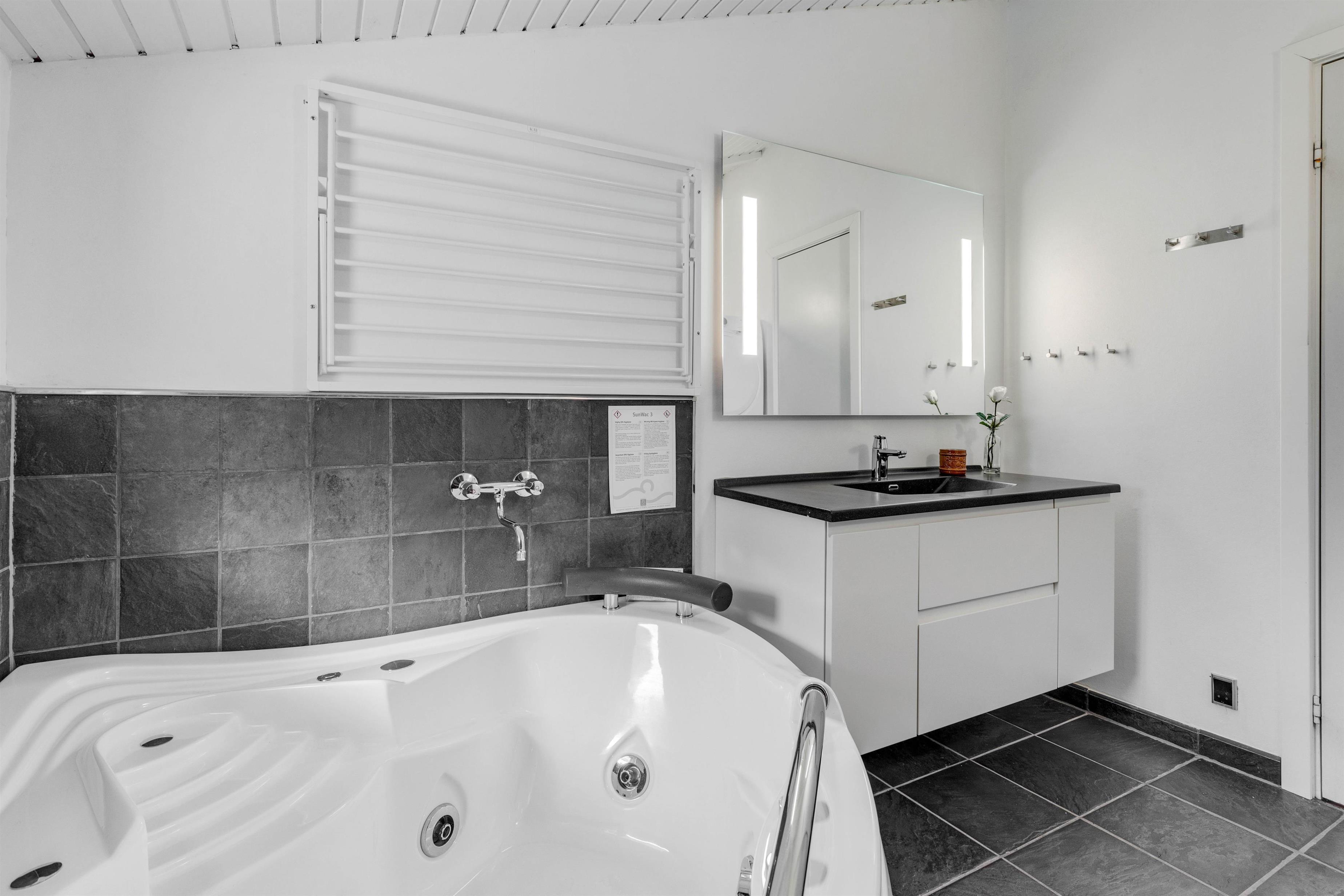Efter en frisk gåtur i Blåbjerg Plantage eller ved havet har I her muligheden for at tage på wellnessferie i det lækre badeværelse, hvor sauna og spa står klar til ægte afslapning eller I kan hygge med familien eller vennerne ved spisebordet med lidt god mad, tryllet i det moderne lyse køkken.