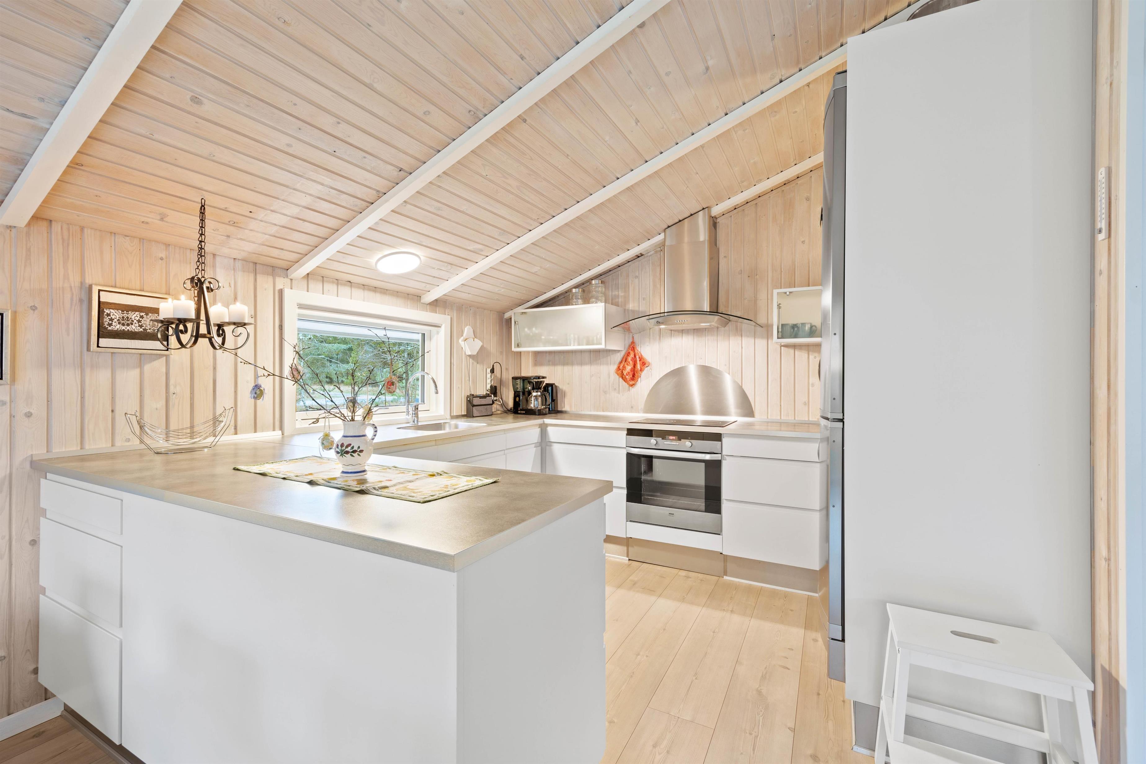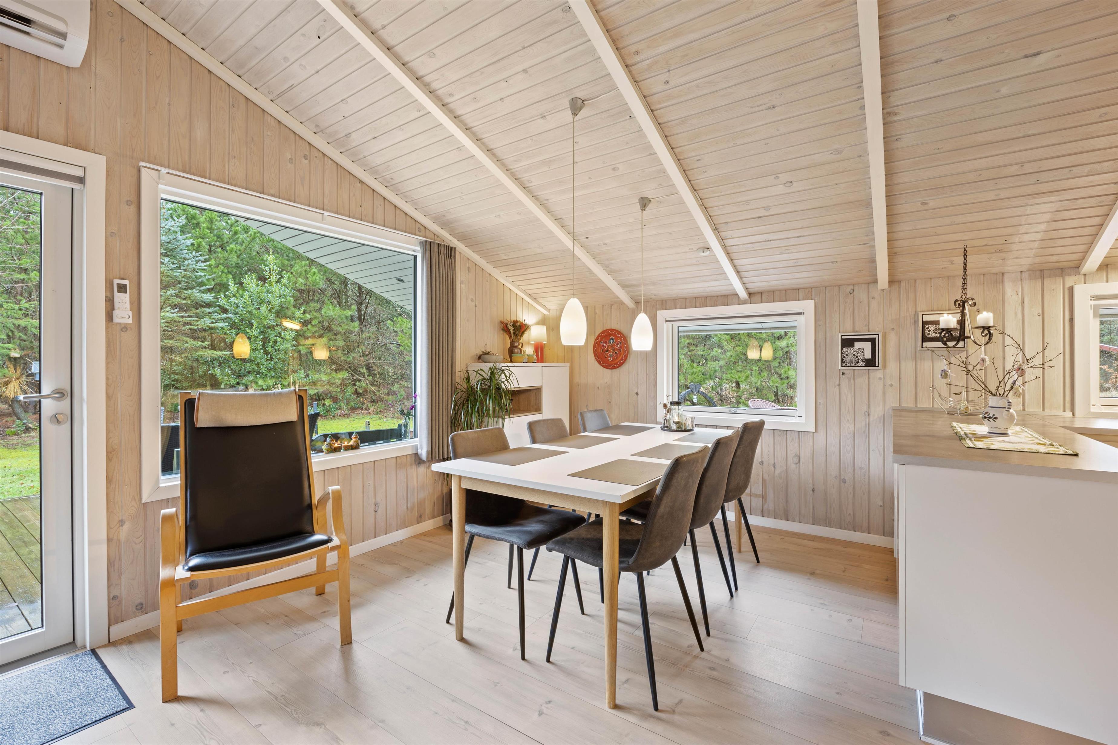 Vil I bo i et rigtig hyggeligt sommerhus og samtidigt ikke gå ned i udstyr, så er dette feriehus perfekt til jer. Her bor I midt i den skønne natur, i et dejligt hus med alle de vigtige hvidevarer som opvaskemaskine, vaskemaskine, tørretumbler og en energisparende varmepumpe.