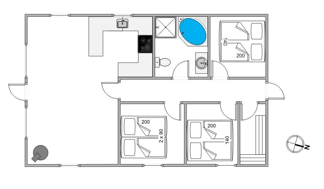 6 personer finder plads i huset, der er udstyret med alle vigtige ingredienser til en vellykket ferie med stor afslapningsfaktor.