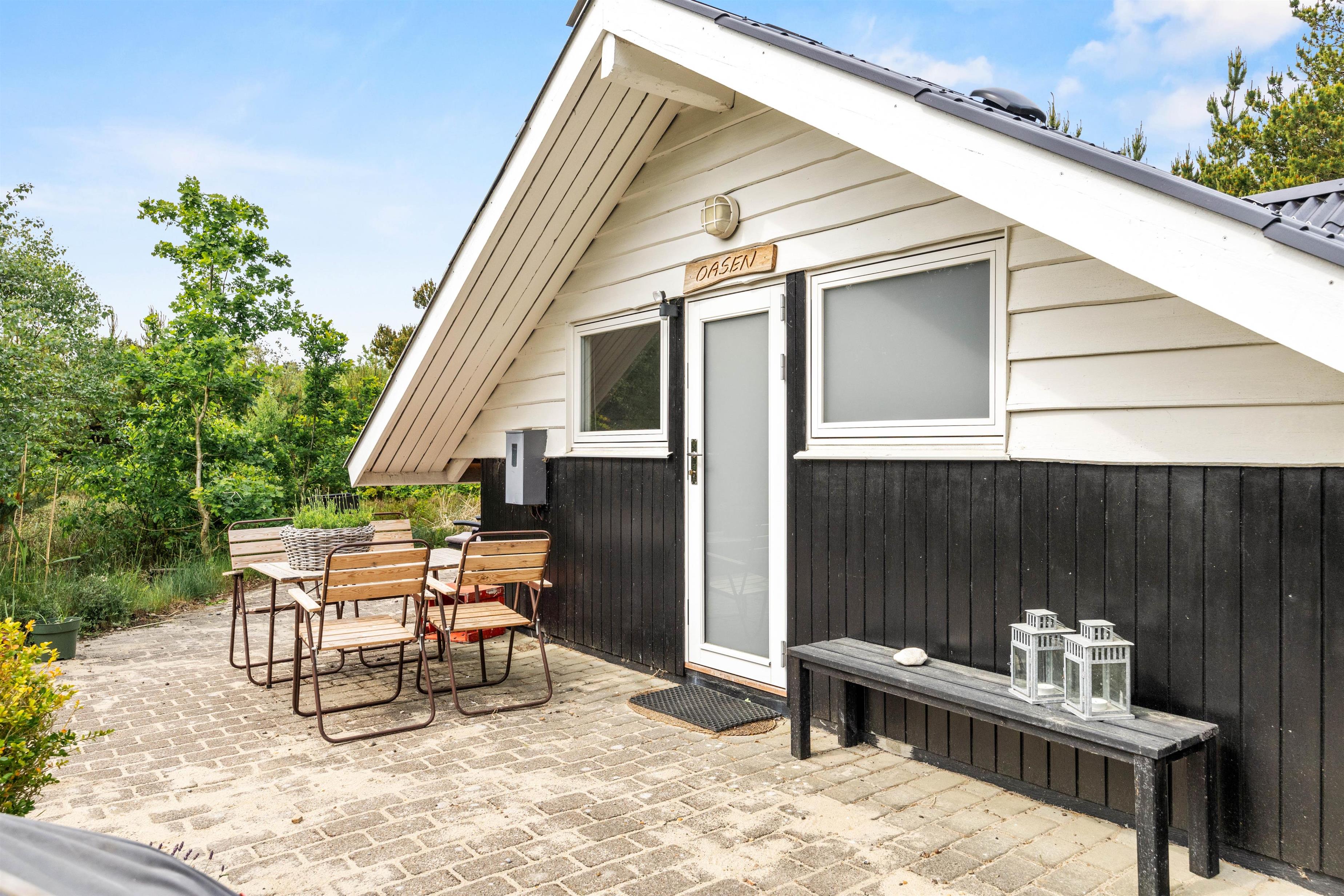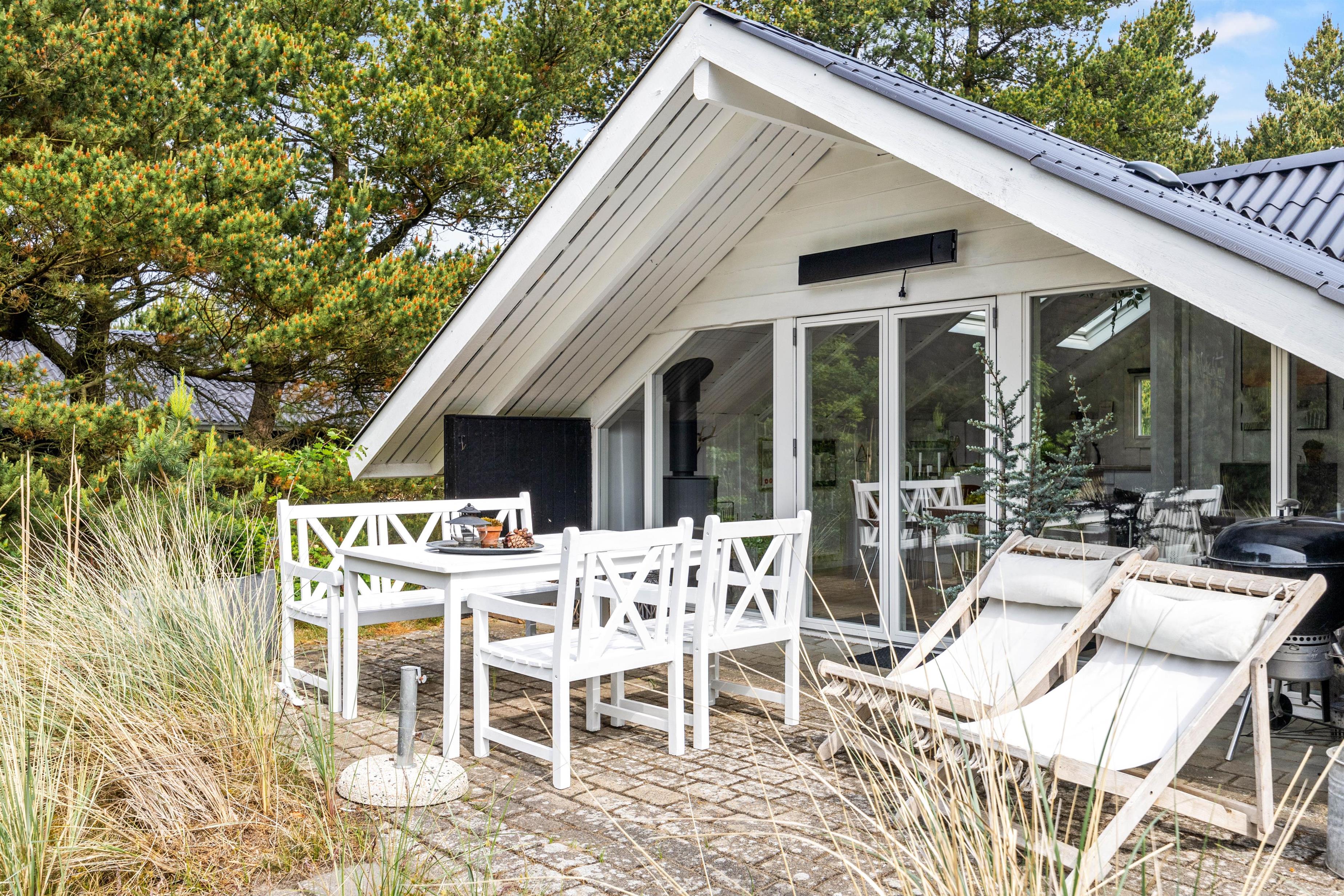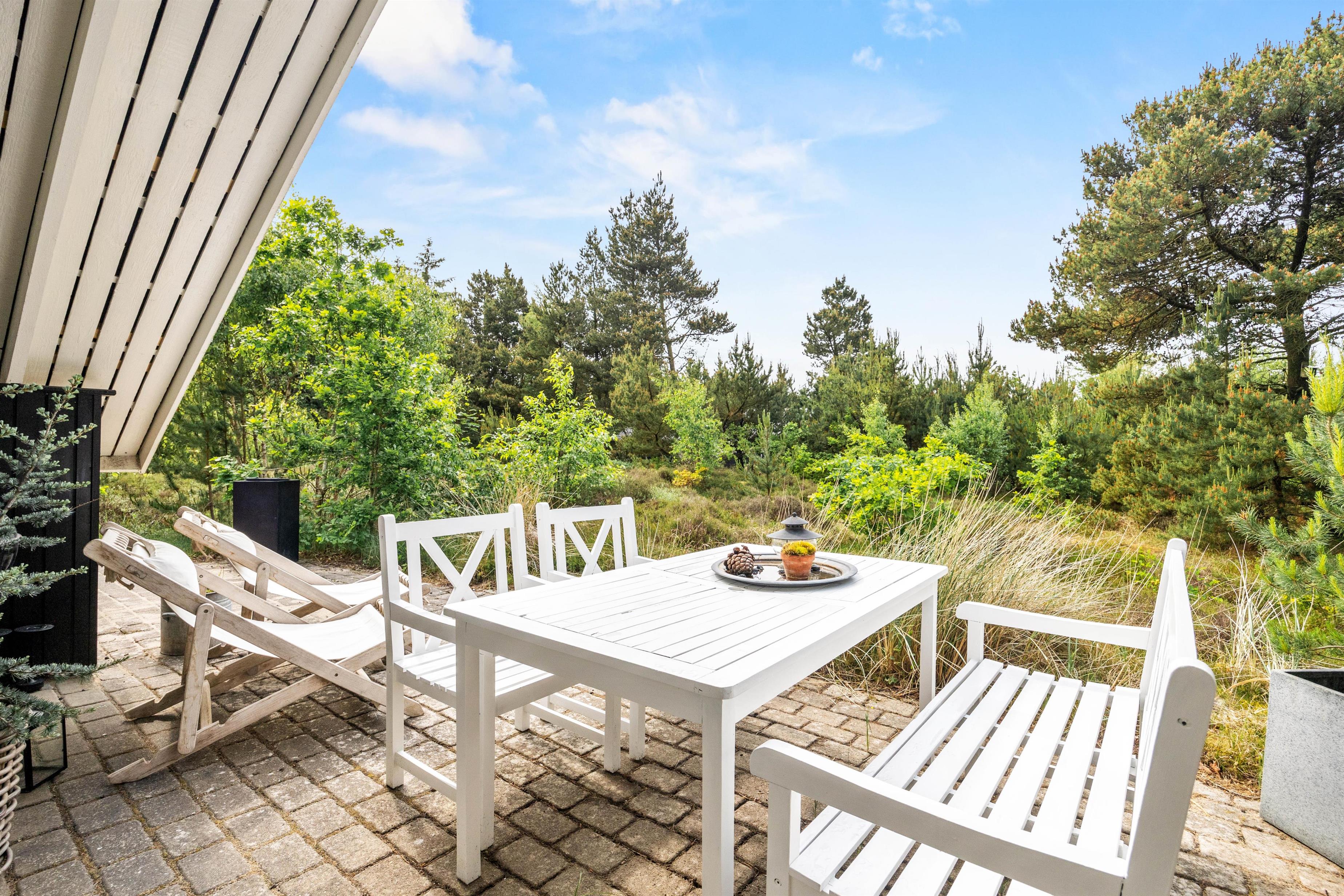 Den afskærmede terrasse er ideel til at nyde udendørslivet i fredelige omgivelser. Her kan I slappe af i komfortable havemøbler og tilbringe kvalitetstid sammen, uanset om det er med morgenkaffen eller en hyggelig middag tilberedt på grillen. Den store naturgrund giver frihed til leg og aktiviteter, hvilket især er skønt, hvis I rejser med børn. Naturen omkring sommerhuset skaber samtidig en rolig ramme for afslapning og giver jer mulighed for at nyde den friske luft og smukke omgivelser.