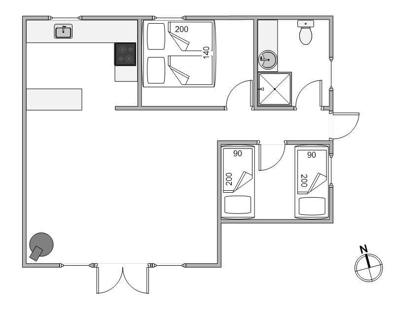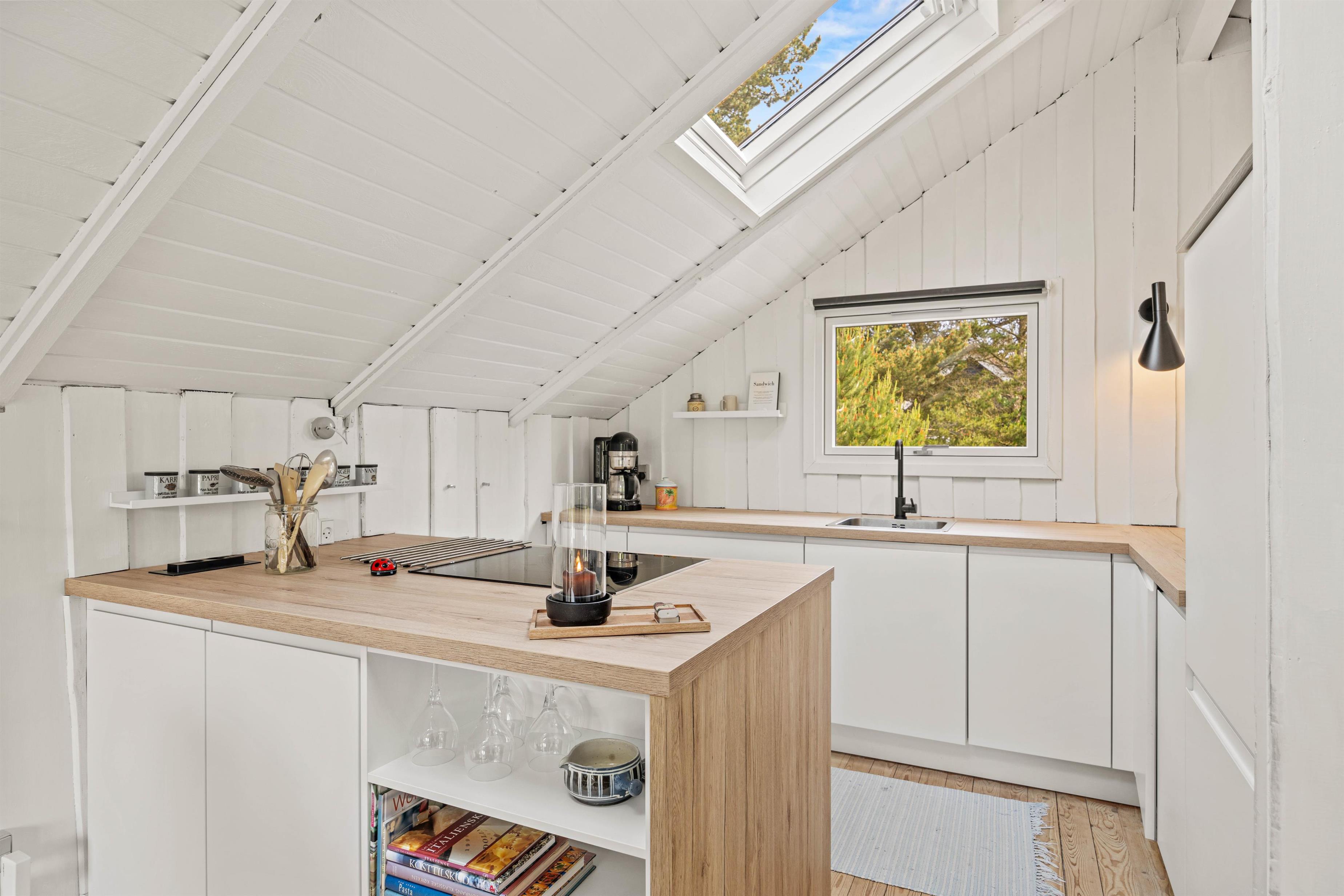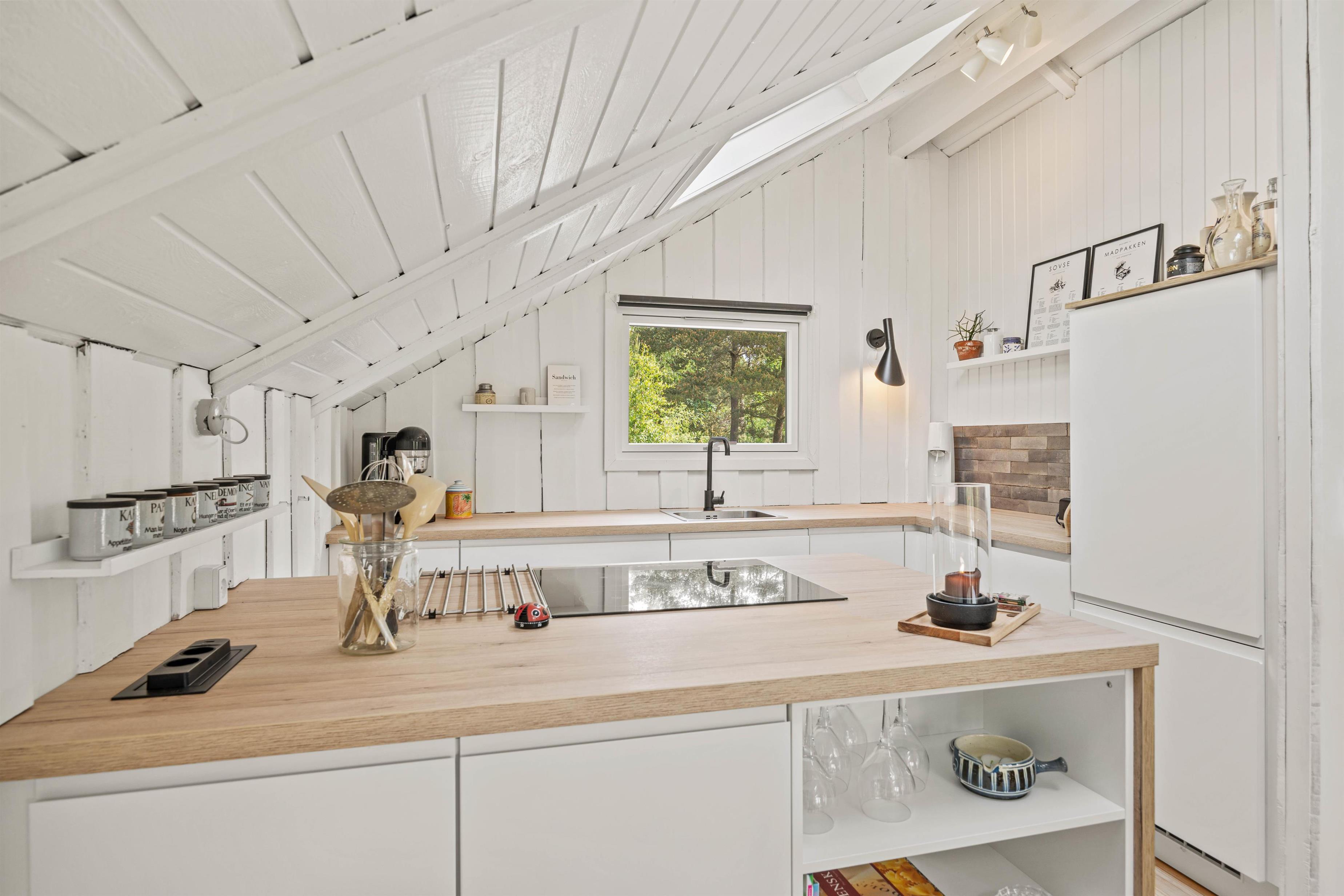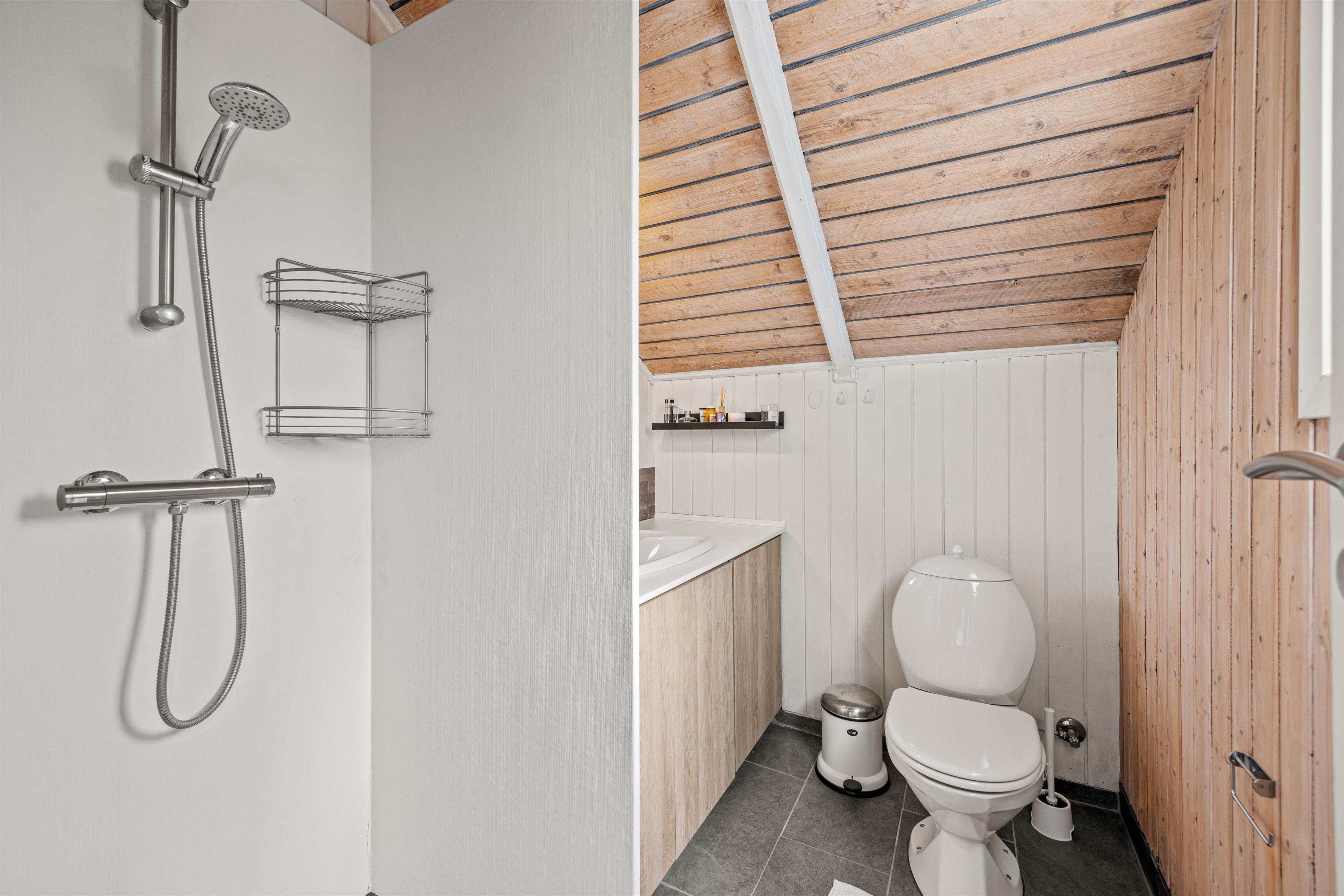 Badeværelset i sommerhuset er moderne og funktionelt indrettet, hvilket sikrer, at I har alt, hvad I behøver for et komfortabelt ophold. Beliggenheden kun 5 kilometer fra stranden giver jer desuden mulighed for at tage del i en bred vifte af strandaktiviteter eller blot nyde en gåtur langs den smukke kyststrækning.