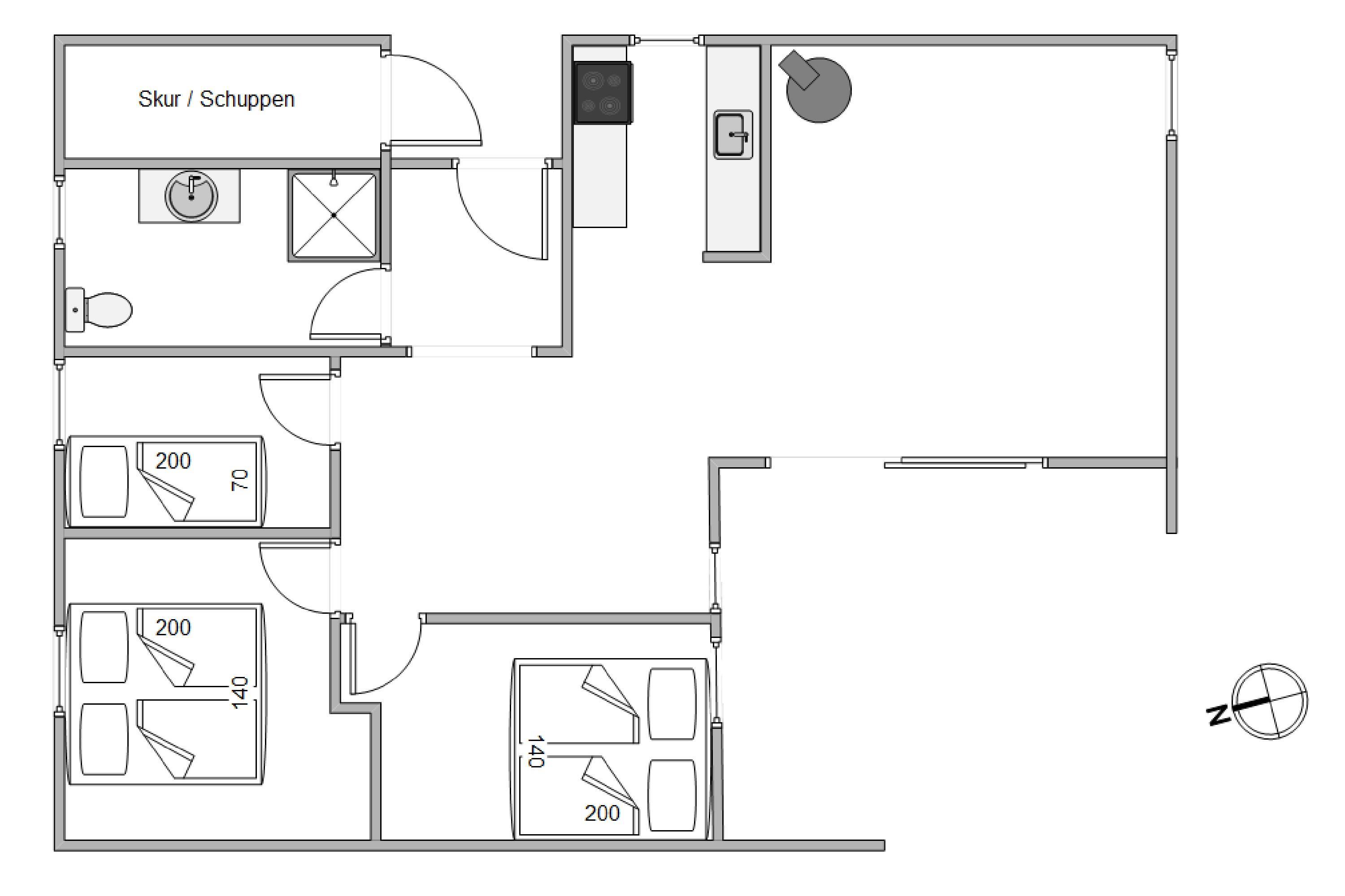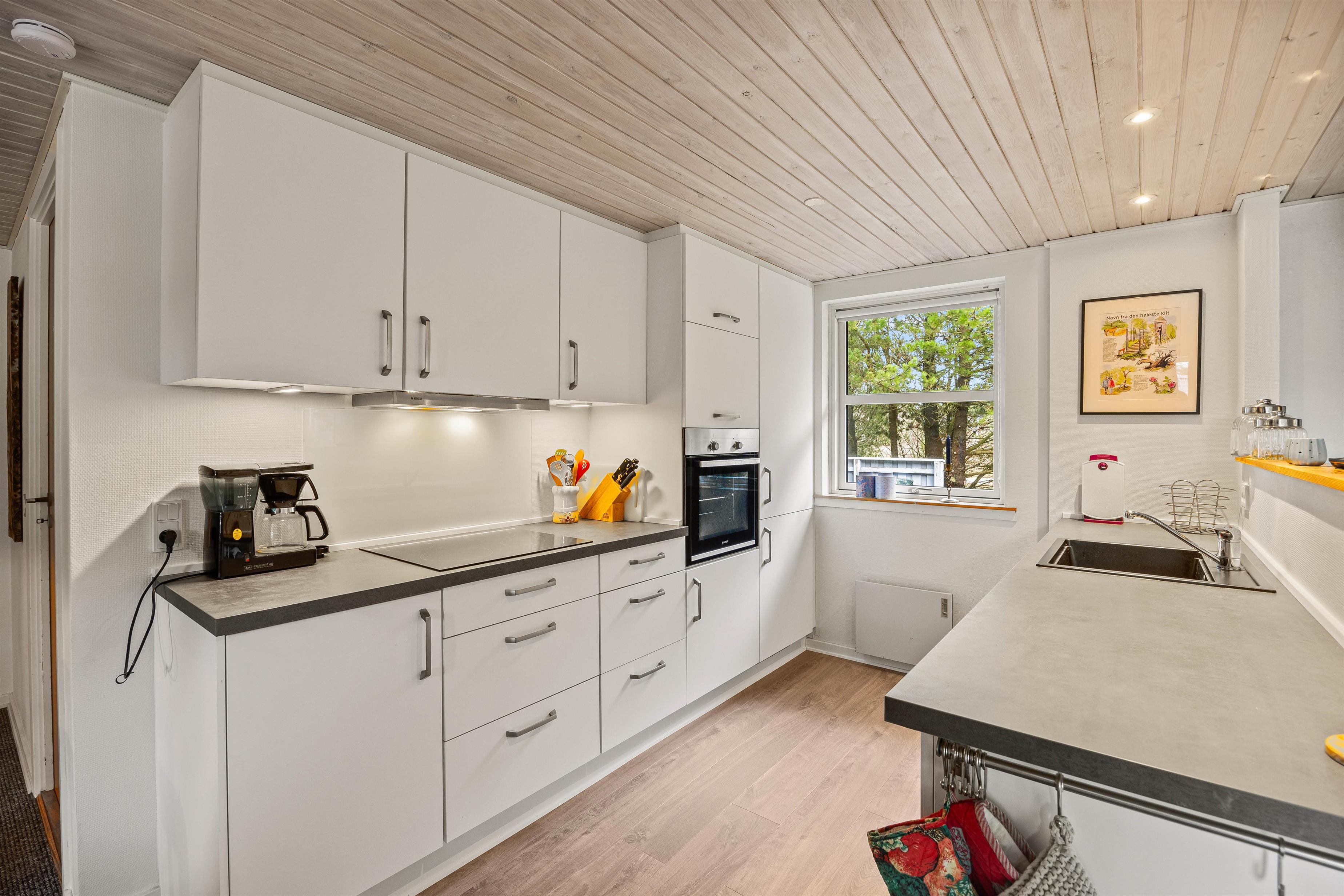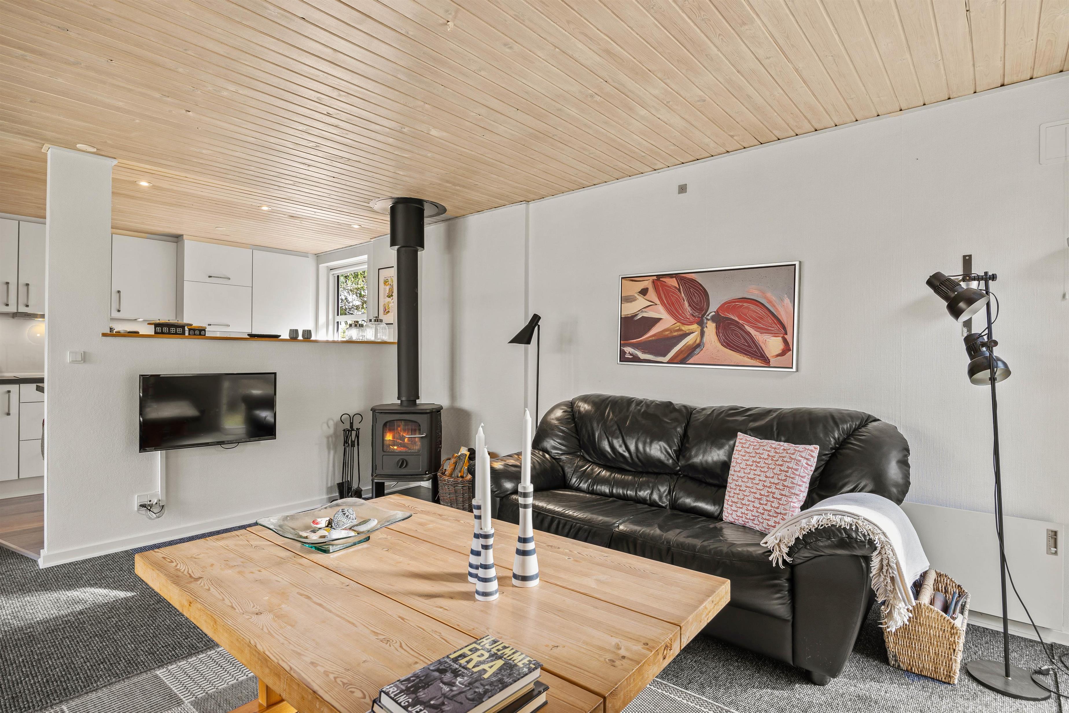 I sommerhuset på 78 m² er der fokus på samvær, så man kan samtale, uanset om man er i stue, spiseplads eller køkken. Det veludstyrede køkken indeholder alt, hvad I behøver for at tilberede lækre hjemmelavede måltider, inklusive opvaskemaskine og induktionskogeplader. Efter middagen kan I tænde op i brændeovnen og hygge jer i sofaen eller spille kort, mens ilden i brændeovnen knitrer i baggrunden - det er ægte feriestemning. Til de køligere dage er der en energibesparende varmepumpe i feriehuset, som hurtigt og effektivt skaber en behagelig temperatur og et godt indeklima.