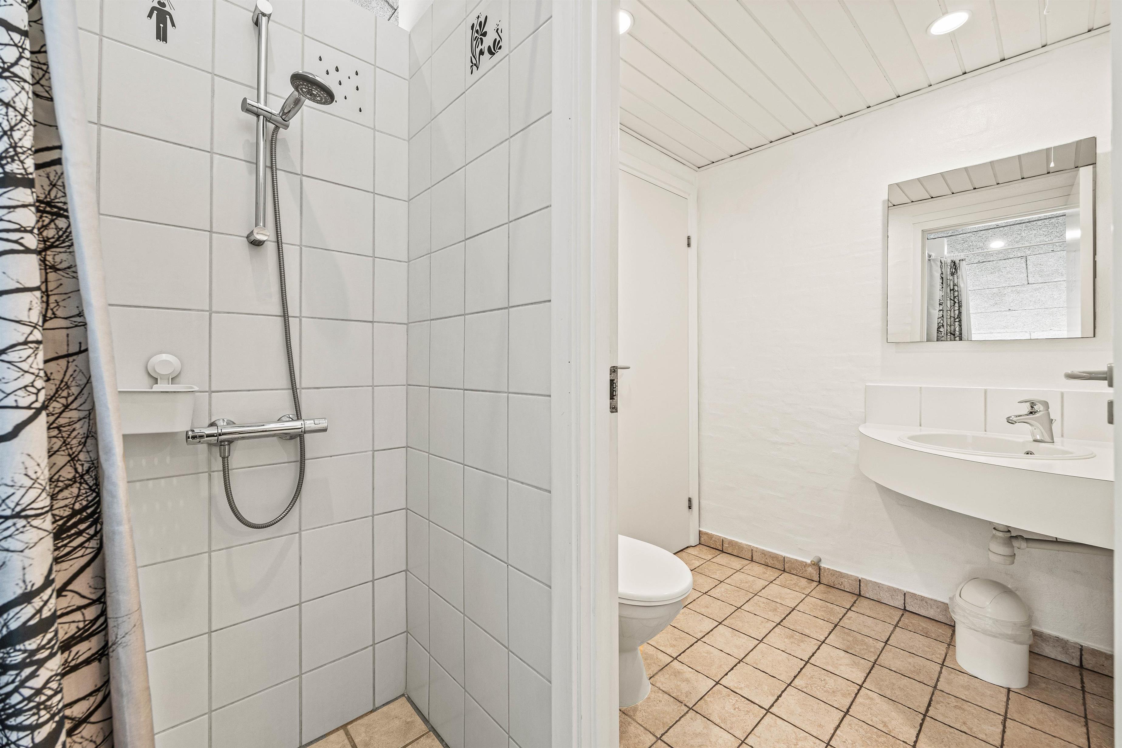 Sommerhuset byder på et imponerende poolområde, der er ideelt til familiehygge og afslapning. Den 18m² store pool er udstyret med en svømmetræner, som gør det muligt at holde sig aktiv, mens man nyder ferien. Poolrummet har en rutsjebane og et Bluetooth-højtalersystem, der sørger for musik og underholdning. Efter en svømmetur kan I slappe af i spaen eller saunaen, som giver en perfekt afslutning på dagen. Derudover er der en hårtørrer tilgængelig på begge badeværelser.