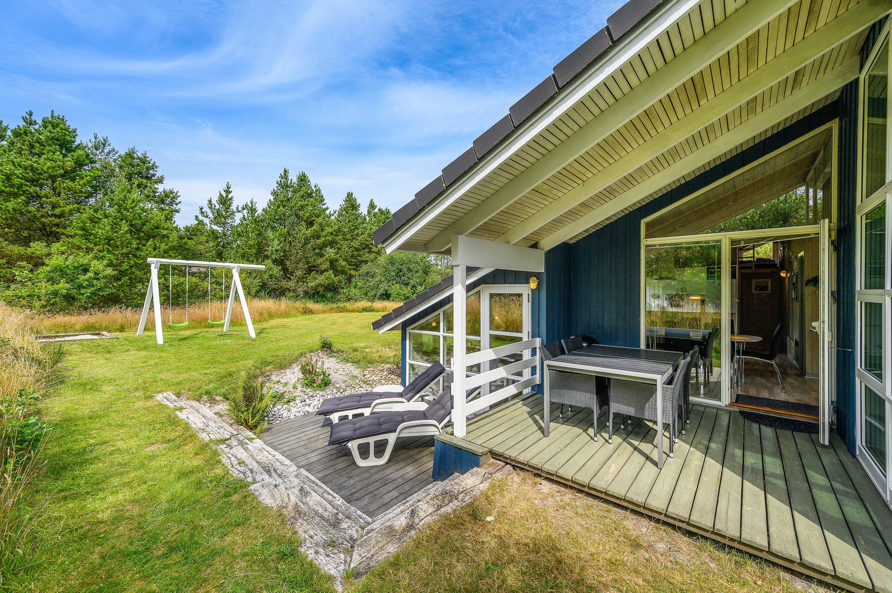 Feriehuset er endvidere udstyret med en åben terrasse, som lægger op til hyggelige grillaftener, eller bare dasen på en solseng med en god bog. Herudover byder feriehuset også på en lukket terrasse og en lille udestue, så der er rig mulighed for at sidde ude og nyde naturen og den friske luft, uanset hvad det danske vejr bringer.