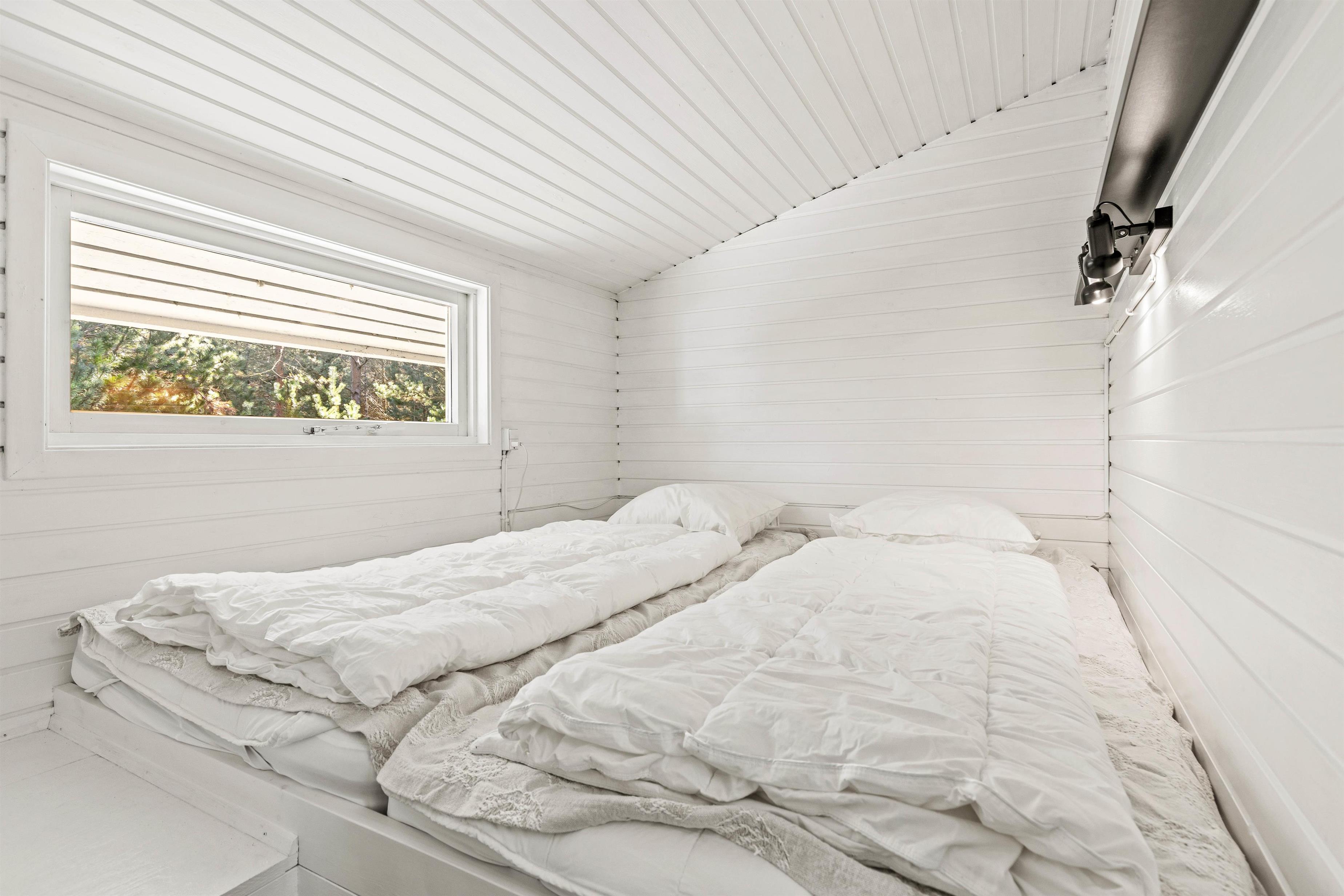 De hvidmalede vægge og de mange vinduer gør rummene lyse og venlige, og I vil med det samme føle jer hjemme og godt tilpas i jeres nye feriehjem.