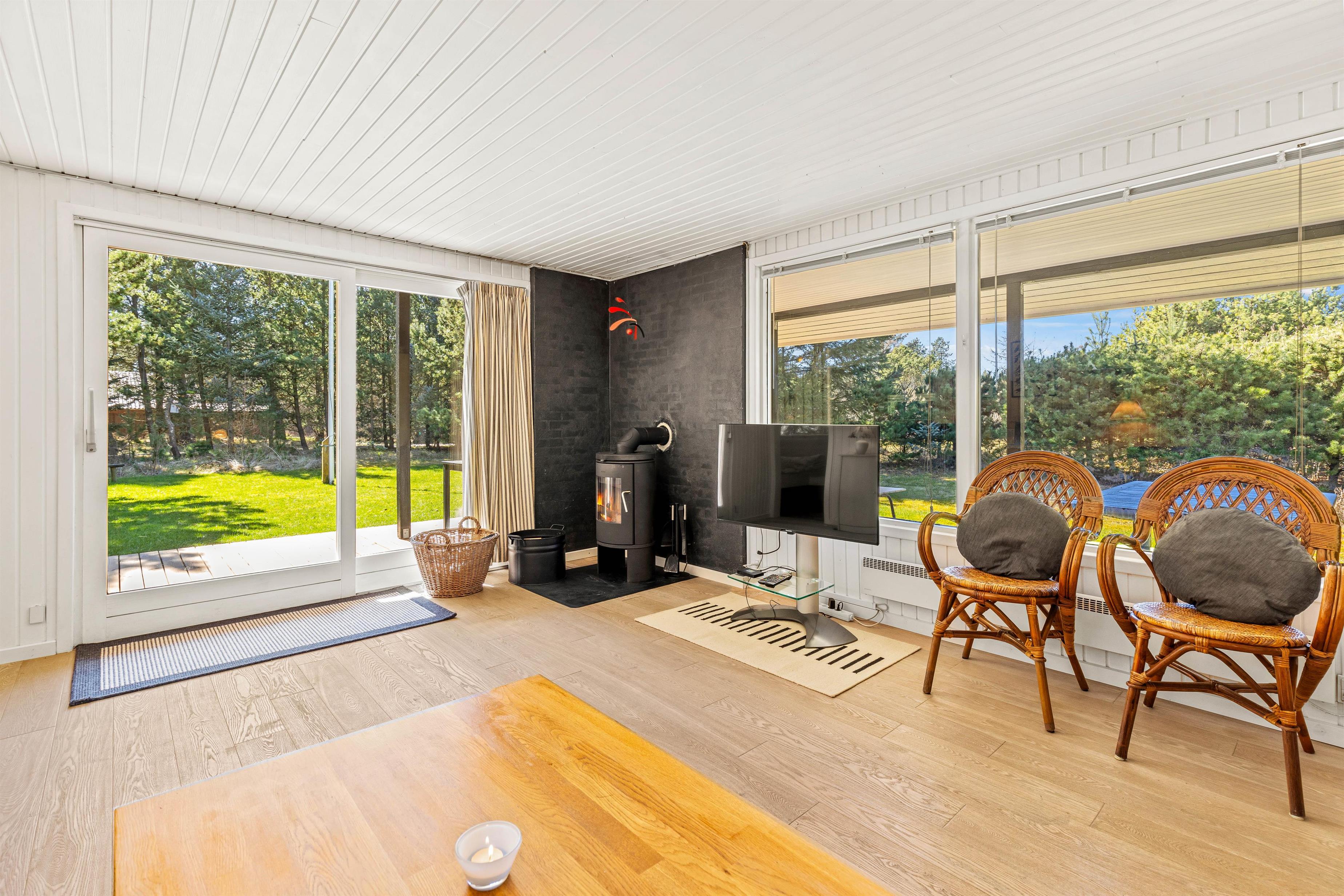 Terrassen er overdækket, så I ligegyldigt vind og vejr kan sidde udenfor og nyde den friske luft, ligesom der kan grilles og tilberedes lækre feriemåltider året rundt. I stuen kan I lade dagens sidste timer rinde ud på bedste vis med et godt glas rødvin og planlægge de næste par ferieudflugter og aktiviteter.